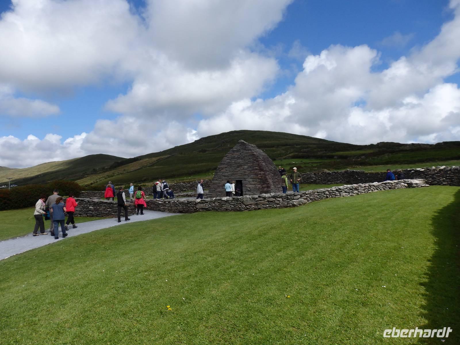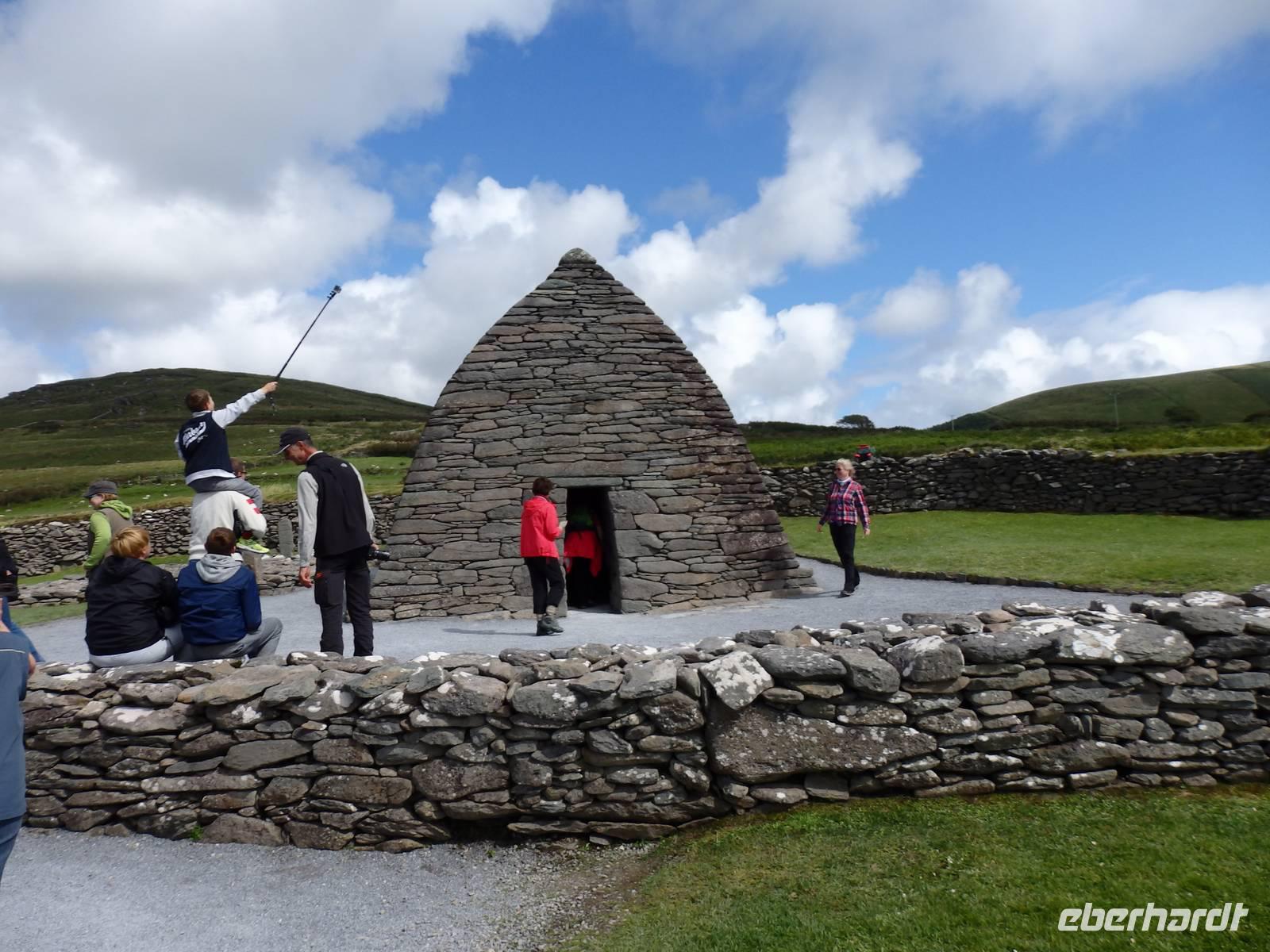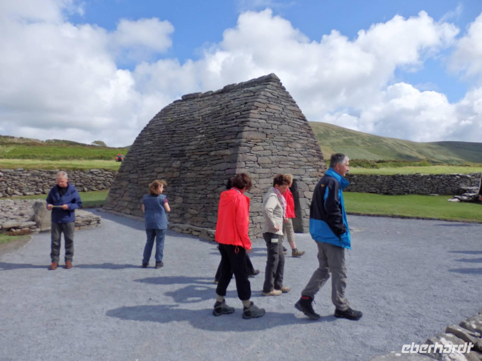 Nach der Mittagspause geht es weiter bergauf und wir sehen viele interessante Dinge längs unseres Weges. Gegen 15:00 Uhr treffen wir unseren Busfahrer wieder und er bringt uns zum Blasket Center. Hier genießen wir einen wohlverdienten Kaffee. Jetzt geht es mit dem Bus weiter zum Gallarus Oratory, einem frühchristlichen Bethaus in Trockenmauertechnik. Es stammt aus der Zeit 8./9. JH und ist immer noch in seiner ganzen Schönheit zu bewundern.