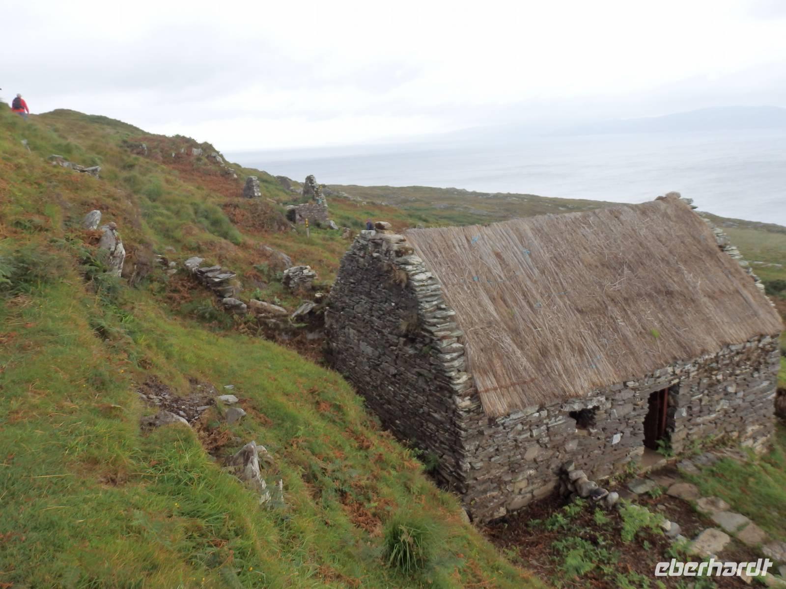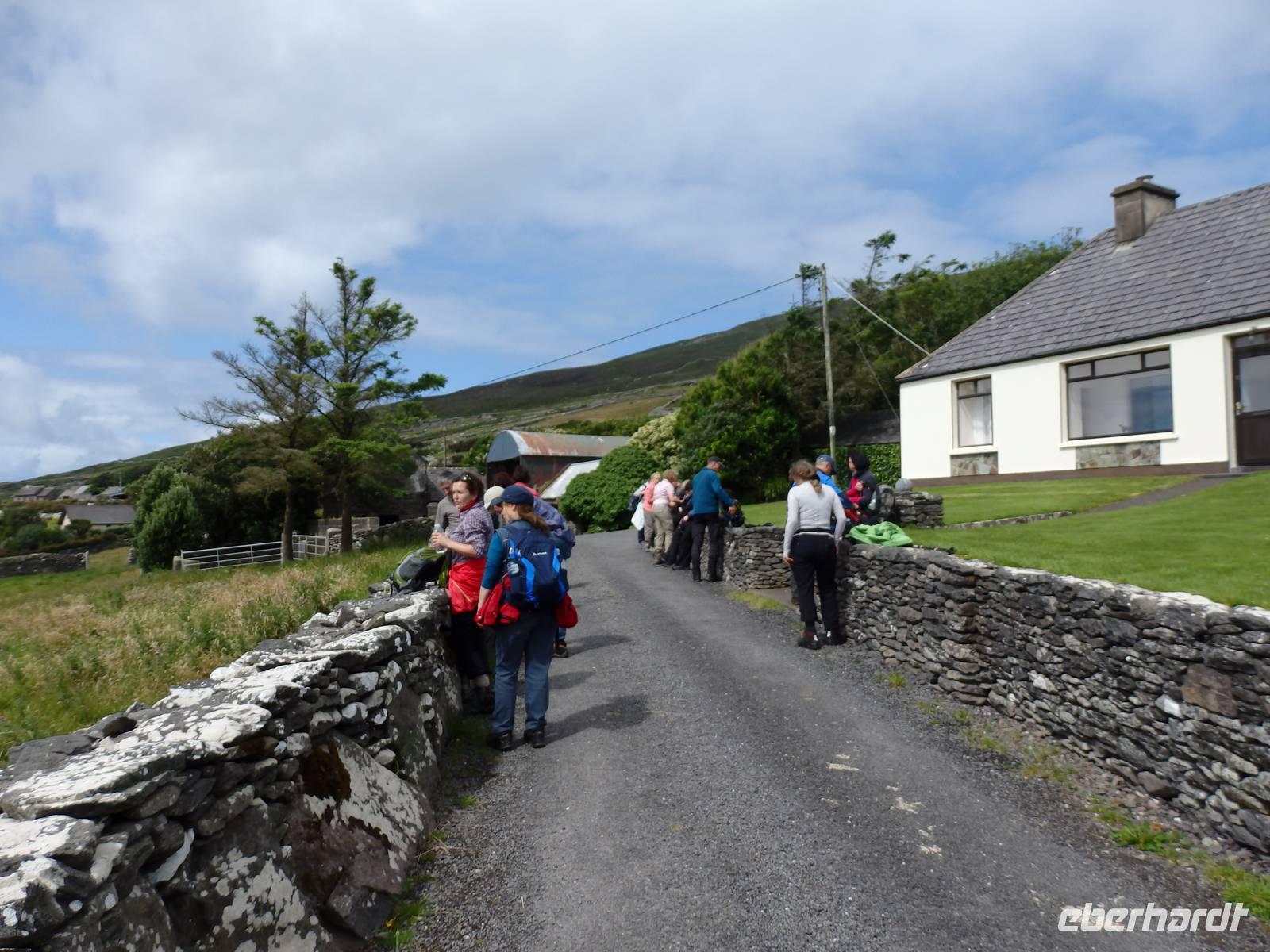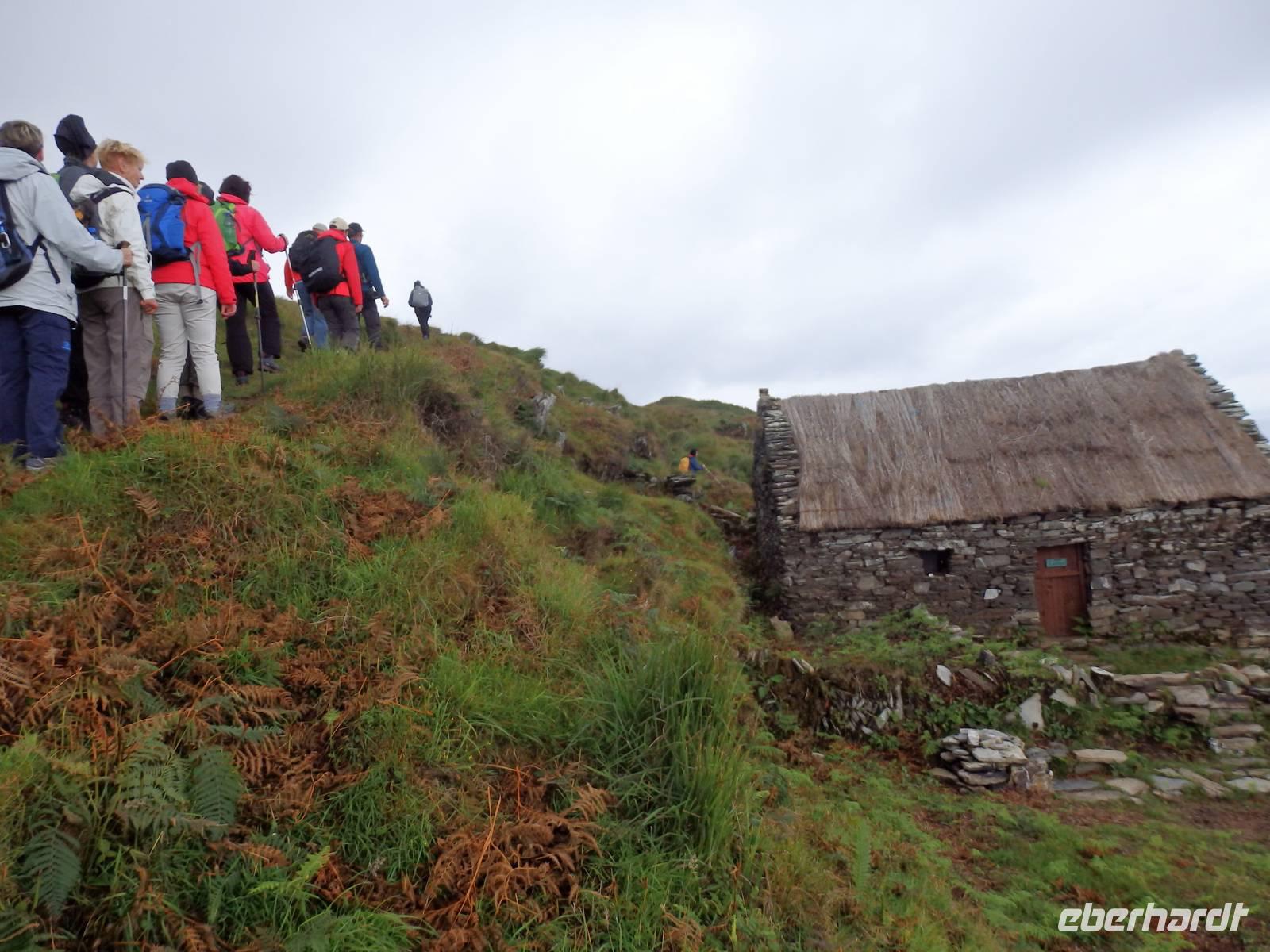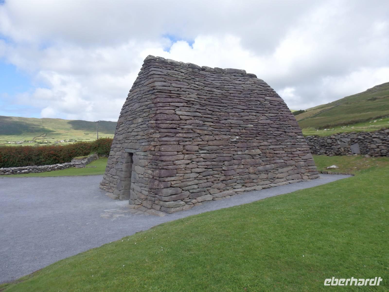 Nach der Mittagspause geht es weiter bergauf und wir sehen viele interessante Dinge längs unseres Weges. Gegen 15:00 Uhr treffen wir unseren Busfahrer wieder und er bringt uns zum Blasket Center. Hier genießen wir einen wohlverdienten Kaffee. Jetzt geht es mit dem Bus weiter zum Gallarus Oratory, einem frühchristlichen Bethaus in Trockenmauertechnik. Es stammt aus der Zeit 8./9. JH und ist immer noch in seiner ganzen Schönheit zu bewundern.