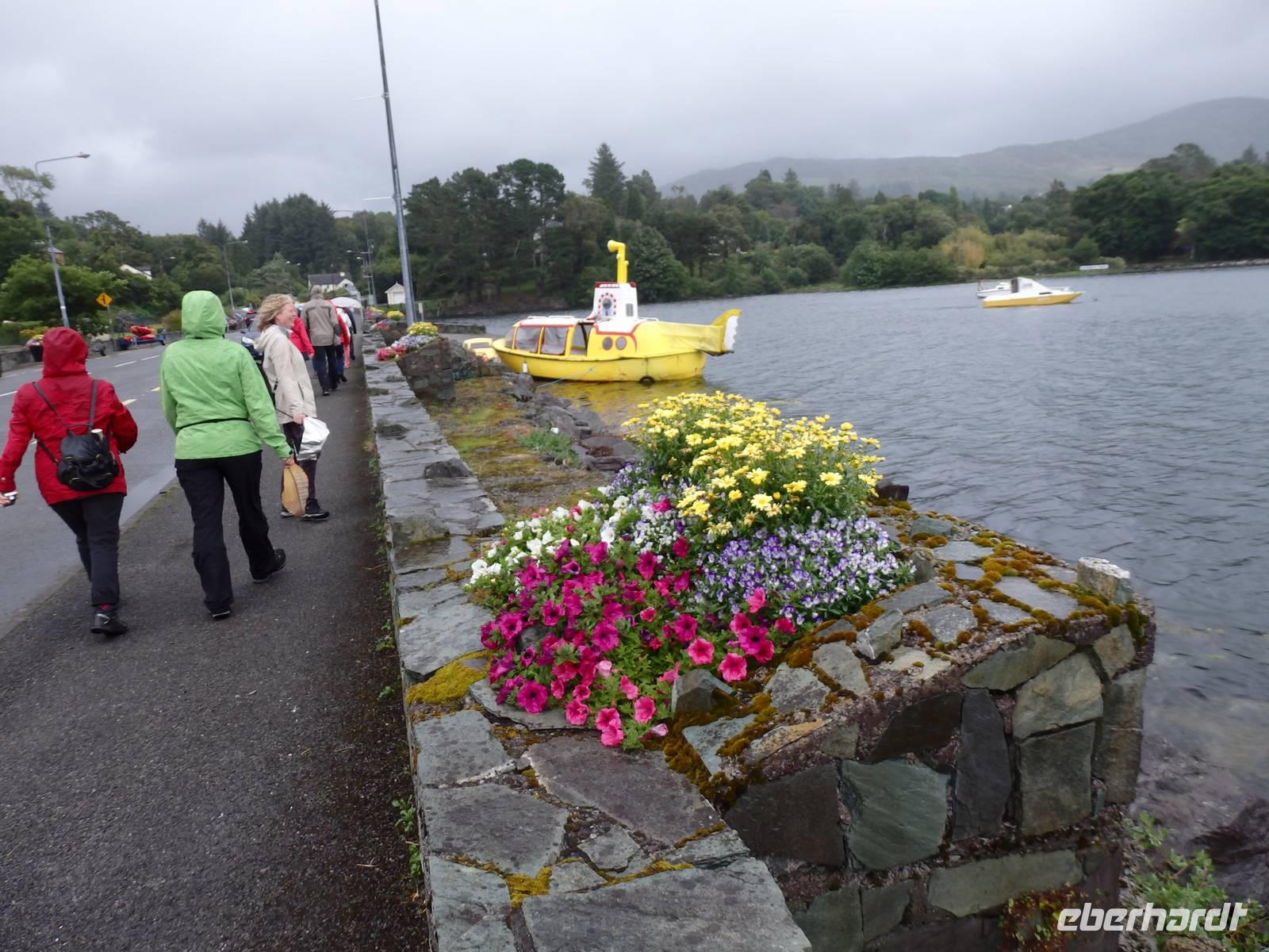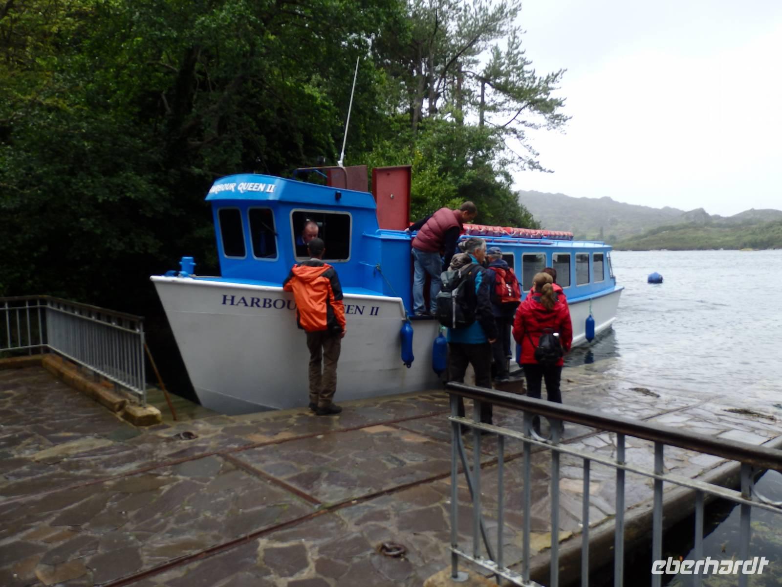 Das Frühstück nehmen wir heute etwas später ein und es gibt auch kein Lunchpaket, denn heute wandern wir nicht. Wir checken aus und fahren über Kenmare nach Glengarriff. In Kenmare steigt Jan wieder zu uns in den Bus, er hat uns auf sein Anwesen am Rande der Stadt eingeladen. Hier treffen wir auch seine Frau Shirley und erfahren vieles über den ökologischen Anbau verschiedenster Gewächse und die Herstellung von Naturprodukten. Danach fahren wir zurück nach Kenmare und einige von uns gönnen sich das irische Nationalgerich "Irish Stew", einen leckeren Eintopf mit Lammfleisch, Möhren und Kartoffeln. Wir haben Zeit für einen kleinen Stadtbummel und dann fahren wir weiter über den Healy Pass ( Fotostop ) nach Glengarriff. Bevor wir unser Hotel beziehen fahren wir mit der Harbour Queen Ferry zur Garinish Island. Im Wasser und auf den Felsen sehen wir viele Robben und auf der Insel können wir eine brachtvolle Fauna erleben. Sehr liebevoll sind hier Blumen, Sträucher und Bäume aus vielen Ländern und Kontinenten zu bewundern. Nach ca. 1 h Aufenthalt auf der Insel setzen wir wieder über auf das Festland und checken im Eccel Hotel, direkt am Wasser gelegen, ein und lassen uns anschliessend das Abendessen schmecken.