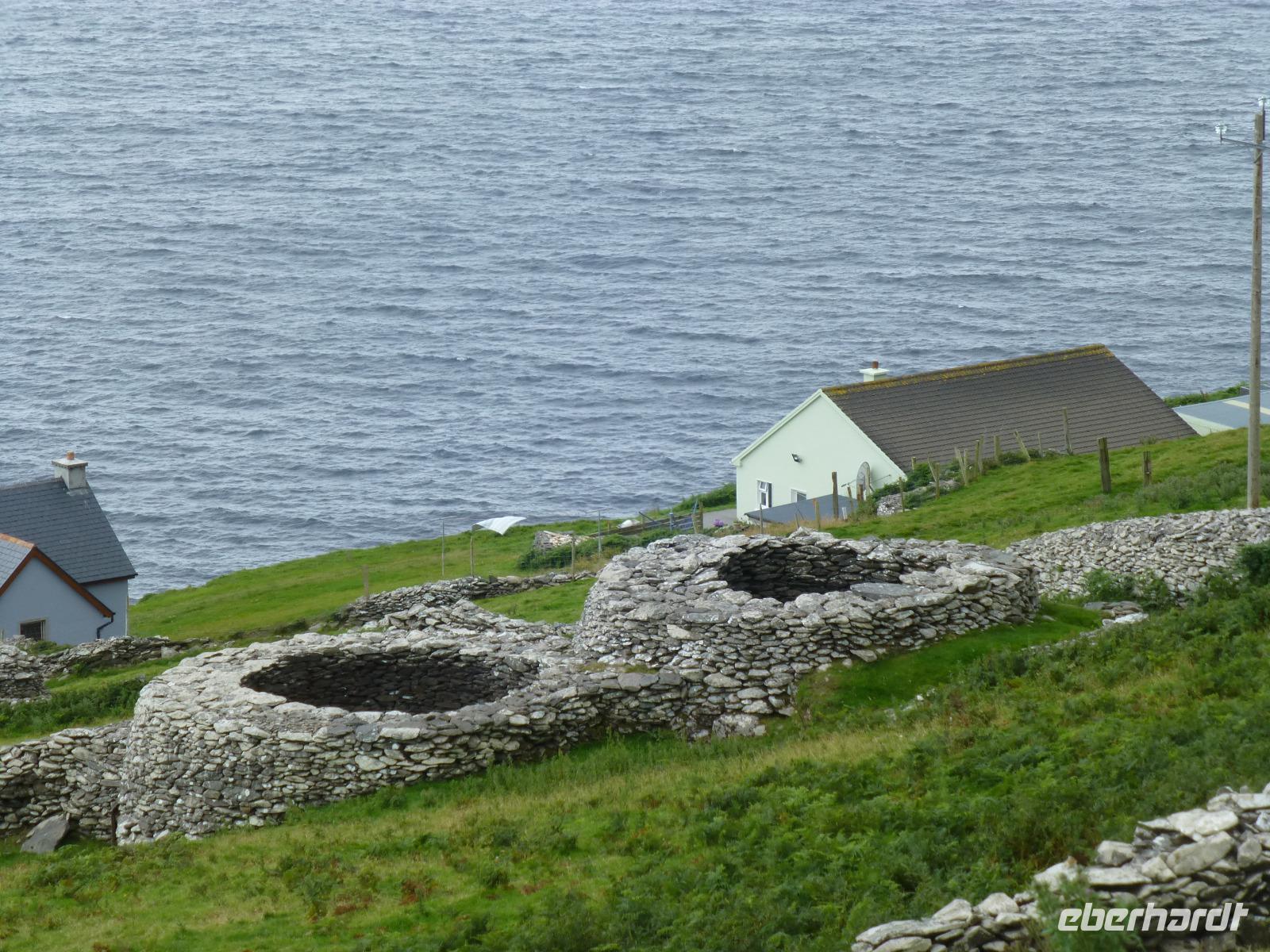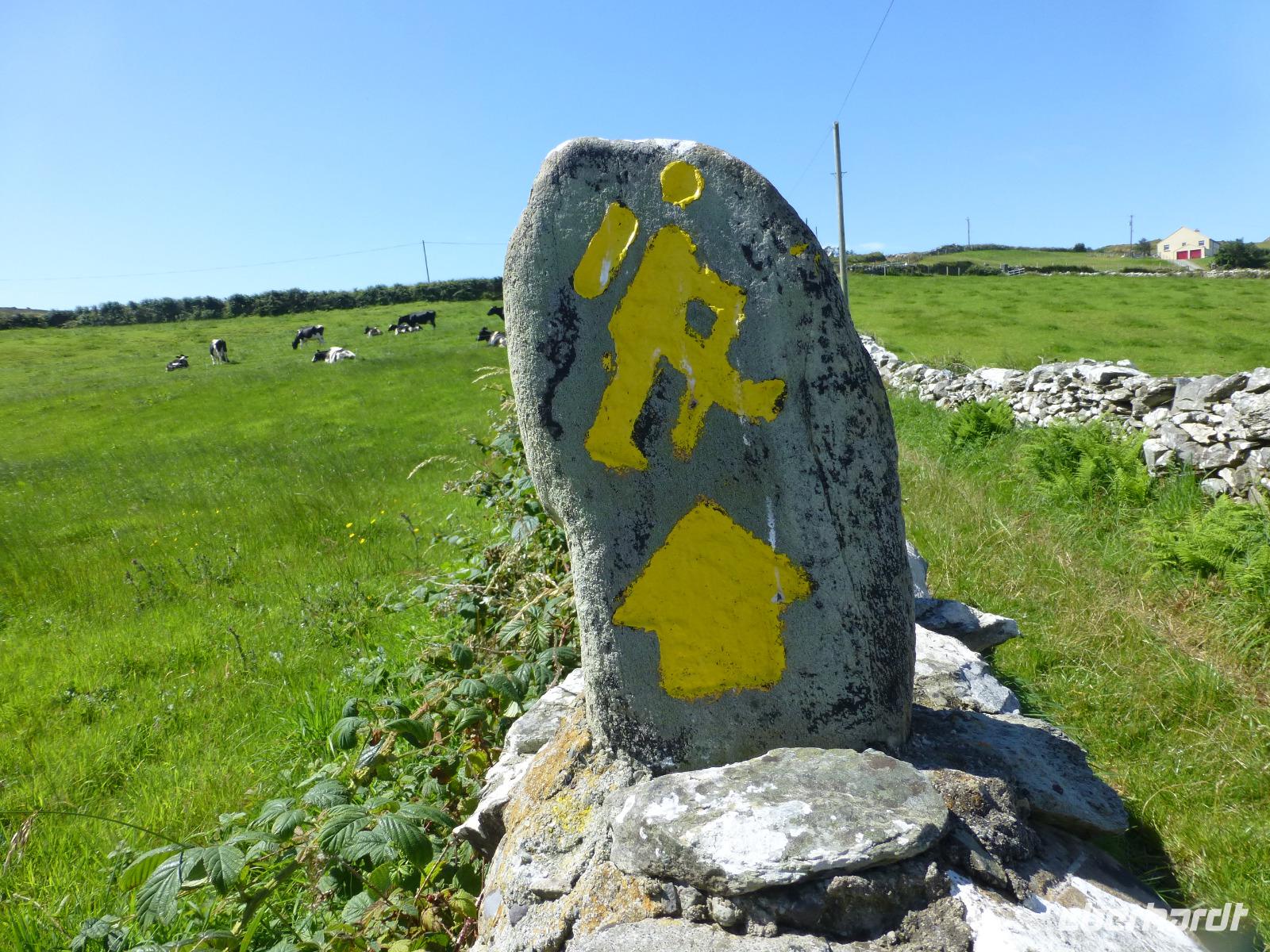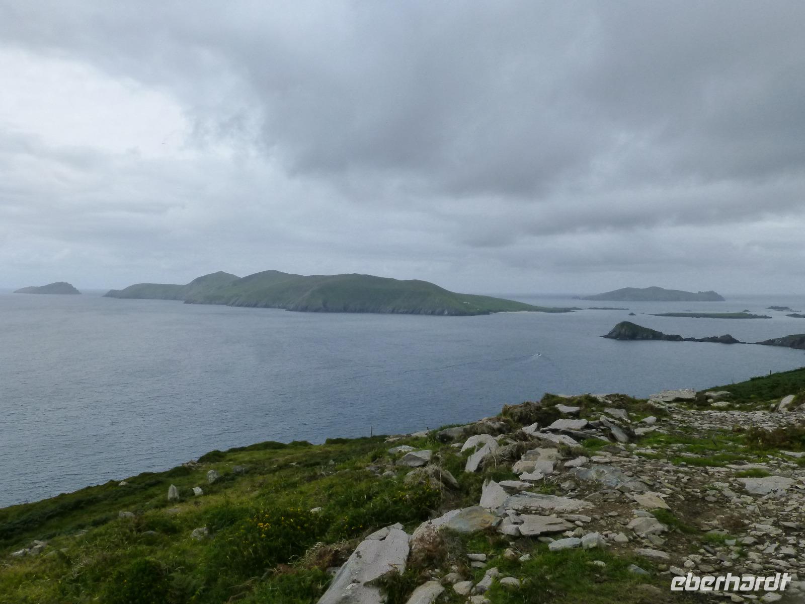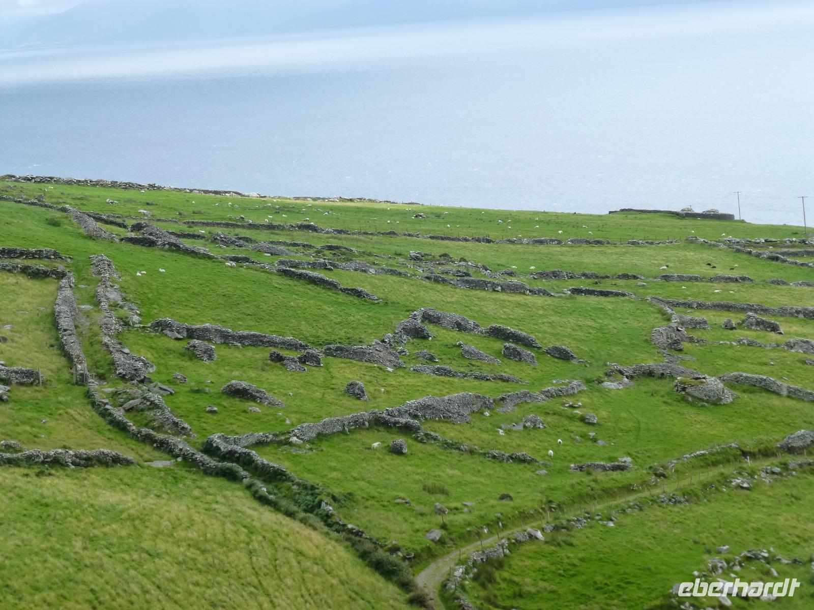 Nach dem Frühstück und der Verteilung der Lunchpakete machen wir uns auf den Weg. Das Wetter wird einbisschen Wechselhaft, aber nicht zu schlecht. Vorbei an Dingle erreichen wir Ventry Harbour. An Paddie O'Shea's Pub beginnt unser Wanderung. Zuerst entlang des Strandes laufen wir später durch eine kleine Siedlung und zwischen Weideflächen entlang. Nachdem wir ein Stück entlang der Straße zum Slea Head gelaufen sind mache wir eine Pause mit schönem Blick auf die Küste und die gegenüber der Dingle Bay liegenden Iveragh Halbinsel. Durch Schafweiden, natürlich mit Kontakt zu den Vierbeinern, erreichen wir oberhalb des Slea Head bei Dunquinn das Ende unserer Wanderung. Niall wartet schon auf uns, gemeinsam fahren wir nach Ballyferriter für eine Kaffeepause. Auf dem Weg zurück nach Dingle stoppen wir noch beim Galarus Oratory. Bei diesem Gebäude handelt es sich um ein frühchristliches Gebetshaus, welches in perfekter Trockensteinbauweise vor ca. 1300 Jahren errichtet wurde. Nach einem kurzen Stopp in Dingle erreichen wir am Abend wieder unser Hotel.