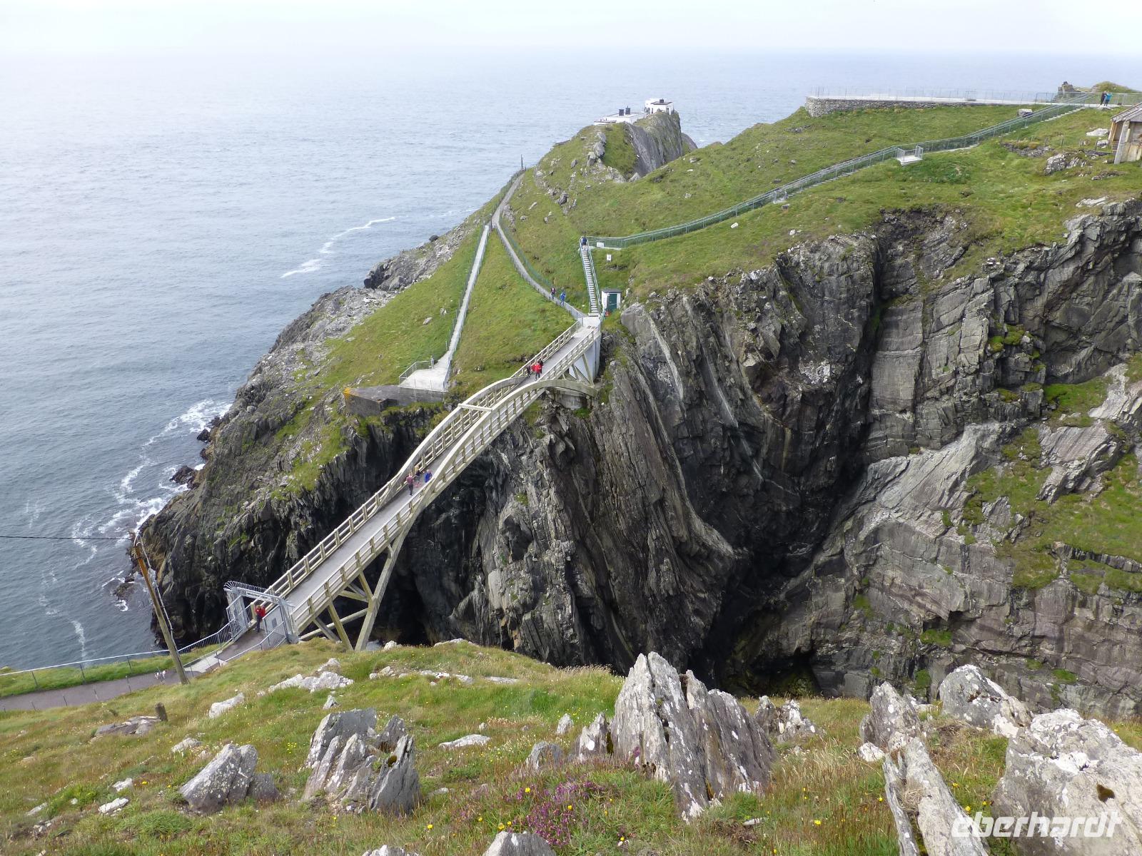 Heute können die Wanderschuhe im Hotel bleiben. Wir machen einen fakultativen Ausflug nach Mizen Head und zum Bantry House. Nach dem gestrigen schönen Wetter haben wir heute Morgen Nebel. Unterwegs lockert sich dieser auch mal. Bei Crookhaven haben wir dann schönsten Sonnenschein. Nur wenige Minuten Später an Mizen Head wieder Nebel. So drehen wir erstmal wieder um und machen einem Strandspaziergang in Barley Cove. Inzwischen verschwindet der Nebel und wir kehren zurück nach Mizen Head. Die ehemalige Nebelwarnstation liegt auf einem vorgelagerten Felsen. Über eine Betonbogenbrücke gelangt man dahin. Was die Natur uns dann bietet ist eine grandiose Küstenlandschaft deren Wirkung man schwer beschreiben kann. Am Nachmittag fahren wir über Ballydehob zurück nach Bantry. Das Bantry House ist ein altes Herrenhaus im klassizistischen Stil aus dem Jahre 1751 ist eine Art bewohntes Museum. Ein Rundgang durch Haus und Garten beschließt den Tag bevor wir wieder nach Glengarriff zurückkehren.