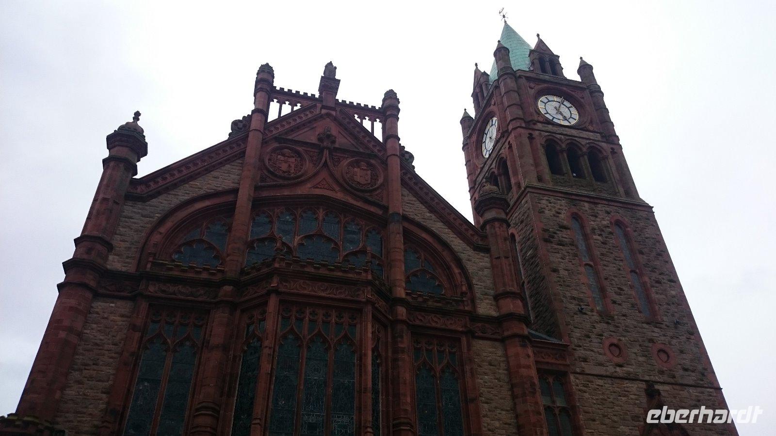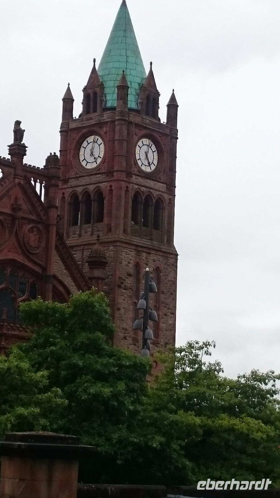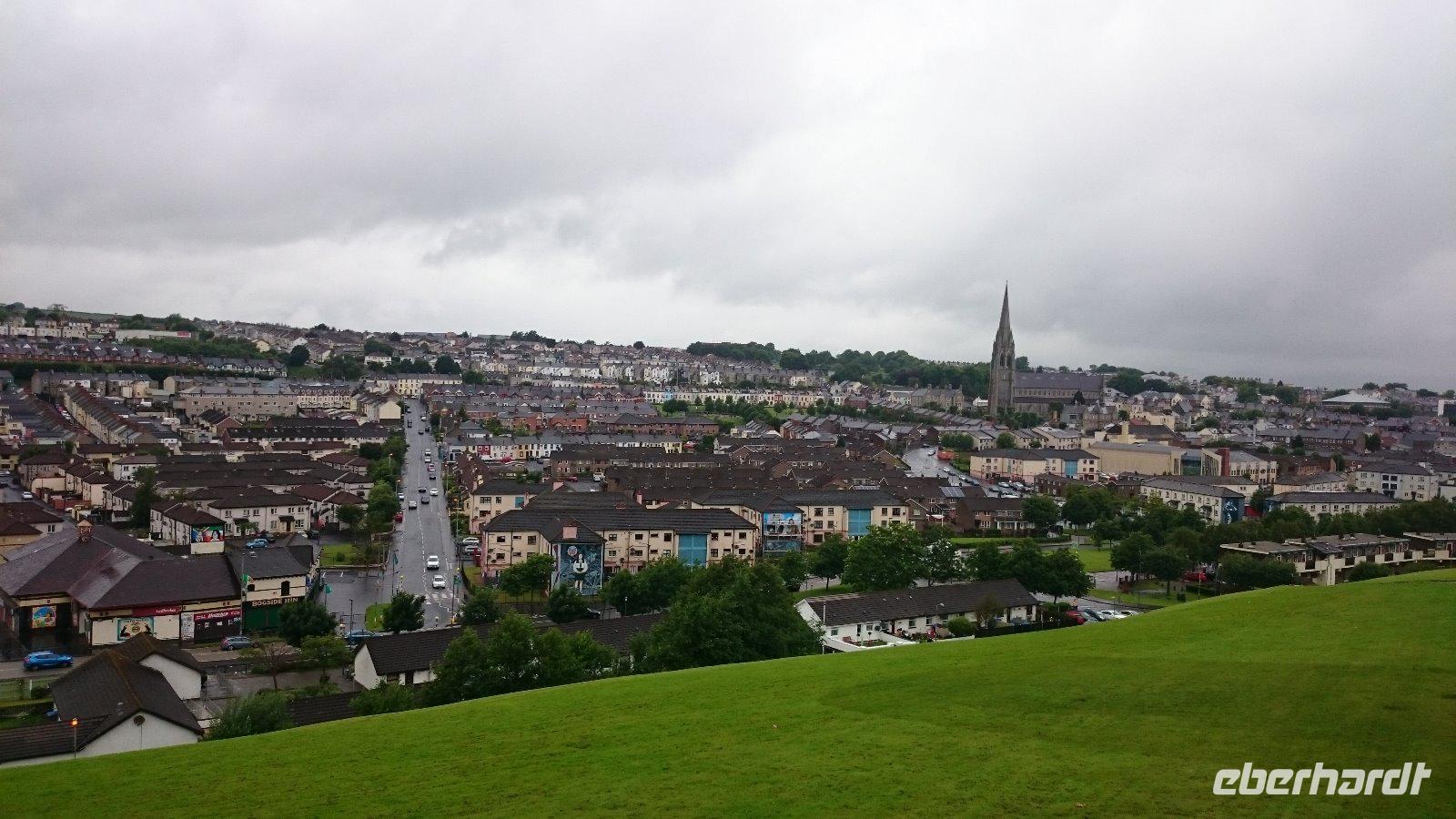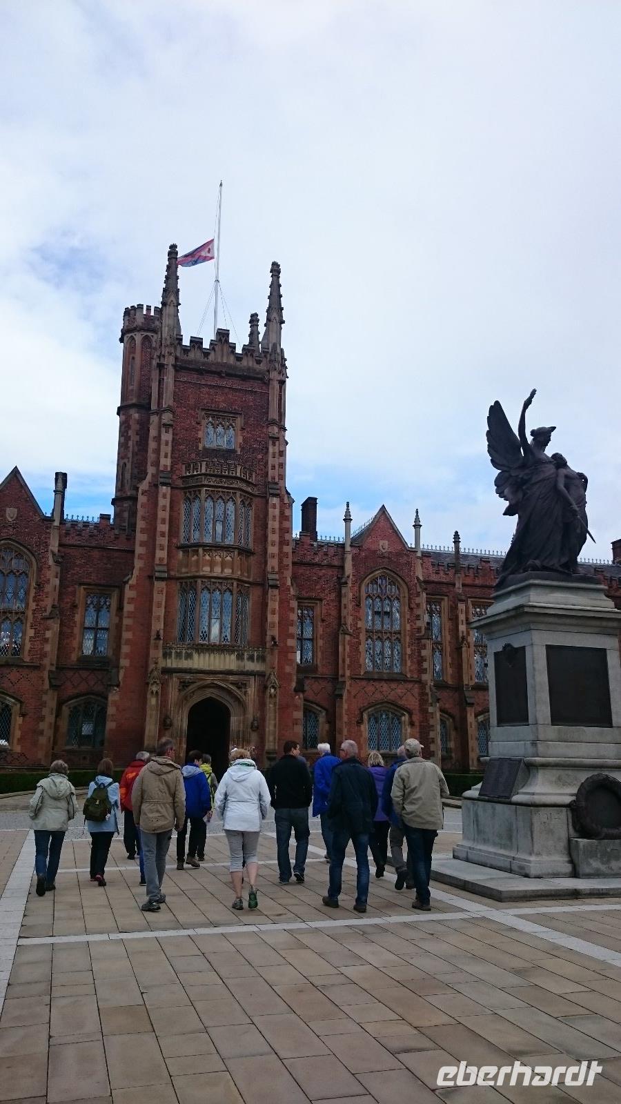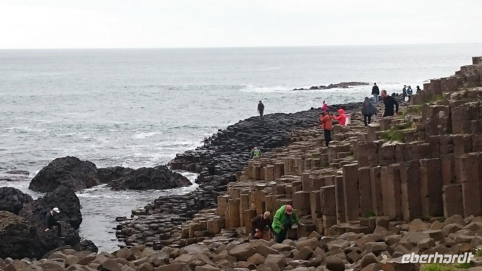 Auf dem Weg zum Giants Causway entdecken wir den kleinen Hafenort Carnlough, der durch seine Brieftaubenzüchter einen Platz in der Weltgeschichte fand. Statt Mittagessen ist heute Whiskeytasting bei Bushmills angesagt - nach einer umfassenden Führung auf dem Produktionsgelände, haben sich alle Gäste das Glas Whiskey verdient. Nun ist es nicht mehr weit zum eigentlichen Höhepunkt des Tages, der Besuch des Giant Causeway. Bizarre Basaltsäulen in Verbindung mit dem Meer locken Touristen aus der ganzen Welt an. Gute Beobachter entdecken in der Bucht auch Delphine. Trotz wechselhaften Wetters genießen alle Gäste dieses Naturschauspiel. Doch noch ist der Tag nicht zu Ende. Gemeinsam mit unserem Chauffeur Bill erkunden wir die Stadtmauer von Derry und besuchen das neu rekonstruierte Rathaus. Der Wandel auf den Spuren der streitbaren Geschichte Irlands berührt und sehr.