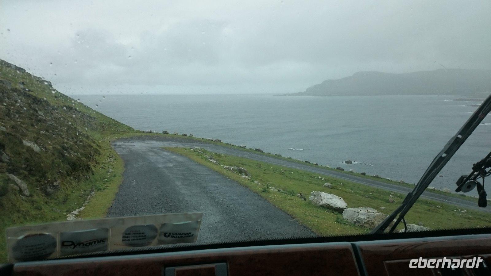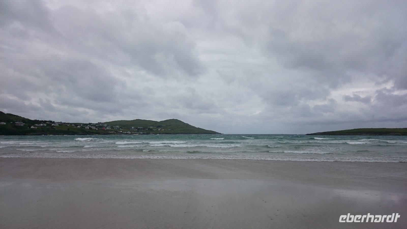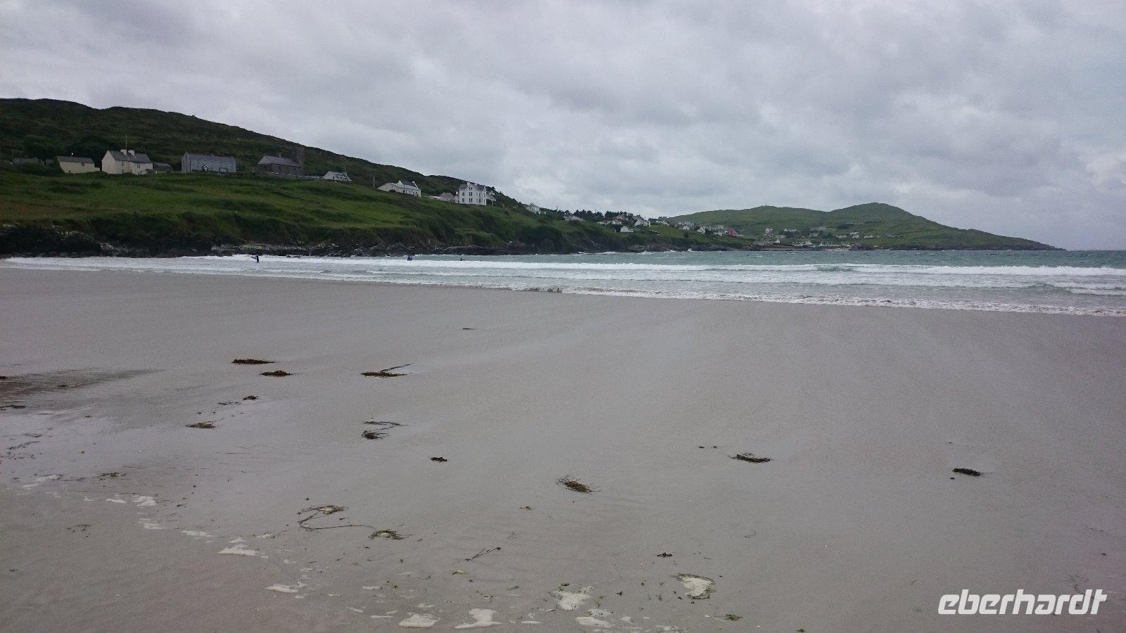 Die Fahrt entlang des Atlantic Drift beginnt mit Regen und Sturm , manch imposante Aussicht ist nur zu erahnen. Endlich nach dem Mittag hellt es am Himmel auf und wir haben Gelegenheit die Wassertemperatur des Atlantik zu prüfen - ganz zaghaft mit Händen oder Füssen. Ein Spaziergang am wunderschönen Portnoo Beach entschädigt für vieles.