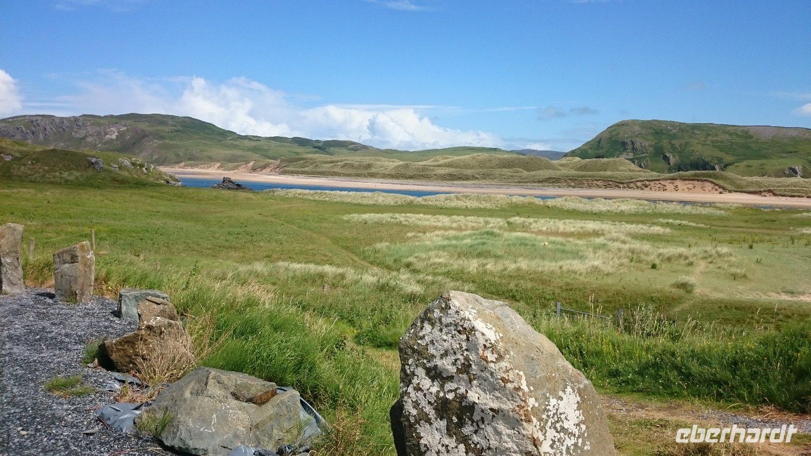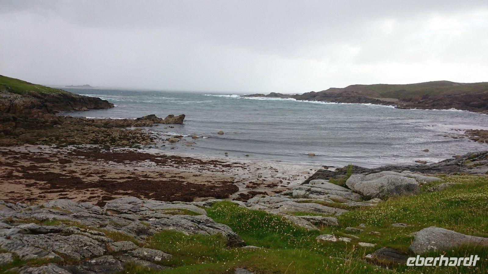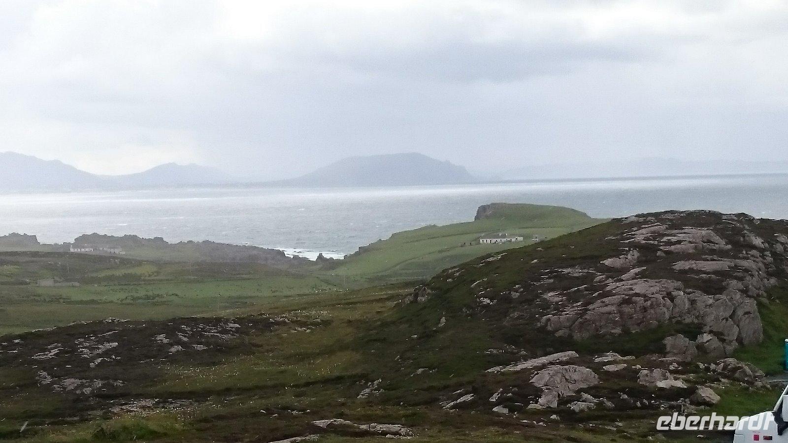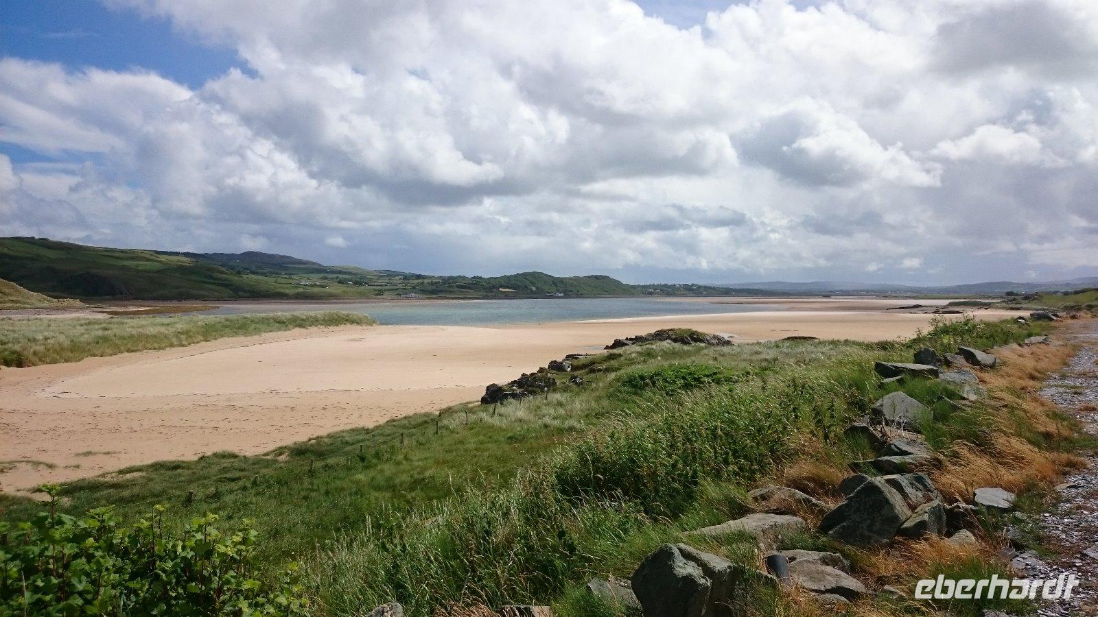 Die Fahrt entlang des Atlantic Drift beginnt mit Regen und Sturm , manch imposante Aussicht ist nur zu erahnen. Endlich nach dem Mittag hellt es am Himmel auf und wir haben Gelegenheit die Wassertemperatur des Atlantik zu prüfen - ganz zaghaft mit Händen oder Füssen. Ein Spaziergang am wunderschönen Portnoo Beach entschädigt für vieles.