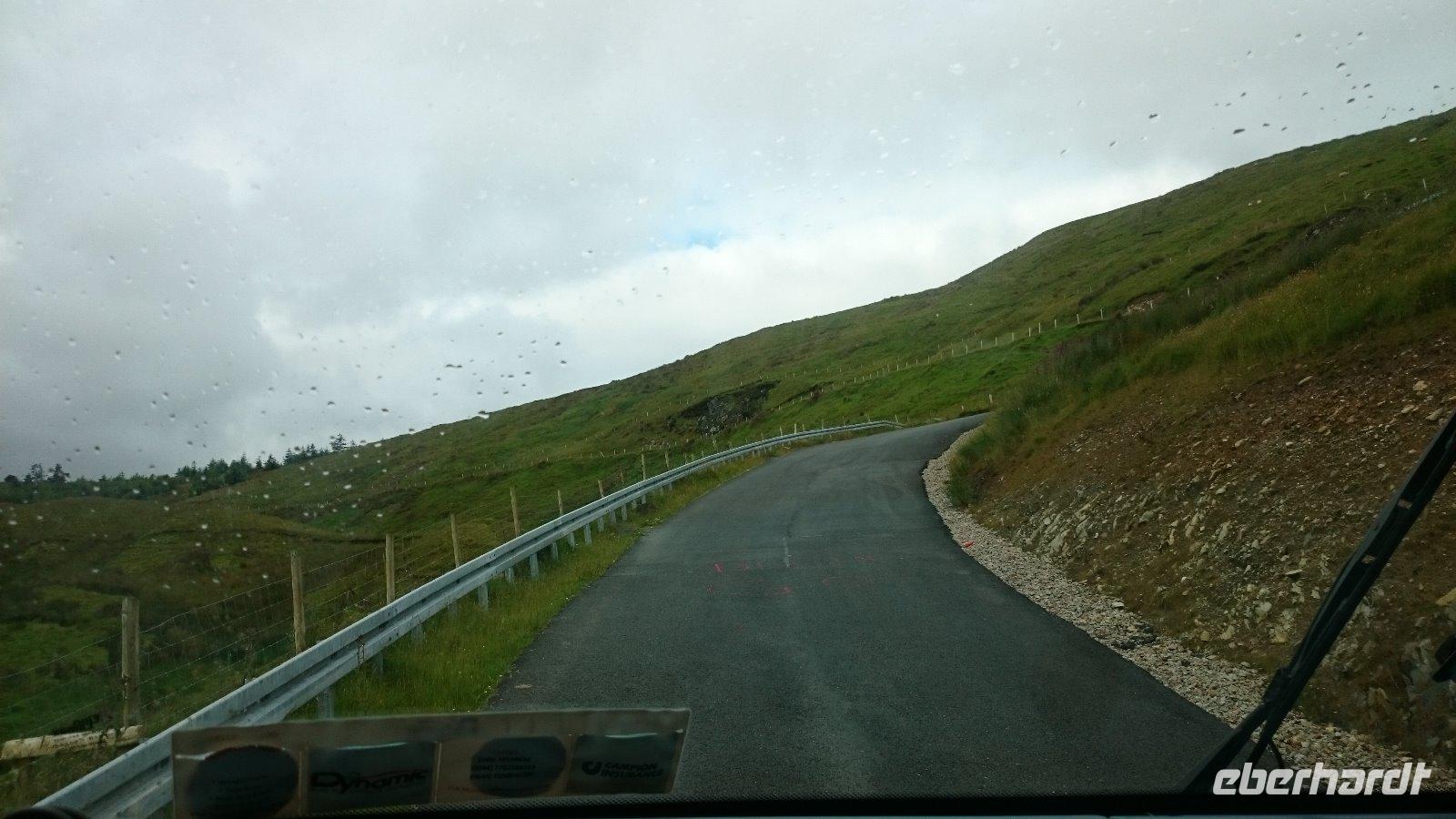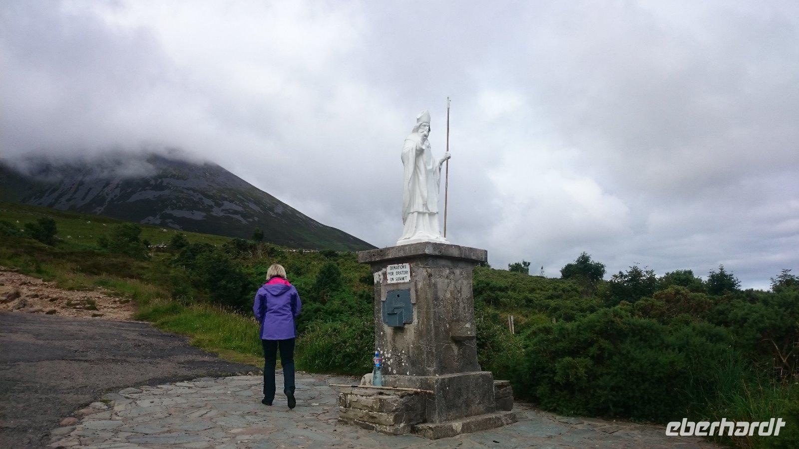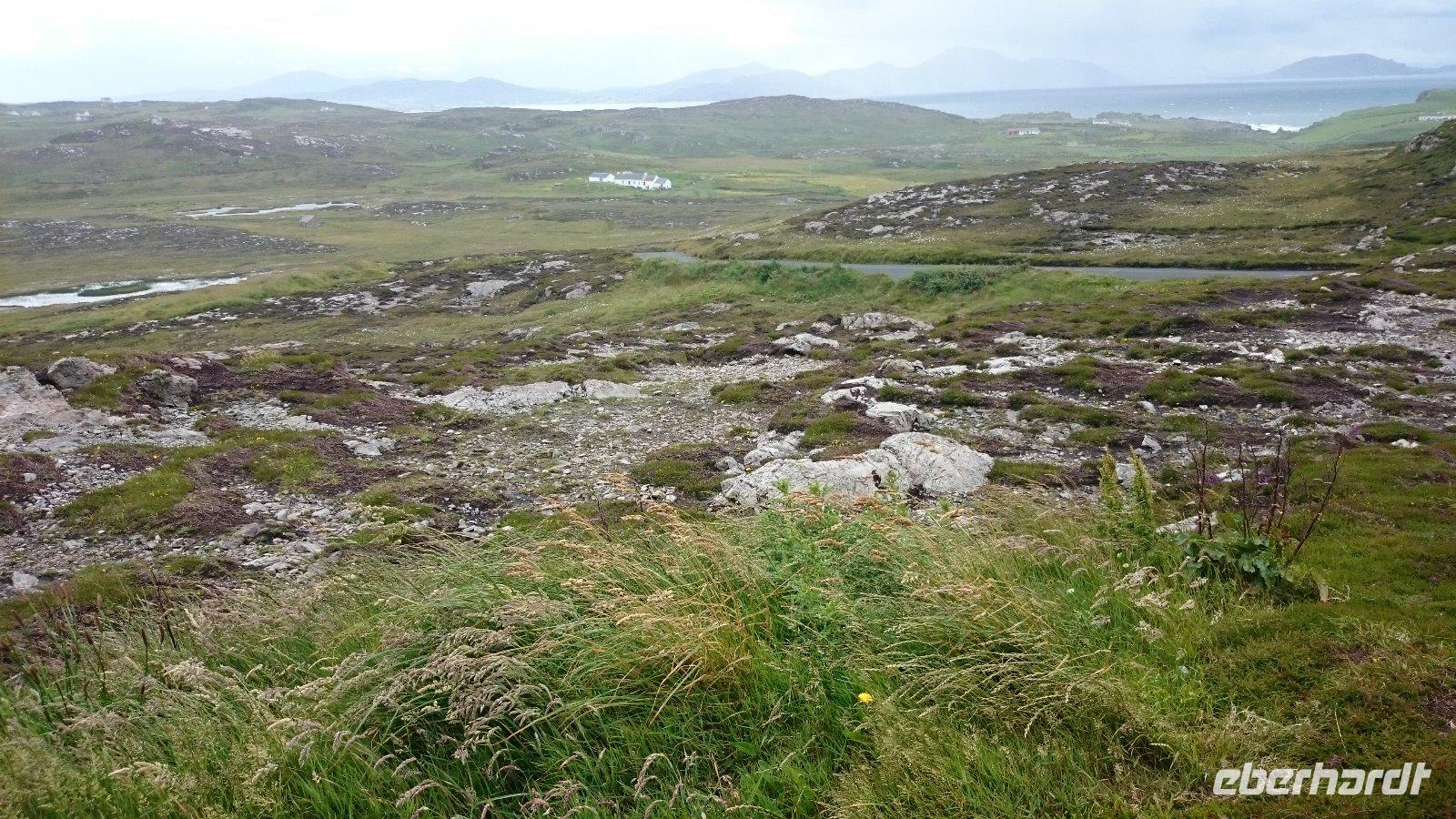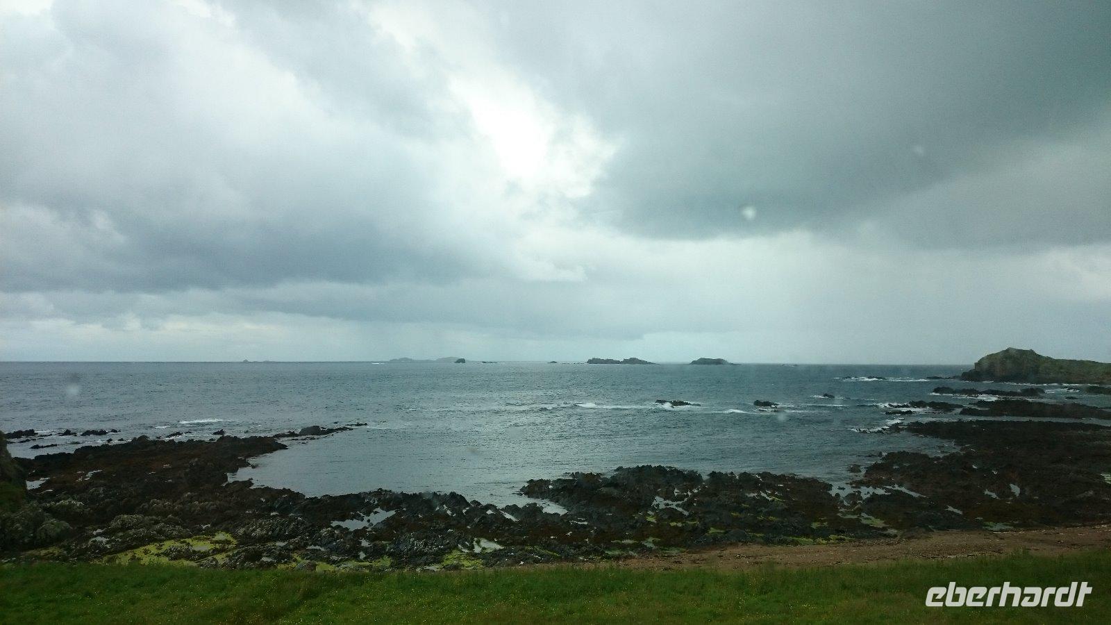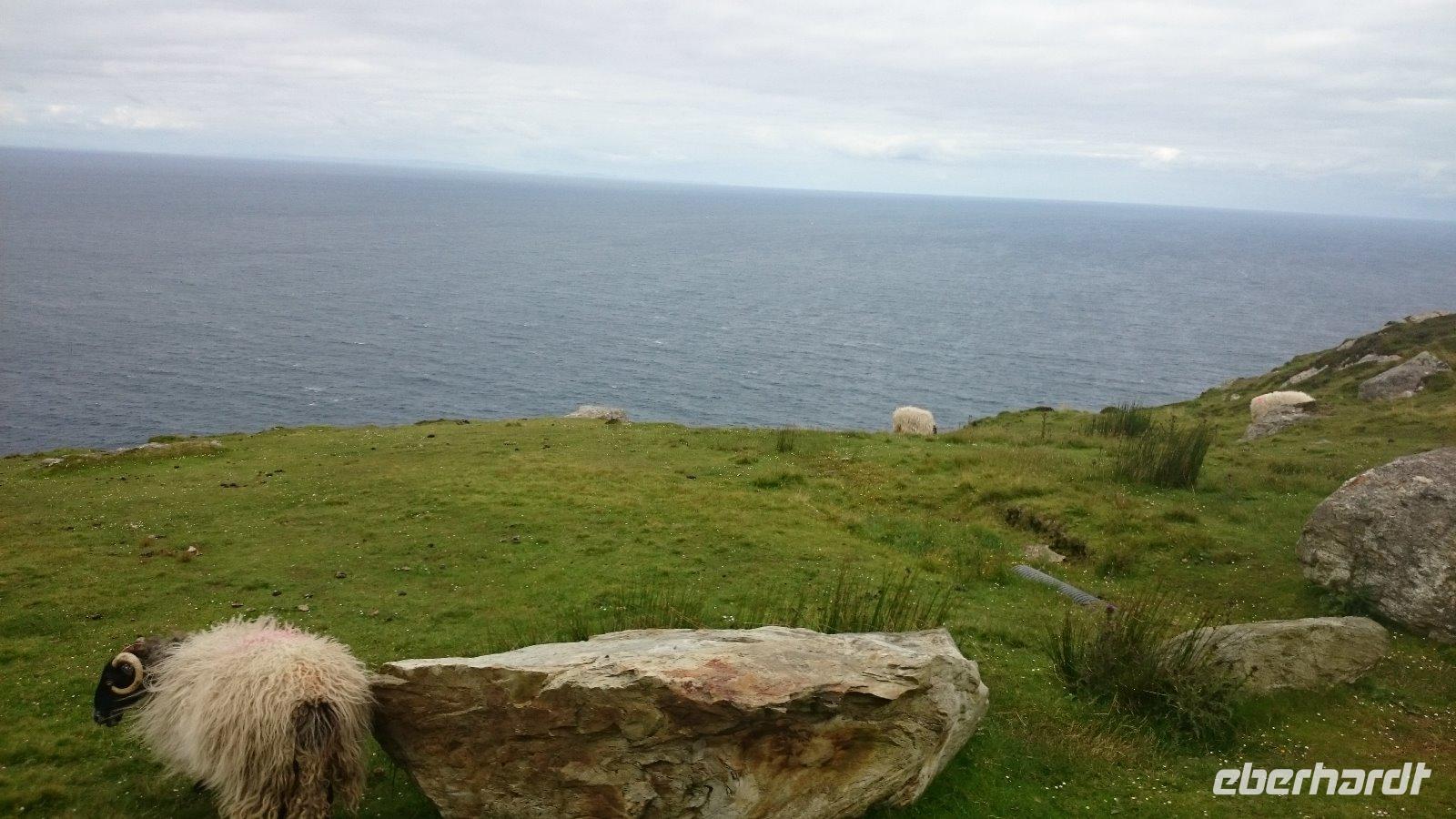 Party mit Bill im Bus oder Downpatrick Head im strömenden Regen - garantiert keine Langeweile war für diese 45 Minuten angesagt. Im gut gewärmten Bus fuhren wir zu Ceide Fields. Hier ging es vielen Gästen in erster Linie darum, die Hosen und Jacken zu trocknen. Darüber hinaus erhielten wir in der Ausstellung einen Überblick über die bedeutenden archäologischen Fundplätze an diesem Ort. Am Nachmittag erkunden wir Achill Islands. Keem Beach lädt mit Sonnenschein zum Spaziergang ein und ein Fotostopp am ehemaligen Ferienhaus von Heinrich Böll darf natürlich auch nicht fehlen.