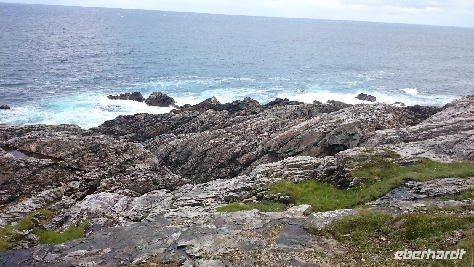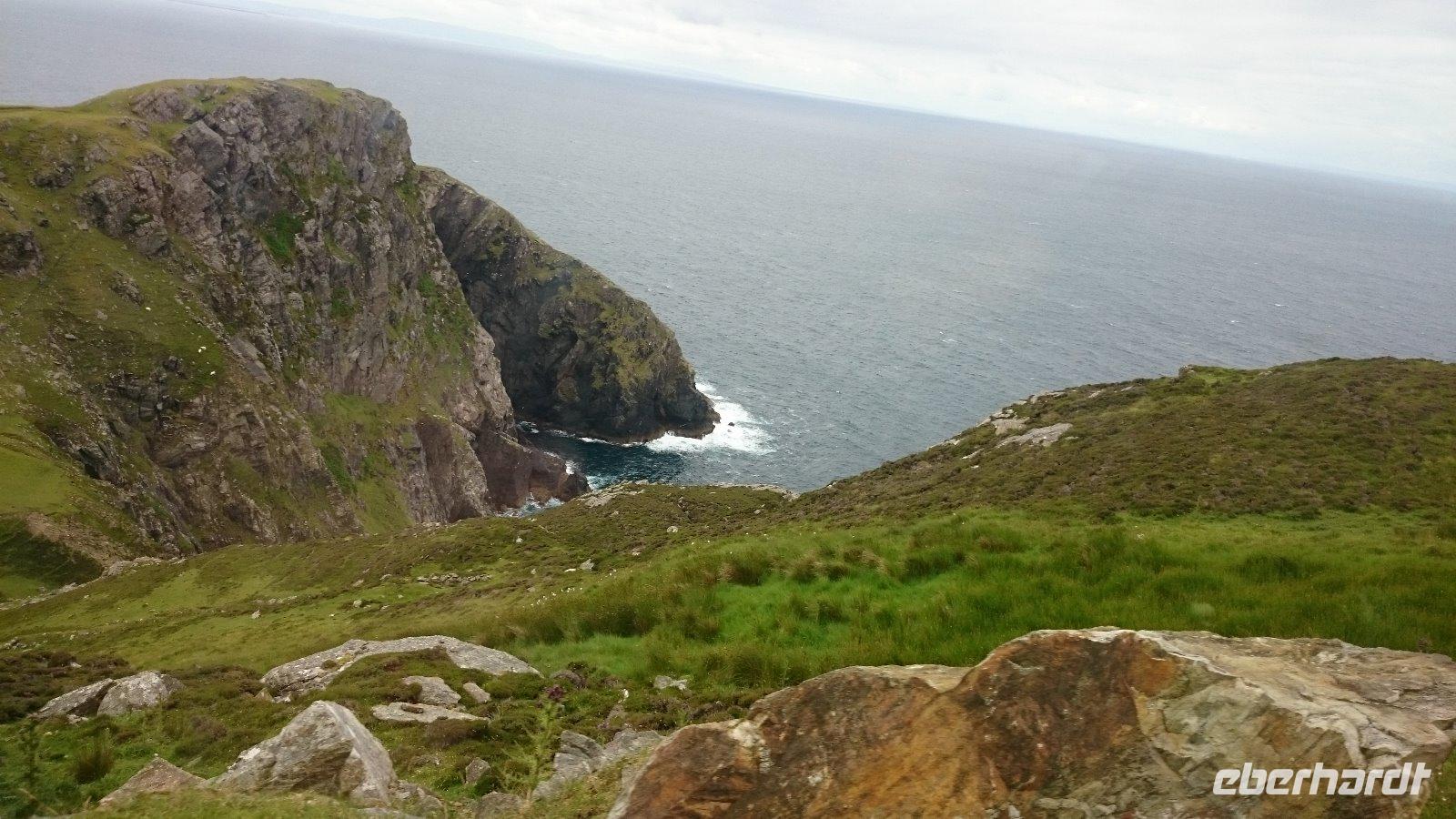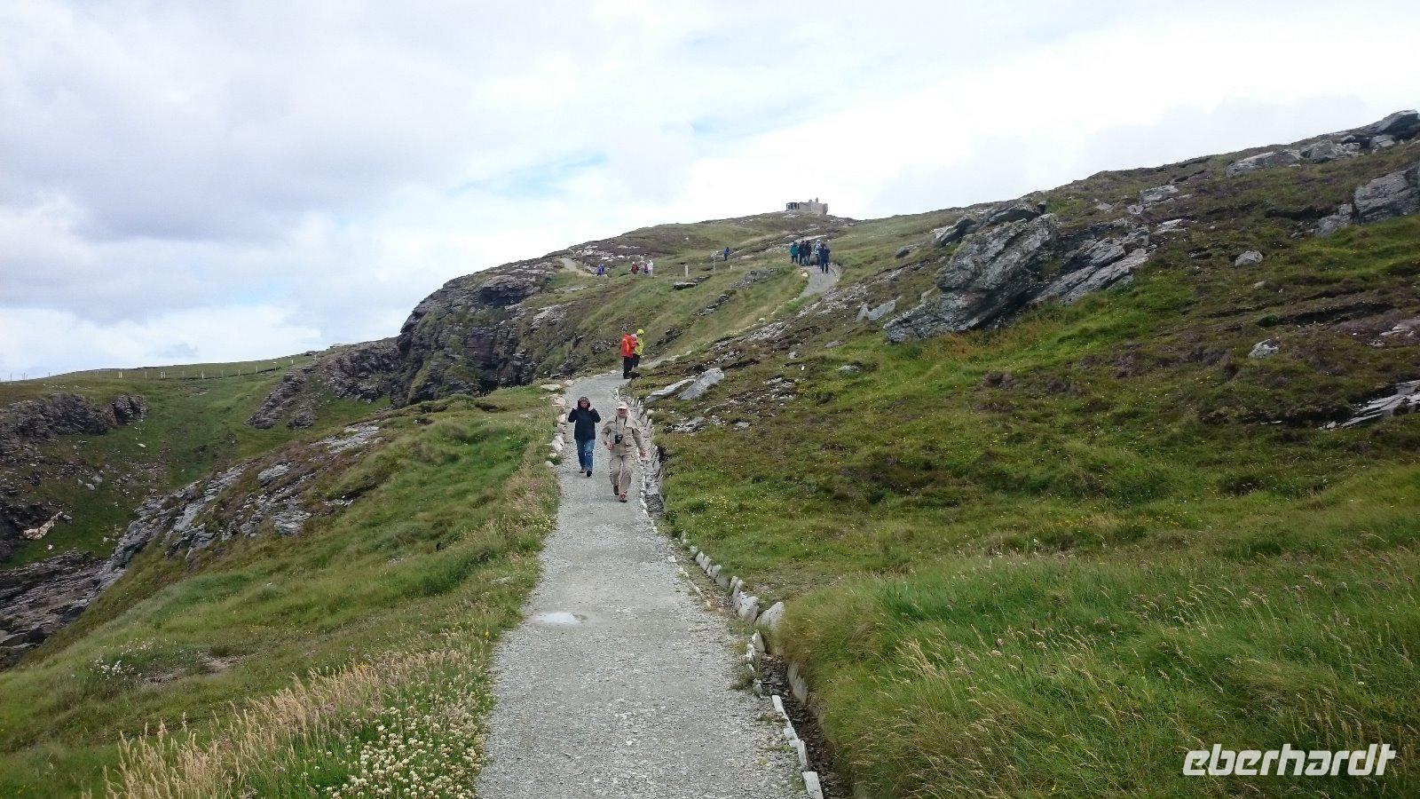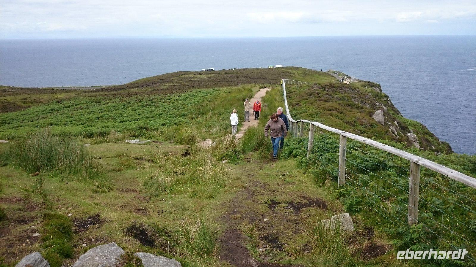 Trotz Regen spazieren wir über den Mamore Gap zu Fuss und atmen die frische irische Luft ein. Unser Mut wird belohnt. Bereits beim nächsten Stopp lässt sich die Sonne blicken und wir spazieren gemeinsam zum Glenevin Wasserfall. Nach nur einer Fahrstunde erreichen wir Doagh Famine Village. Ein Freilichtmuseum, welches uns mit der Geschichte der großen Hungersnot in Irland vertraut macht. Im dazugehörigen Cafe werden wir mit Tee und Kaffee überrascht.Malin Head, der nördlichste Punkt Irlands empfängt uns stürmisch. Der Weg zum Höllentor ist ein unbeschreibliches Naturvergnügen und viele Erinnerungsfotos werden geschossen. Stürmisch geht es auch nochmal auf dem Steinfort Griannan of Aileach zu. Wir fühlen aber auch die Stärke und Kraft dieses historischen Denkmals.