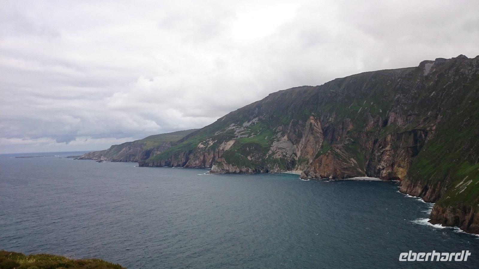 Endlich fahren wir zu den spektakulärsten Klippen Irlands - Sleave League. Nur wenige Touristen verirren sich an diesen entlegenen Ort, der soviel Faszination ausstrahlt. Am Mittag erreichen wir Donegal, eine sehr hübsche Hafenstadt mit Burg. Viele Gäste nutzen die Zeit für einen Besuch dieses mittelalterlichen Kleinods. Außerdem können wir. Der Blick auf Ben Bulben ist wolkenverhangen, dafür erreichen wir das Grab von W.B. Yeats in Drumcliffe trockenen Fusses.Nach dem Abendessen im charmanten Hotel in Ballina ist Fußballzeit. In einem seperaten Raum erleben wir in spannendes Spiel der deutschen Mannschaft gegen Italien.