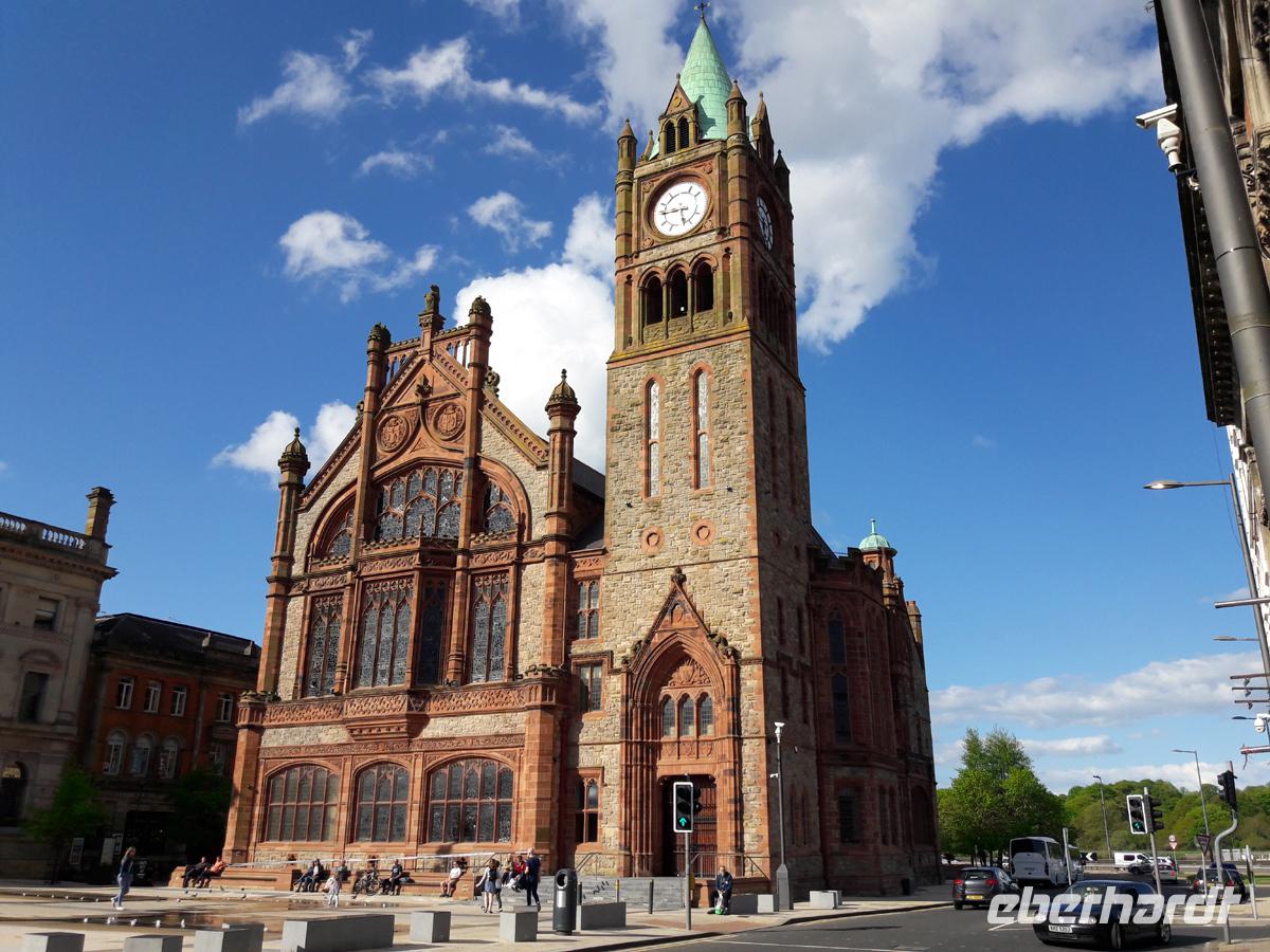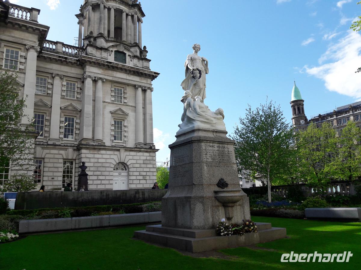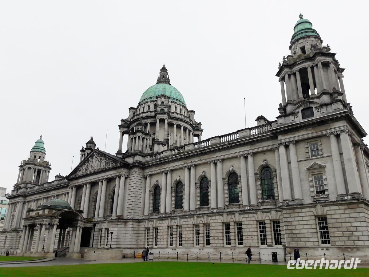 Wir ahnen, wie reich die Stadt einmal war; reich geworden durch die Leinenindustrie, aber auch durch den Schiffbau. Wurde doch hier in der Werft Howard & Wolf die Titanic erbaut. Heute ist mehr der Dienstleistungssektor maßgebend. Handel, Banken und Versicherungen füllen die neu entstandenen Bürotürme.