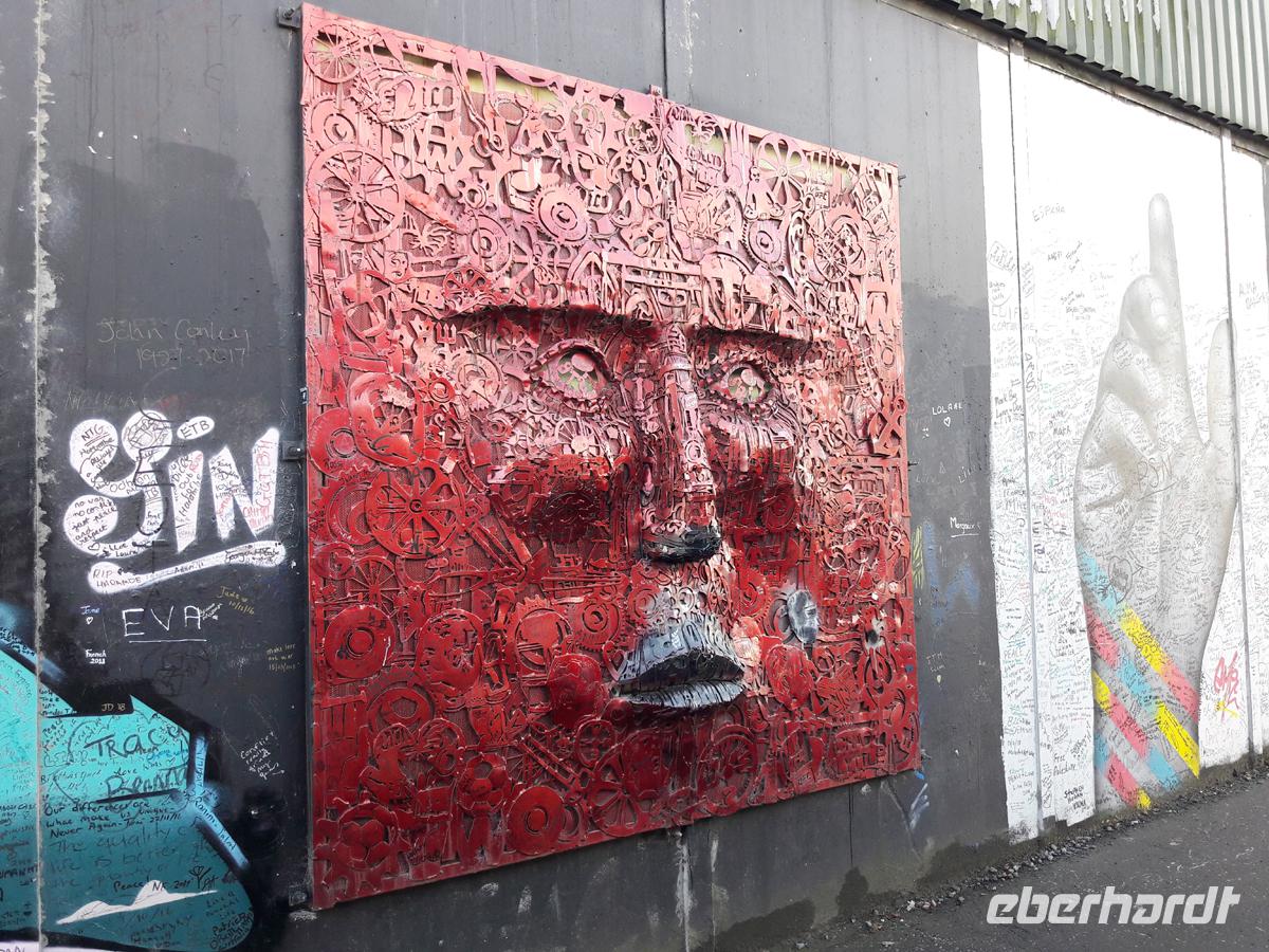 Dann sind wir in Belfast, der Stadt, wo die Troubles, also der Nordirlandkonflikt am heftigsten wütete. Die so genannten Peace Lines, also Friedenslinien verdienen ihren Namen nicht, denn sie trennen brutal die katholischen von den protestantischen Vierteln. An einer halten wir uns etwas länger auf um Bilder zu machen. Nordirland und vor allem Belfast hat Wunden, die noch lange nicht verheilt sind. Die Menschen blicken jedoch mehr und mehr in die Zukunft. Das sieht man auch an den vielen Kränen in der Stadt. Es wird gebaut, wie schon lange nicht mehr, so, als wolle man das Versäumte von heute auf morgen nachholen. Allein 16 neue große Hotelkomplexe sind in Planung. Unsere örtl. Reiseleitung holt aber auch die schönen Seiten der Stadt hervor und wir entdecken zu Fuß die viktorianischen Ecken der Stadt, die Oper, alte Pubs, den Prince Albert Uhrturm, der fast so schief ist wie jener von Pisa, die Hauptkirche der Presbyterianer und vieles mehr. Neben der Oper befindet sich das meistgebombte Hotel Europas. Im Hotel Europa ging insgesamt 38 mal eine Bombe hoch.