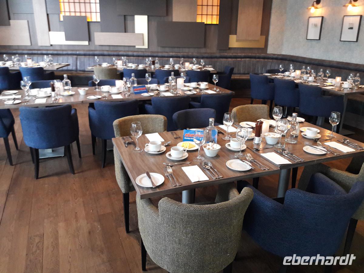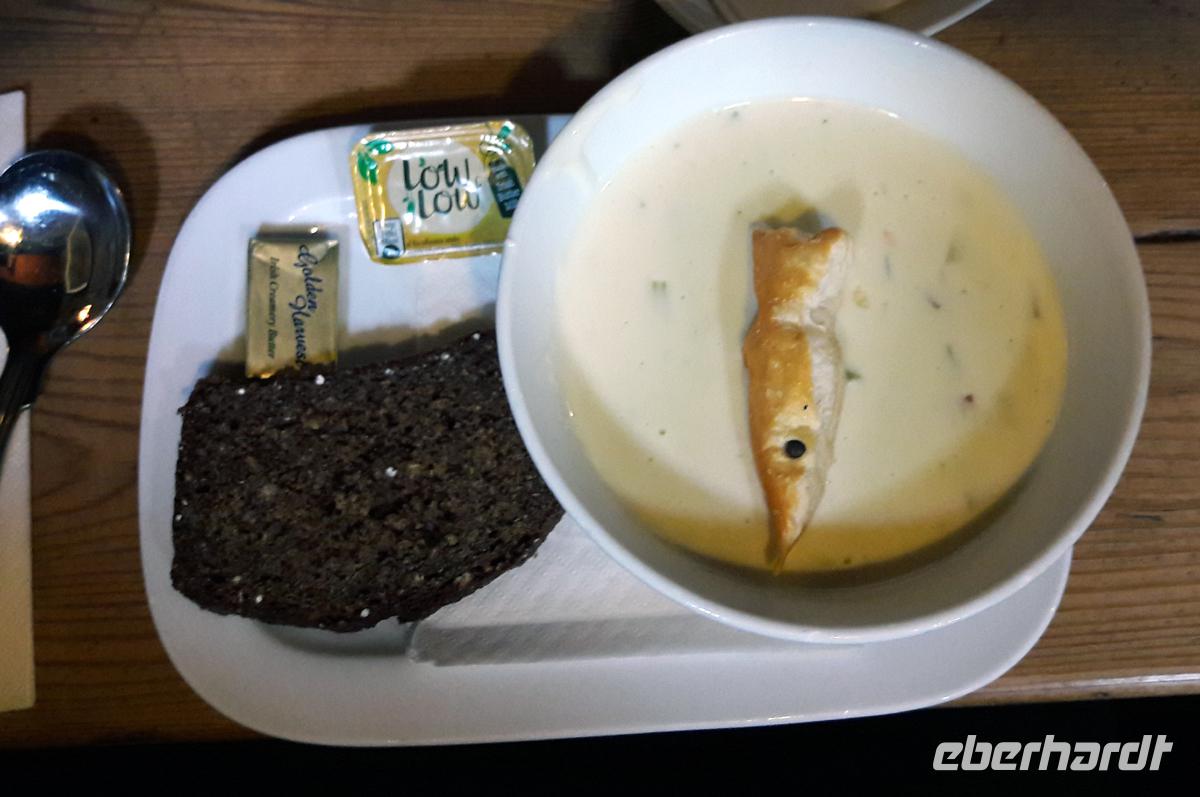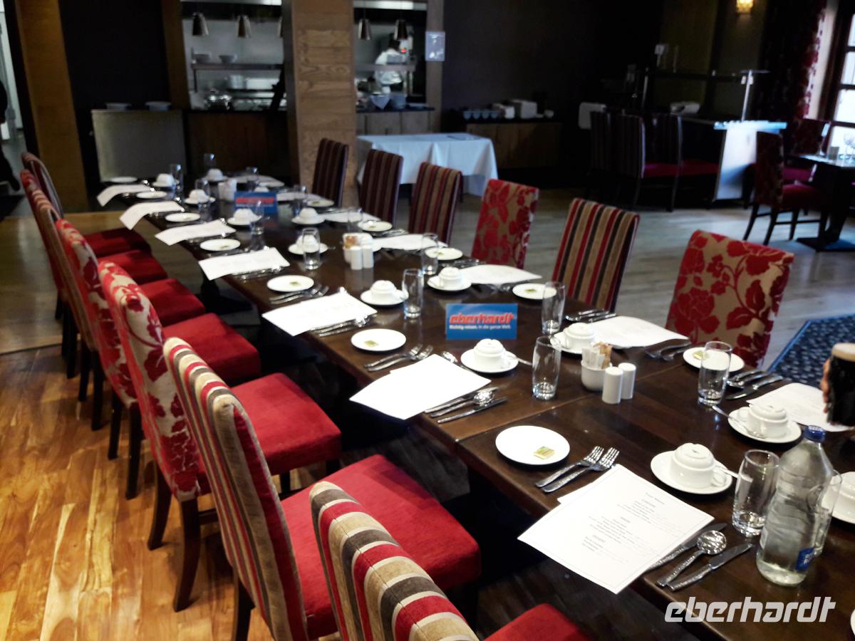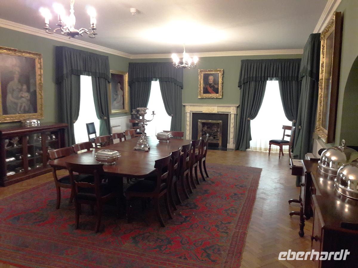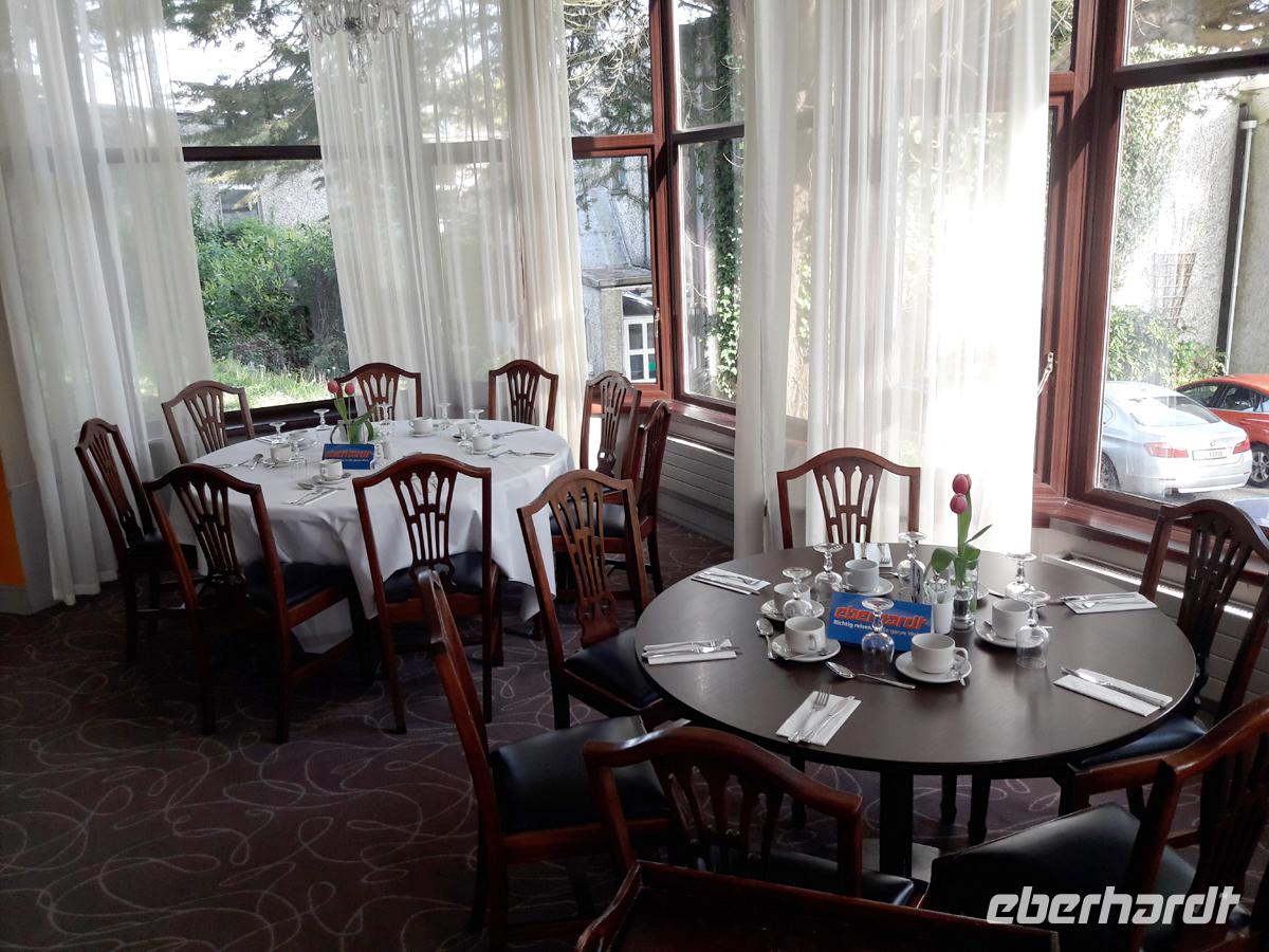 Schon ist die Zeit um uns wir begeben uns aus der Stadt Richtung Westen hinaus. Nach einer guten halben Stunde direkt am Ufer des Lough Belfast entlang, erreichen wir unser Hotel in Carricfergus, wo wir recht großzügige Zimmer beziehen und den ersten Tag, der für viele recht lang war, bei einem mächtigen Abendmenü zu beenden.