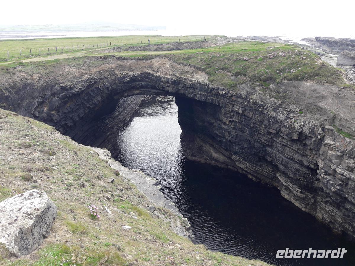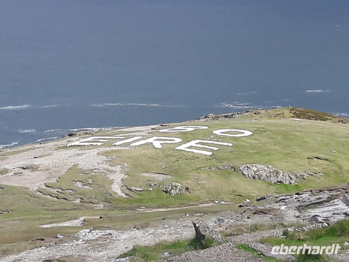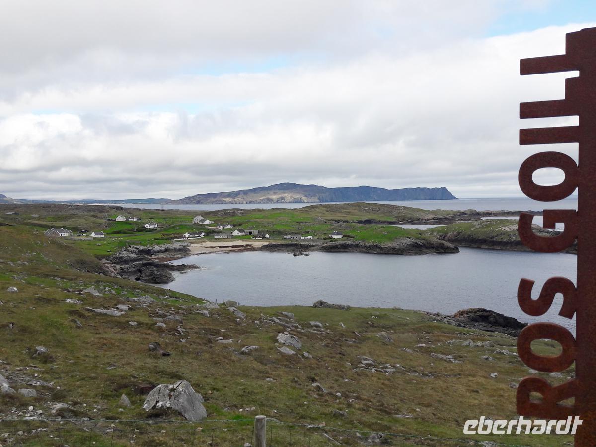 Wieder haben wir bestes Wetter erwischt. Das unser Bus nicht größer sein darf, merken wir spätestens heute bei unserer Tour auf die Inishowen Halbinsel. Über Buncara reisen wir zunächst am Dunree Castle vorbei, einem britischen Fort aus dem frühen 19. Jh, dass auch Angst vor einem Angriff französischer Truppen errichtet wurde. Die Straße wird immer schmaler, aber dann erreichen wir ohn: Den Mamore Gap, den höchsten Paß der Halbinsel, wo St. Eignes, ein lokaler Heiliger mit einem Brunnen nebst Statue und Altar verehrt wird. Es ist totenstill. Sämtliche Zivilisationsgeräusche sind verschwunden. Unser Blick geht weit in die Ferne nach Norden auf den Atlantik. In Doagh besichtigen wir das Famine Village, ein Museum, dass an die große Hungersnot in der 1840er Jahre erinnert. Ursachen und Auswirkungen dieser durch einen Kartoffelpilz ausgelösten Katastrophe werden drastisch vor Augen geführt. The great Famine ist bis heute bei allen Iren tief im Bewusstsein verankert, verhungerten doch mehr als eine Millionen Iren und wurden 1,5 Millionen zur Auswanderung getrieben. Nach einer Tasse Tee mit einem Scone, sowie einem kleinen Strandspaziergang setzen wir unseren Weg zum nördlichsten Punkt der Halbinsel fort: Malin Head. Ein Wachturm aus dem Jahr 1805 zeigt den Beginn der militärischen Nutzung dieses Gebiets an. Riesig ist aus weißen Steinen der Name EIRE in den grünen Rasen gelegt. Er sollte Fliegern im 2. Weltkrieg zeigen, dass sie sich über neutralem Gebiet befinden. Wir unternehmen an der tosenden Küste einen Spaziergang zum Höllenloch, welches jedoch nicht recht ruhig ist, was sicher sdaran liegt, dass gerade Ebbe ist, und der Wind nicht allzu stark. Über Carndonagh reisen wir zum Griannan of Aileach Stoneford, was schon weiter im Süden liegt. Über das genaue Alter dieser Ringforts liegen die Archäologen noch im Streit. Manche legen sie schon in die Eisenzeit ins 1. Jahrtausend vor Chr. Sicher ist aber, dass die meisten schon ab ca. 500 n. Chr. bis ins späte Mittelalter in Benutzung waren. Es waren meist Fluchtburgen, die nur sporadisch genutzt wurden. Weit kann man auf den Loch Liffey und auch in Richtung Loch Foyle und Derry in Nordirland schauen. Am Nachmittag haben wir in Letterkenny noch Zeit genug, in trauter Zweisamkeit oder ganz individuell das überschaubare Zentrum zu erkunden und z. B. die Kathedrale St. Eunan zu besichtigen. Auch viele Geschäfte haben geöffnet, denn in Irland gibt es kein Ladenschlußgesetz. Den Abend beschließen wir wieder bei einem gemeinsamen Menü in unserem Hotel.