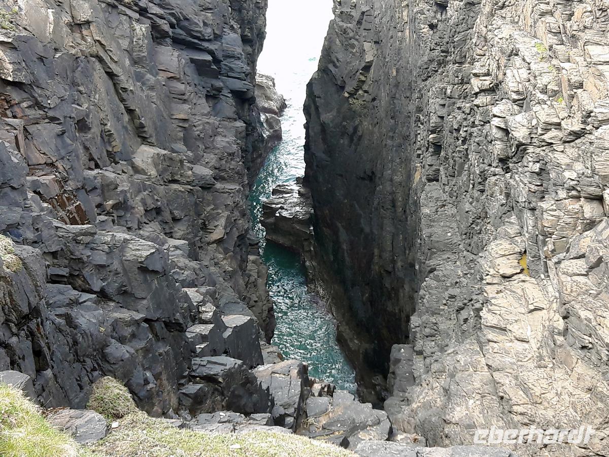 Auf unserem Weg weiter in den Südwesten sehen wir erst das Dunguaire Castle an der Galway Bay und zweitens in Ballyvaughan das verwirrendste Hinweisschild der ganzen Insel, welches zu einem Postkartenmotiv geworden ist. Kurze Zeit später sehen wir eine Landschaft wie von einem anderen Stern. Die verkarstete Region des Burren. Zu Platten gebrochener Kalkstein macht diese Landschaft aus. Es gibt keine Bäume und die wenige Vegetation duckt sich in die Felsspalten. Wer genau hinschaut, entdeckt seltenen Orchideen und Flechten. Gegen Mittag steht ein weiterer Höhepunkt an: Die Cliffs of Mohair. Sie fallen bis zu 214 m steil in die Tiefe ab. Unten ist die tosende Brandung zu hören. Gischtschwaden ziehen gegen und über die Klippen, was die Stimmung noch beeindruckender macht. Ca. 30000 Vögel; Möwen, Lummen, Alke und Papageitaucher sollen an den Felsen brüten. Diese Cliffs sind ein touristischer Hotspot, und deshalb von sehr vielen Menschen besucht. Mit unserem Besuch von Loop Head ändert sich das. Dieser Punkt ist nicht minder spektakulär, aber es sind kaum Touristen dort. Nur wenige Pkw- und Radfahrer treffen wir an. Sicher liegt es daran, dass der Weg dorthin nicht von normalen Reisebussen befahren werden kann. Auch hier wieder eine beeindruckende Brandung und brütende Vögel auf steilen Klippen und Felsnadeln. Und wenn wir schon einmal hier sind, sehen wir uns auch noch die Bridges of Ross an. Es ist zwar nur noch eine Felsenbrücken, welche durch Unterspülung des Meeres im Fels entstanden ist (2 sind schon eingestürzt), der Name ist Plural ist aber geblieben. Hier sind wir fast die einzigen Besucher. Beide Punkte sind als immer noch ein Geheimtipp. Doch nun müssen wir die Fähre über den Shannon, Irlands größten Fluss bekommen und erreichen sie pünktlich. Unser Ziel ist Tralee. Diese Stadt nennt man auch das Tor nach Dingle. In unserem Hotel nehmen wir zunächst das Abendessen zu uns, um uns hernach ins nationale Folktheater zu begeben. Im Siamsa Tire Theater, 1974 gegründet, wohnen wir einer wunderschönen Tanz- und Musikshow bei. Das hat sich für alle Zuschauerauf jeden Fall gelohnt.