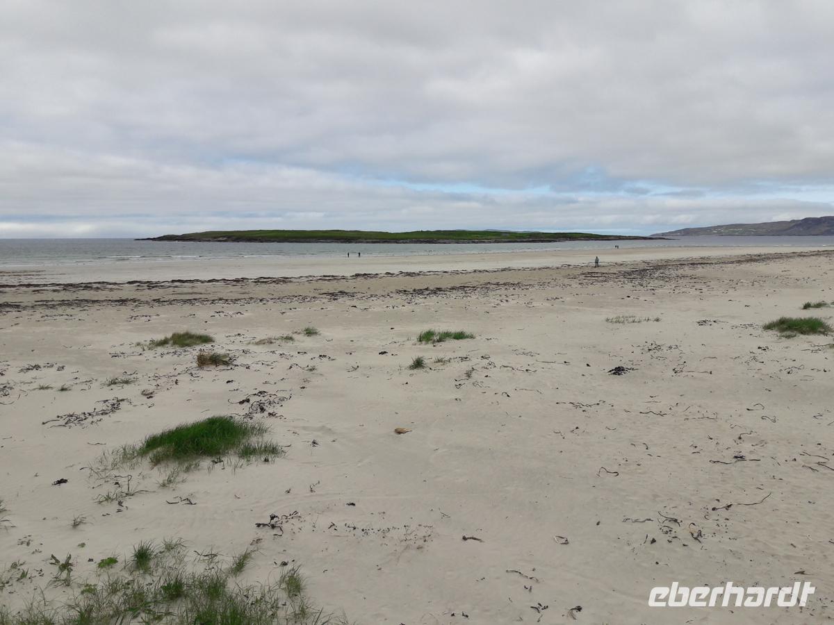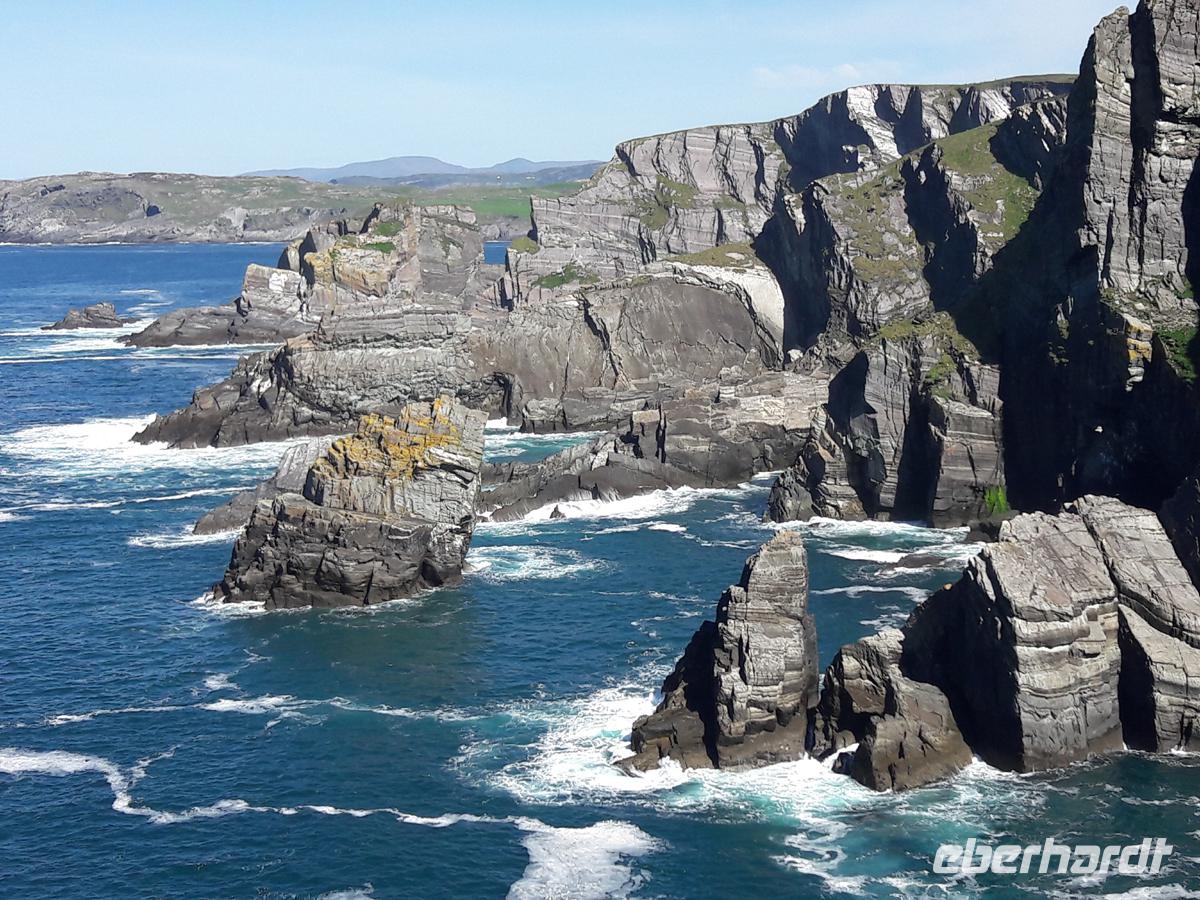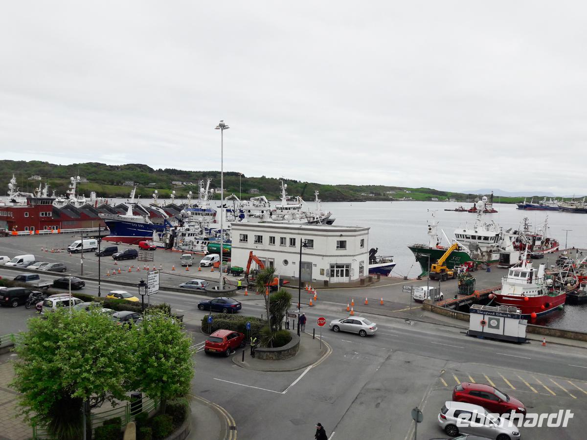 Zunächst erblicken wir auf unserer Reise auf die Rosguill Halbinsel Deo Castle, welches inklusive Hausgeist alle Klischees eines idyllisch gelegenen Schlosses in Irland erfüllt. Von dem Aussichtspunkt an der Spitze der Halbinsel können wir weit nach Westen bis zu den Tory Islands schauen. Weiter führt uns unser Weg zur Landzunge Bloody Foreland. Von hier bietet sich eine gute Sicht auf die Inseln auf Inishbeg, Inishdocy und Inishbofin. Der Name hat nichts mit irgendeinem blutigen Gemetzel zu tun, sondern rührt von der rötlichen Farbe der dortigen Klippen her. Wir befinden uns im Landstrich „The Rosses", einem Gaeltacht Gebiet, wo viele Menschen Gälisch noch im Alltag sprechen. Weit ziehen sich hier Torfabbaugebiete ins Land und wir halten an einem Torfstich, um das Heizmaterial genau unter die Lupe zu nehmen. Unserer Mittagspause legen wir im kleinen Hafenstädtchen Dungloe ein, das mit etlichen Restaurants und Pubs aufwertet. Irland verfügt neben steilen Küsten auch hin und wieder über große Sandstrände. Der Portnoo Beach bei Narin ist berühmt und lädt zu einem Strandspaziergang ein. Nach einem Stop in Ardara, wo uns im Zentrum der irischen Tweedproduktion dessen Herstellung an einem alten Webstuhl gezeigt wird und wir einen kurzen Gang durch das übersichtliche Städtchen unternehmen, erreichen wir Killibegs. Unser Hotel befindet sich direkt am Hafen. Hier liegt Irlands größte Fischereiflotte vor Anker. Da bietet es sich an, sich bei unserem Abendmenü für Fisch zu entscheiden. Wenn die Kutter ihren Fang anlanden, steht der Koch des Hotels schon am Kai. Frischer geht es kaum.