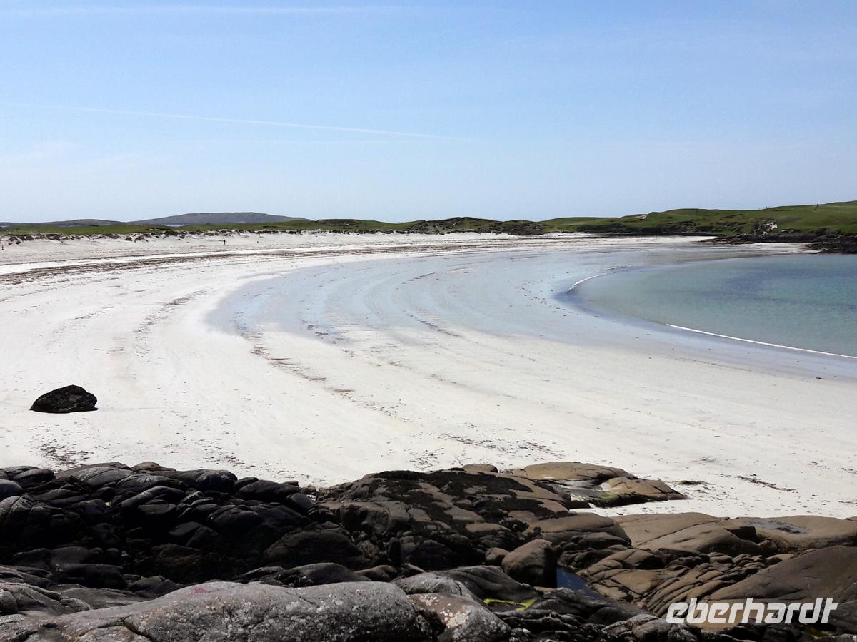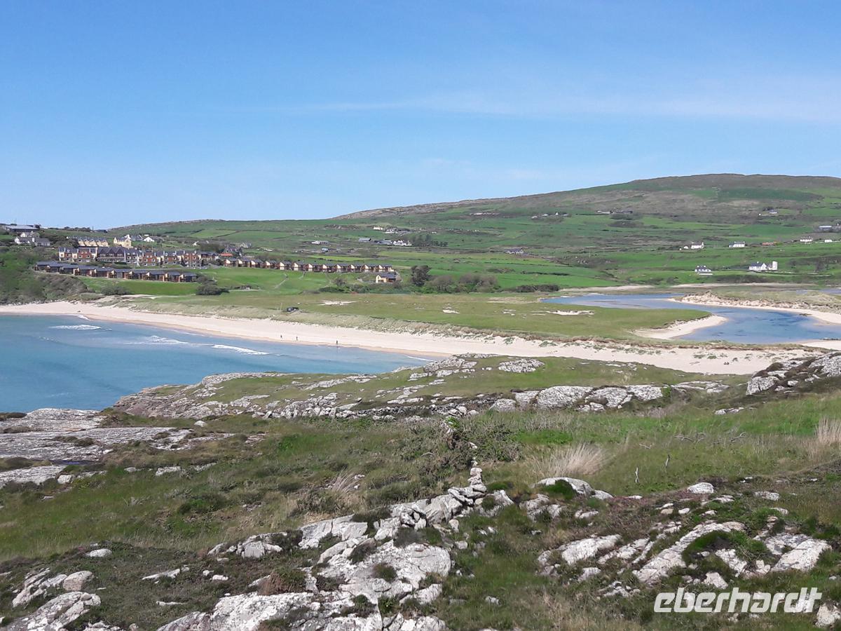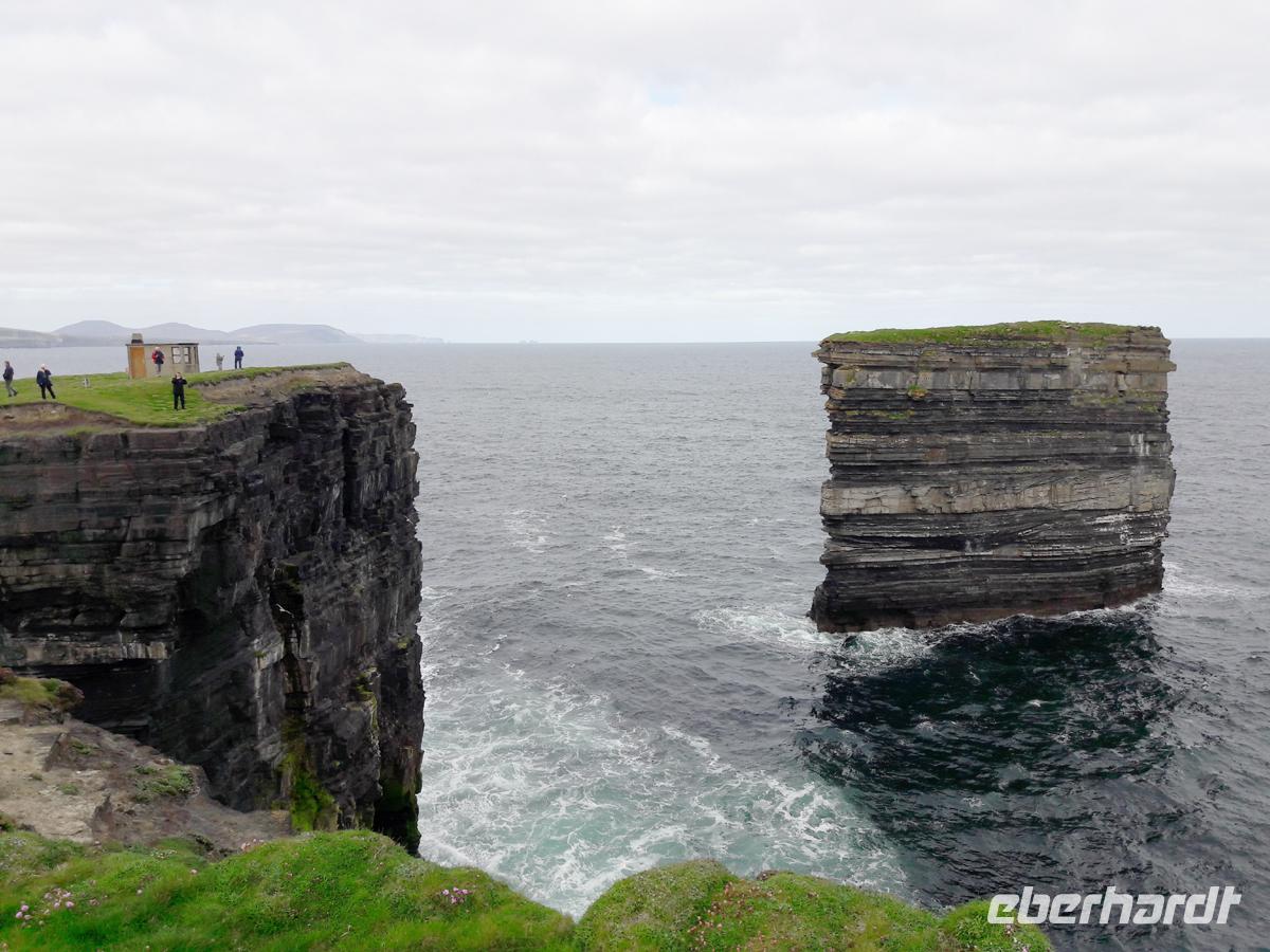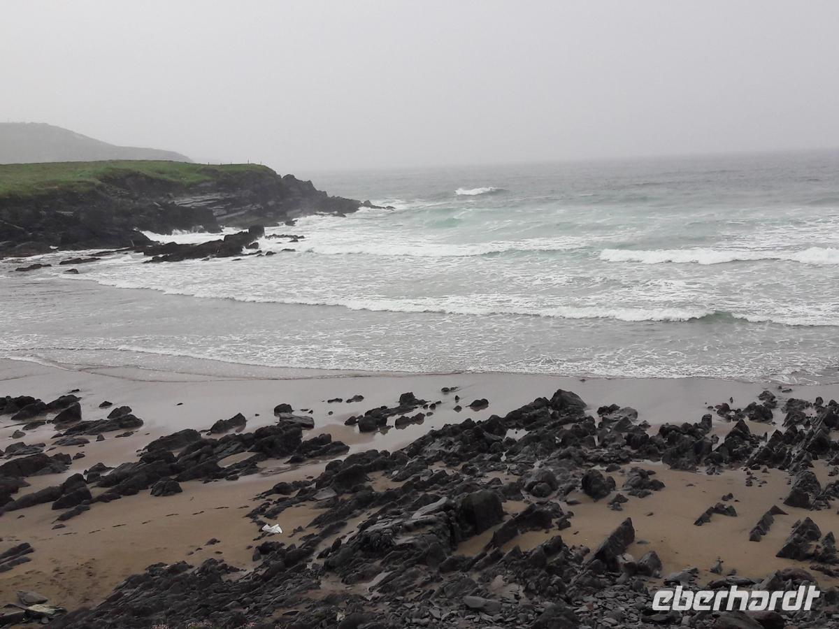 Zunächst erblicken wir auf unserer Reise auf die Rosguill Halbinsel Deo Castle, welches inklusive Hausgeist alle Klischees eines idyllisch gelegenen Schlosses in Irland erfüllt. Von dem Aussichtspunkt an der Spitze der Halbinsel können wir weit nach Westen bis zu den Tory Islands schauen. Weiter führt uns unser Weg zur Landzunge Bloody Foreland. Von hier bietet sich eine gute Sicht auf die Inseln auf Inishbeg, Inishdocy und Inishbofin. Der Name hat nichts mit irgendeinem blutigen Gemetzel zu tun, sondern rührt von der rötlichen Farbe der dortigen Klippen her. Wir befinden uns im Landstrich „The Rosses", einem Gaeltacht Gebiet, wo viele Menschen Gälisch noch im Alltag sprechen. Weit ziehen sich hier Torfabbaugebiete ins Land und wir halten an einem Torfstich, um das Heizmaterial genau unter die Lupe zu nehmen. Unserer Mittagspause legen wir im kleinen Hafenstädtchen Dungloe ein, das mit etlichen Restaurants und Pubs aufwertet. Irland verfügt neben steilen Küsten auch hin und wieder über große Sandstrände. Der Portnoo Beach bei Narin ist berühmt und lädt zu einem Strandspaziergang ein. Nach einem Stop in Ardara, wo uns im Zentrum der irischen Tweedproduktion dessen Herstellung an einem alten Webstuhl gezeigt wird und wir einen kurzen Gang durch das übersichtliche Städtchen unternehmen, erreichen wir Killibegs. Unser Hotel befindet sich direkt am Hafen. Hier liegt Irlands größte Fischereiflotte vor Anker. Da bietet es sich an, sich bei unserem Abendmenü für Fisch zu entscheiden. Wenn die Kutter ihren Fang anlanden, steht der Koch des Hotels schon am Kai. Frischer geht es kaum.