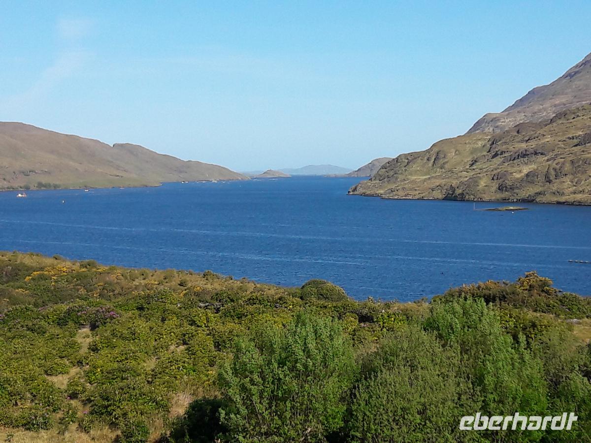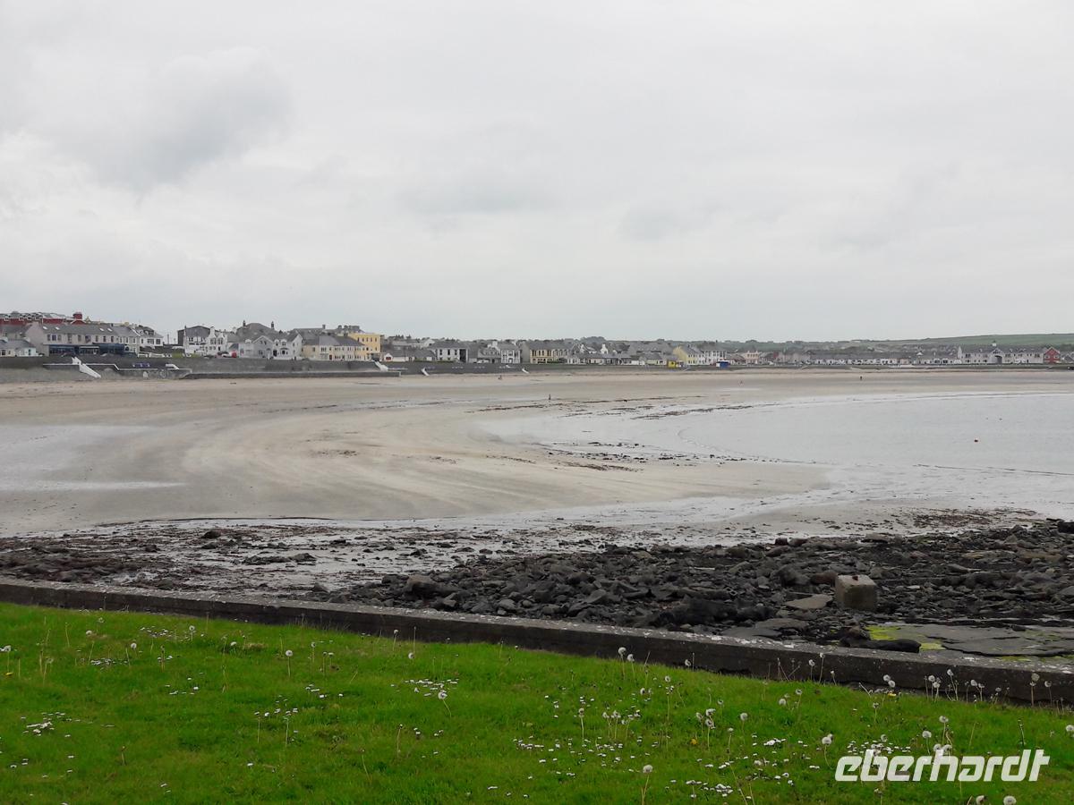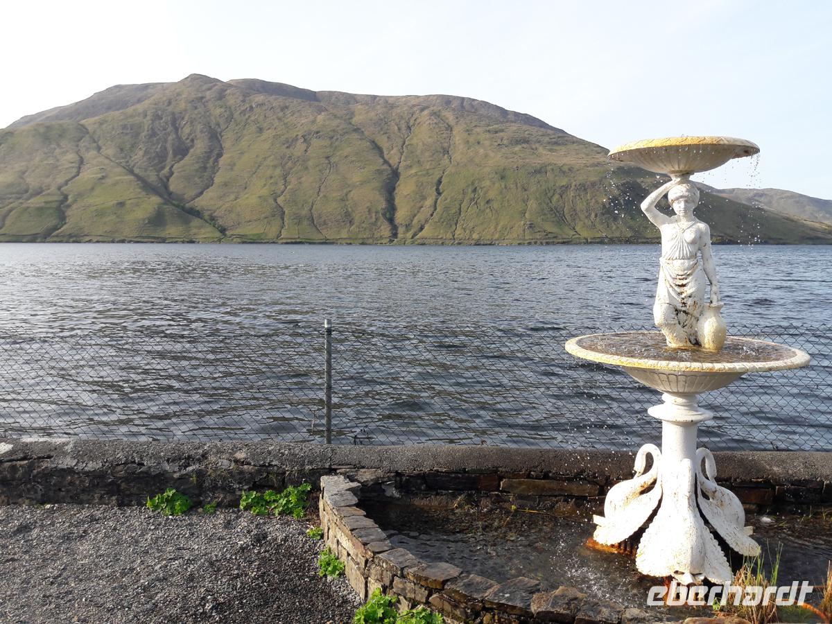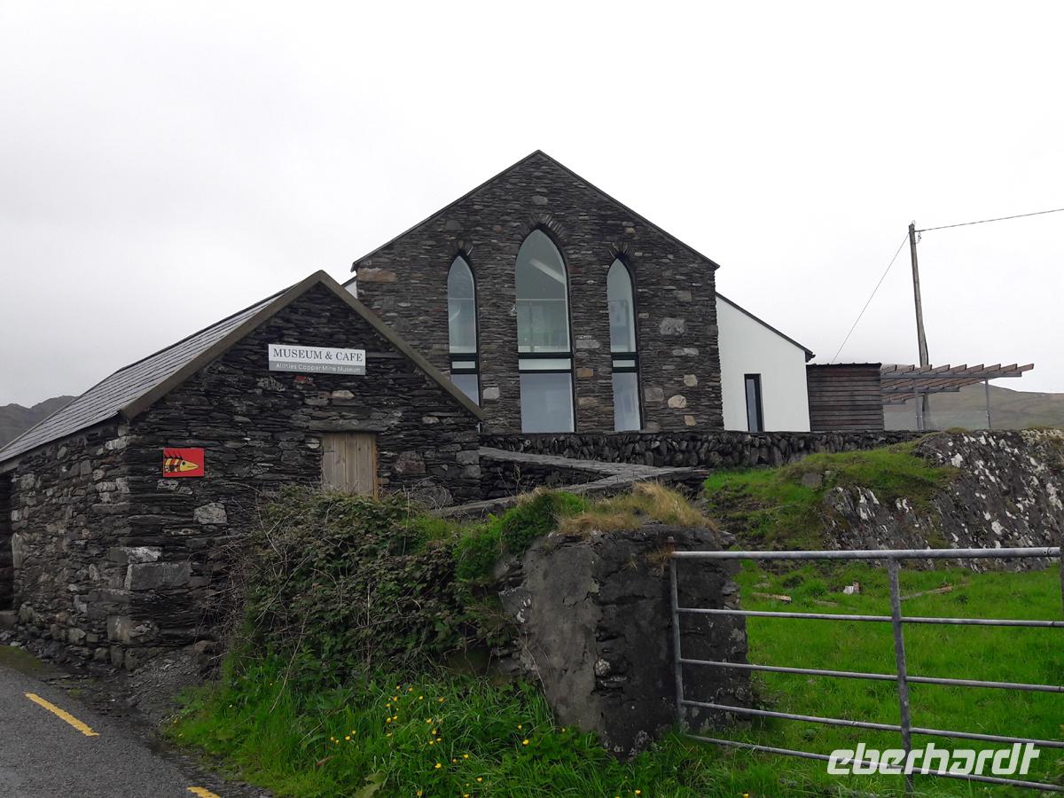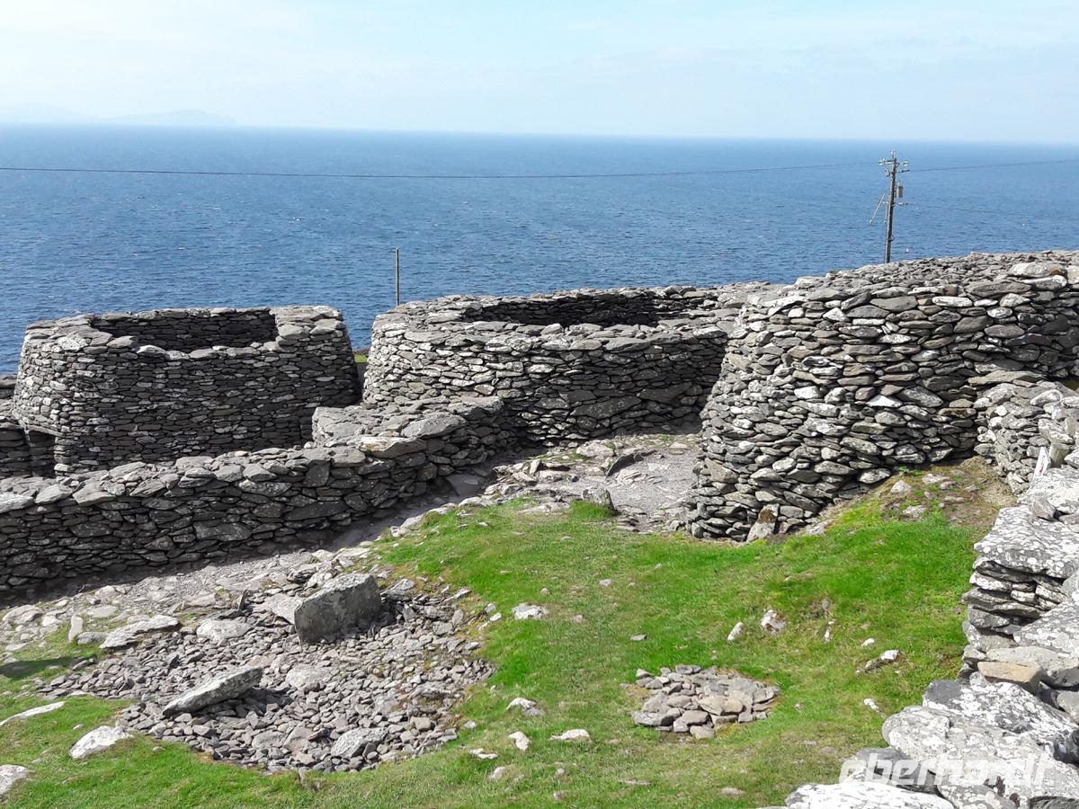 Unseren ersten Stopp legen wir heute in Killala ein, wo sich uns die Gelegenheit bietet, einen noch komplett erhaltenen Rundturm eines altirischen Klosters zu bestaunen. Der hl. Patrick selbst hatte das Kloster im 5. Jh, gegründet. Der Turm ist 26 m hoch und diente zur Unterbringung wertvoller Bücher und anderer Dinge. Downpatrik Head, der wilde Aussichtspunkt weist Reste einer Kapelle auf, die der Nationalheilige St. Patrik dort im 5. Jh. errichtet hat. Eine Felsnadel vor den steilen, ungesicherten Klippen soll er selbst abgespalten haben, mit einem Häuptling darauf, der sich seiner Missionstätigkeit allzu hartnäckig widersetzte. Der Weg dorthin ist von Blowholes begleitet, durch die das Meer mittels unterirdischer Aushöhlungen bei Sturm Wasser bis auf die Wiesen spritzt. Wir bleiben aber trocken, weil heute ein sonniger Tag ist. Beeindruckende Klippen gibt es auch bei den Ceide Fields. Doch hier bekommen wir zunächst eine Führung über das größte steinzeitliche Grabungsgelände Europas. Zwar sind nur kleine Mauerreste zu erkennen, immerhin schon bis zu 5000 Jahre alt, aber die Bedeutung liegt im Nachweis der Umgestaltung einer ganzen Landschaft durch den Menschen. Überraschend ist, dass schon damals die Areale, wie heute auch noch, durch Mauern in einzelne Grundstücke unterteilt wurden. Nach einem Stop am Besuchercentrum im Ballycroy Nationalpark reisen wir nach Achill Island, der mit 146 qkm größten Insel Irlands. Den kompletten Nachmittag verbringen wir auf Achill Island. 87% sind von Hochmooren bedeckt. Das Eiland zog auch Künstler an, u. a. Heinrich Böll, in dessen Cottage heute Stipendiaten wohnen, und wo wir als erstes stoppen. Auf die große Hungersnot werden wir beim Besuch eines verlassenen Dorfes unterhalb des 675 m hohen Mt. Slievemore aufmerksam gemacht, denn 1,5 Millionen Iren verließen Mitte des 19. Jh. ihre Heimat. Den Abschluß bildet der Besuch der Keem Bay im äußersten Westen mit dem gleichnamigen Strand, der allgemein als einer der schönsten Strände Irlands gilt. In der kleinen Stadt Westport machen wir noch einen kurzen Stopp. Sie wurde 1780 planmäßig im Auftrag von Lord Sligo für die Bediensteten seines Schlosses Westport House gegründet. Am Abend erreichen wir unser Hotel direkt am Killary Harbour, Irlands einzigem Fjord. Bei einem wirklich sehr leckeren Abendmenü (z. B. Ente oder Wolfsbarsch) beschließen wir den Abend mit Blick auf den Fjord.