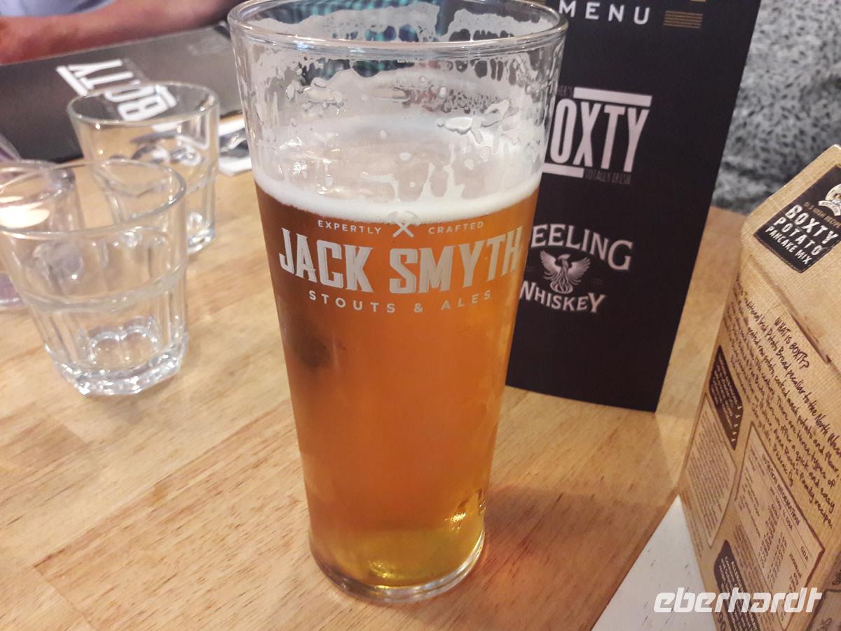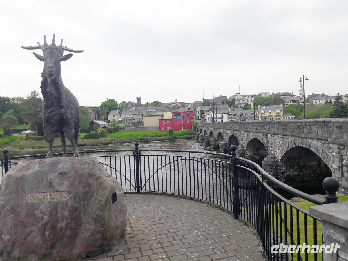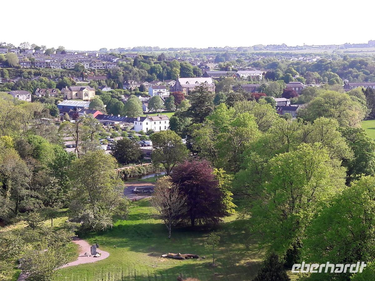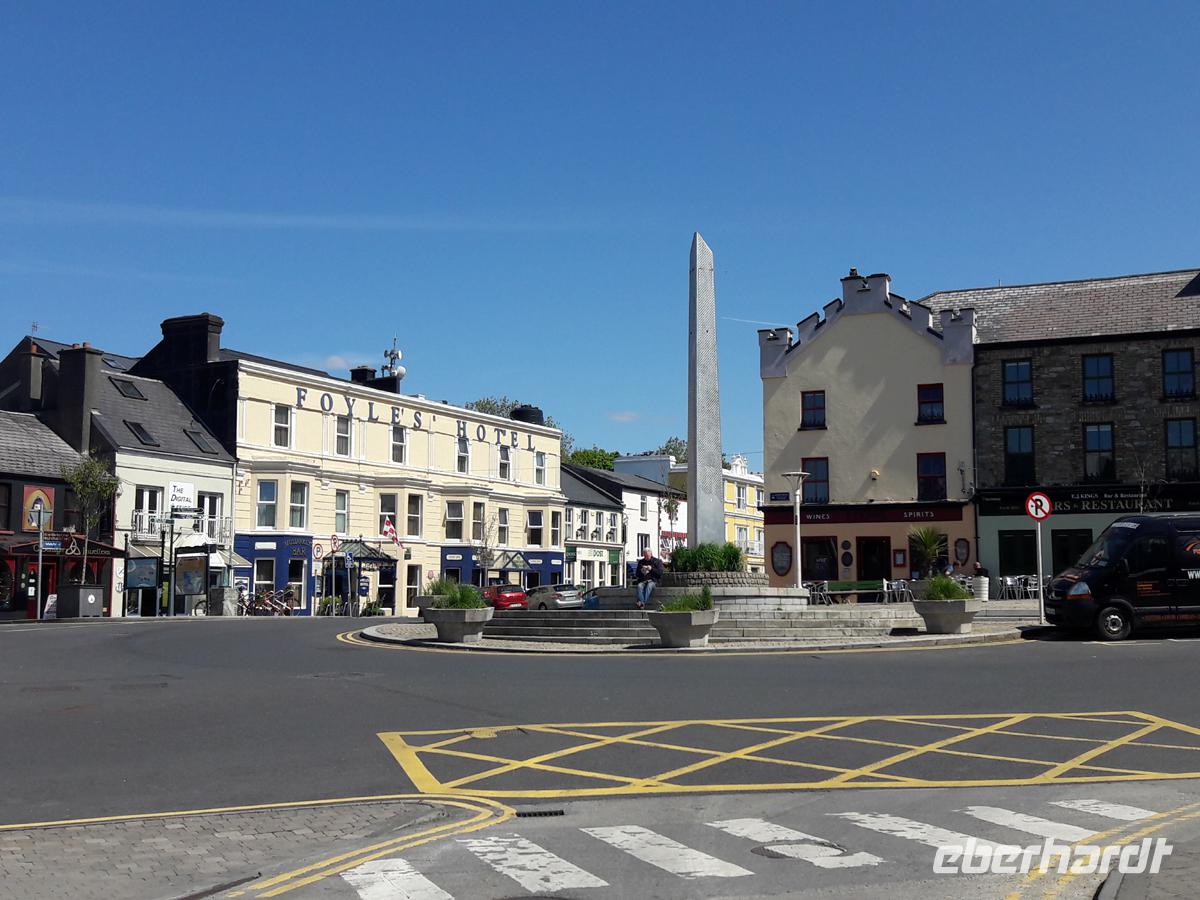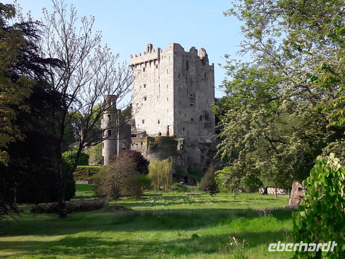 Zu Fuß begeben wir uns nach einem opulenten Frühstück zum nur 5 Gehminuten entfernten Gelände des Blarney Castle. Ein riesiges Areal sehr schön angelegter und unterschiedlicher Gärten erwartet uns. Neben dem burgähnlichen Blarney House, das ab 1848 sein heutiges Aussehen erhielt, zieht vor allem die mittelalterliche Turmburg, das eigentliche Blarney Castle die Besucher an. In dessen Zinnenkranz ist „the stone of eloquence" der Stein der Redegewandtheit eingelassen. Wer ihn küsst, wird nie wieder um eine überzeugende Ausrede verlegen sein. Nach dem Besuch queren wir die irische Insel bis zur Hauptstadt Dublin. Beim Erreichen der Stadt sehen wir schon den riesigen Obelisken für Wellington im Phoenix Park und gegenüber vom viktorianischen Bahnhof das riesige Areal der Guinnes Brauerei. An der Liffey, dem Fluß, welcher die Stadt in 2 Teile teilt, erreichen wir nach dem klassizistischen Zollhaus unser Hotel, wo Hillary, unsere Stadtführerin schon auf uns wartet. Dublin, dessen Name von den Wikingern stammt und schwarzer See bedeutet, ist eine pulsierende Metropole, die jedoch den Charme des 18. und 19. Jahrhunderts nicht verloren hat. Das sieht man vor allem an den Häusern im georgianischen Viertel, dass die typischen schönen Türen an den Häusern aus dieser Zeit aufweist. Durch die quirlige O´Connell Street mit dem neuen Wahrzeichen, der über 121 hohen Nadel „The Spire", ziehen wir am In-Viertel Temple Bar vorbei, wo wir abends in einem Restaurant das letzte Abendessen der Reise genießen. Vorher verabschieden wir uns aber noch von unserem zweiten Chauffeur Peter. In Tempel Bar genießen wir ein sehr üppiges Essen im Boxty House. Das braut auch ein selbst ein sehr leckeres Bier. Da tut dann ein ausgedehnter Verdauungsspaziergang zum Hotel zurück richtig gut.