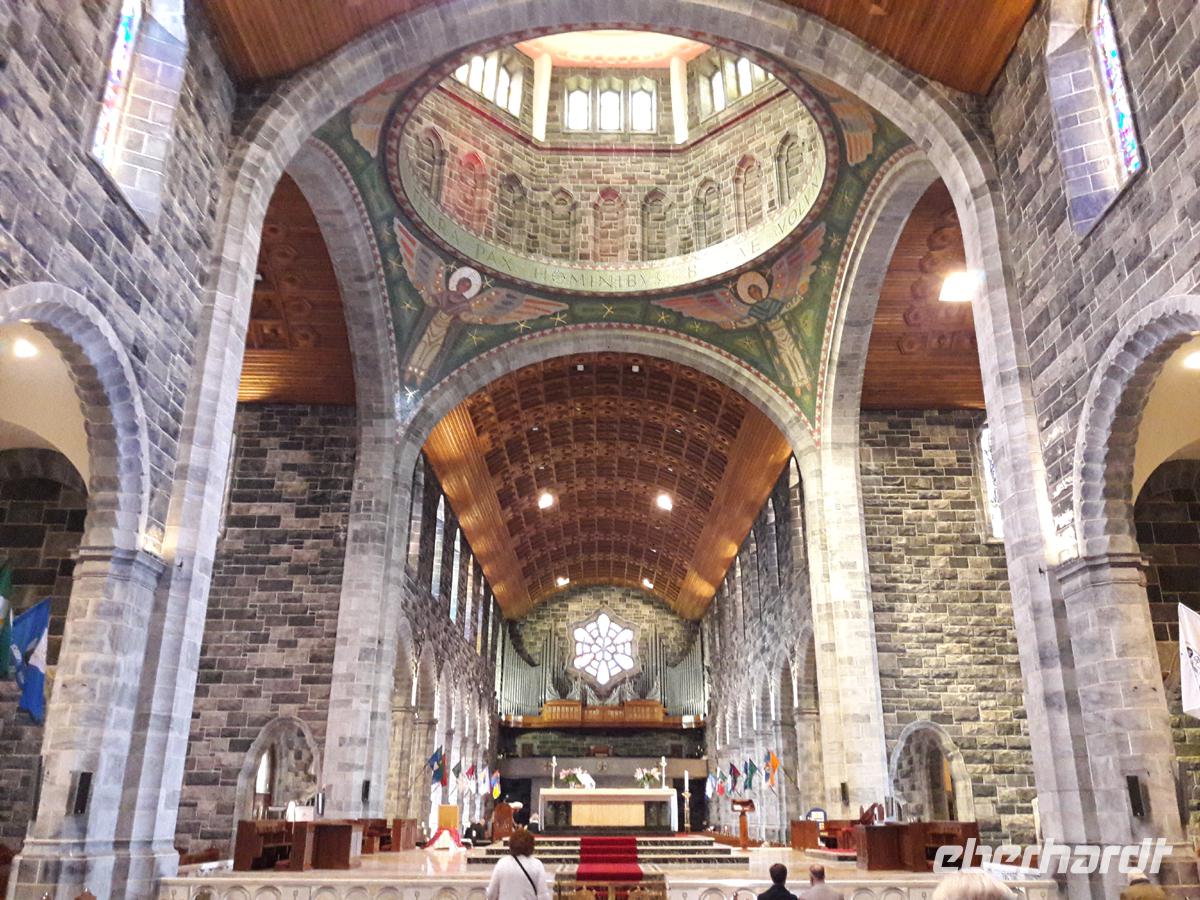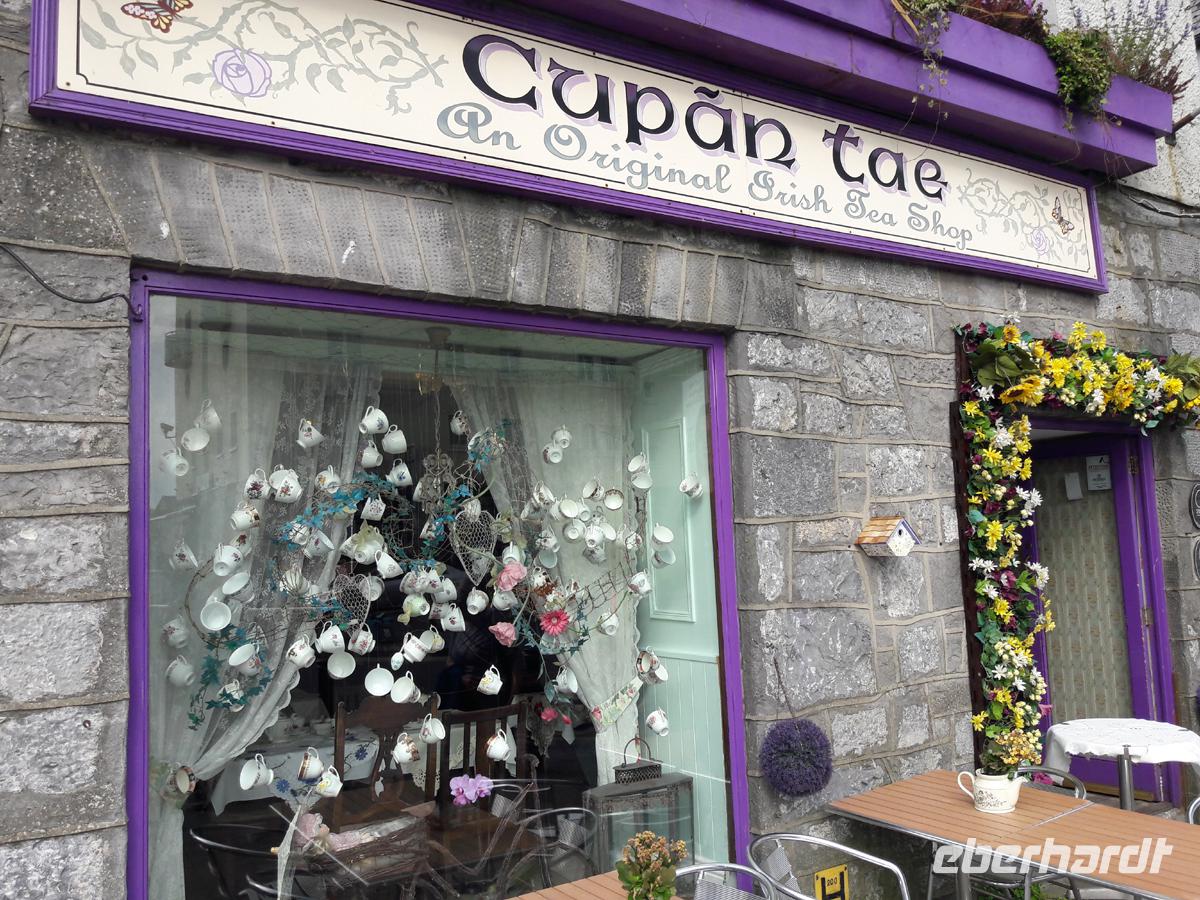 Wir wenden uns danach mit Galway einer der schönsten irischen Städte zu. Quirlig, jung und trotzdem mit einem mittelalterlichen Stadtbild gesegnet. Straßenmusiker an jeder Ecke. Gut, dass wir ein wenig freie Zeit haben. Unser Hotel befindet sich mitten im Zentrum und nur ein paar Schritte entfernt von den Pubs mit guter Live Musik. Einen ersten Überblick haben wir schon bei einem nachmittäglichen Spaziergang mit Kirchenbesichtigung erhalten, sodass an Abend die Orientierung nicht schwerfällt. Neben der Kathedrale (mit Toilette!) beschauen wir uns das Lynch Castle, die St. Nikolaus Stadtkirche aus dem 14. Jh. den spanischen Bogen als alter Hafenzugang in der Stadtmauer, sowie das Denkmal für Kolumbus an, dem hier die Idee gekommen sein soll, es könnte sich noch weiter westlich Land befinden. Anschließend ist es Zeit für einen gemeinsamen Five o´ clock Tee in einem urigen kleinen Teehaus direkt am Hafen. Leider müssen wir uns heute von unserem Chauffeur Mike verabschieden, der vom Busunternehmen für einen Krankheitsausfall eingesetzt wird. Zum üppigen Abendmenü trinken viele Gäste gerne ein Guinnes oder einen Cidre, welcher in Irland auch sehr beliebt ist. Sehr frisch schmeckt auch ein Ale, also ein obergäriges Bier z. B. der Marke Smithwick.