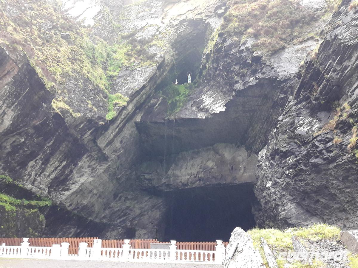 Heute Morgen bereisen wir zunächst Valentia Island. Mit einem normalen Bus ist es unmöglich, diese Insel zu befahren. Zunächst besuchen wir Knightstown, den Hauptort der nur knapp 600 Einwohner zählenden Insel. Hier begann 1918 das erste funktionierende Atlantikkabel nach Amerika. Es zieht uns weiter zu einem alten Schiefersteinbruch, der nun zu einer Freiluftkirche umgestaltet ist. Der gute Valentiaschiefer war so berühmt, dass mit ihm die Houses of Parliament in London und die Pariser Oper gedeckt wurden. Danach steuern gleich auf den höchsten Punkt zu: Geocaun Mountain. Man überblickt die gesamte Insel; theoretisch. Leider stehen wir im dichten Nebel, wie auch den Fogher Cliffs, welche wir nach einem kurzen Gang erreichen. Über den Skellig Ring; so heißt die Küstenstraße südlich von Valentia Island erreichen wir mit einem Stop am Strand von Ballinskelligs wieder Waterford, von wo aus wir den Coomakistapass mit dem Bus erklimmen. Auch hie rkann man die Hand vor Augen nicht sehen. Deshalb gönnen wir uns bei dem regnerischen Wetter etwas Besonderes und reisen nach Derrynane House. Es war der Wohnsitz des Nationalhelden Daniel o´ Connell und liegt in einem wunderbaren geschützten Park. Zuerst besichtigen wir das Herrenhaus inkl. Filmeinführung und lassen uns dann, von oben trocken gemeinsam das Mittag in Form von Kaffee und Kuchen oder etwas Herzhaftem schmecken. Trotz der Nässe lassen es manche sich nicht nehmen, noch ein paar Schritte in den wundervollen „National Historic Park" zu machen, welcher sich von der Küste vor dem Haus bis tief in Berge erstreckt. Im Städtchen Sneem sehen wir, wie sich der gleichnamige Fluss über das Schiefergestein in die Tiefe stürzt und den Ort in 2 Teile trennt. Über den Pass „Mols Gap" erreichen wir den Aussichtspunkt Ladies View mit seinem wundervollen Blick auf die Seen im Muckross Nationalpark, welcher einen der ältesten und ursprünglichsten Waldbestände Irlands aufweist. Im kleinen Städtchen Kenmare beziehen wir unser Hotel unweit des Zentrums und beenden den Tag bei einem reichhaltigen Abendmenü.