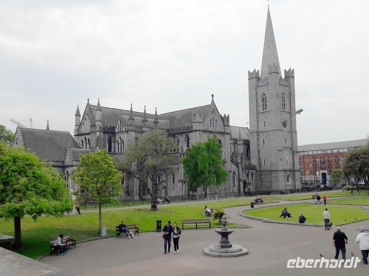 Weil unser Flug erst am Nachmittag geht, haben wir Zeit, uns noch ein paar Dinge anzuschauen, welche gestern wegen der rush hour auf der Stadtrundfahrt etwas kurz zu gekommen sind. Einige, die schon einmal hier waren machen sich individuell auf den Weg. Den Anderen zeige ich das Gelände vom Trinity Collage, der berühmten Universität Dublins. Seit diesem Jahr sind hier Führungen mit lokalen Stadtführern und überhaupt jede Erklärung vor einer Gruppe untersagt. Es gibt nur noch Führungen von Guides der Uni selbst, die man extra kaufen muss. Man sagt, es wurden einfach zu viele Touristen auf dem Gelände. So spazieren wir „individuell". Unser Weg fürht uns weiter durch die Haupteinkaufsmeile Grafton Street und das ehemalige Stadthaus der Familie Powerscourt und den George Market. Weiter begeben wir uns über das Gelände von Dublin Castle mit dem alten Burgturm aus normannischer Zeit, sowie in die Cityhall, die im 18. Jh. als Dubliner Börse errichtet wurde. Nach dem Besuch der Christchurch Kathedrale lassen wir uns zunächst einen Kaffee schmecken und statten danach noch der St. Patricks Kathedrale einen Besuch ab. Wieder am Hotel angekommen, läßt unser Transfer zum Flughafen nicht lange auf sich warten und mit etwas Rückenwind sind wir auch sehr pünktlich in Berlin.Unsere gemeinsame Reise war mit so vielen Eindrücken gespickt, dass mancher am letzten Tag gar nicht mehr genau wusste, was wir am 3. oder 7. Tag alles gesehen haben.. Oft abseits der „normalen" Touristenrouten erblickten wir die unterschiedlichsten Landschaften, trafen auf die Herzlichkeit der Einwohner, hatten Regen, Nebel und Sonnenschein, mächtige Mahlzeiten, sanfte Sandstrände und wildeste Klippen, baumlose Höhen und blumenübersäte Parks. Ich bedanke mich bei allen Gästen für die überaus nette Atmosphäre was die Reise noch mehr zu einem unvergesslichen Erlebnis macht.