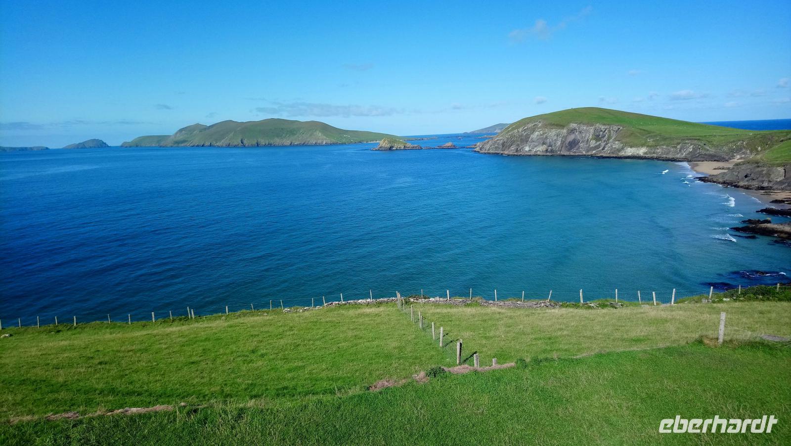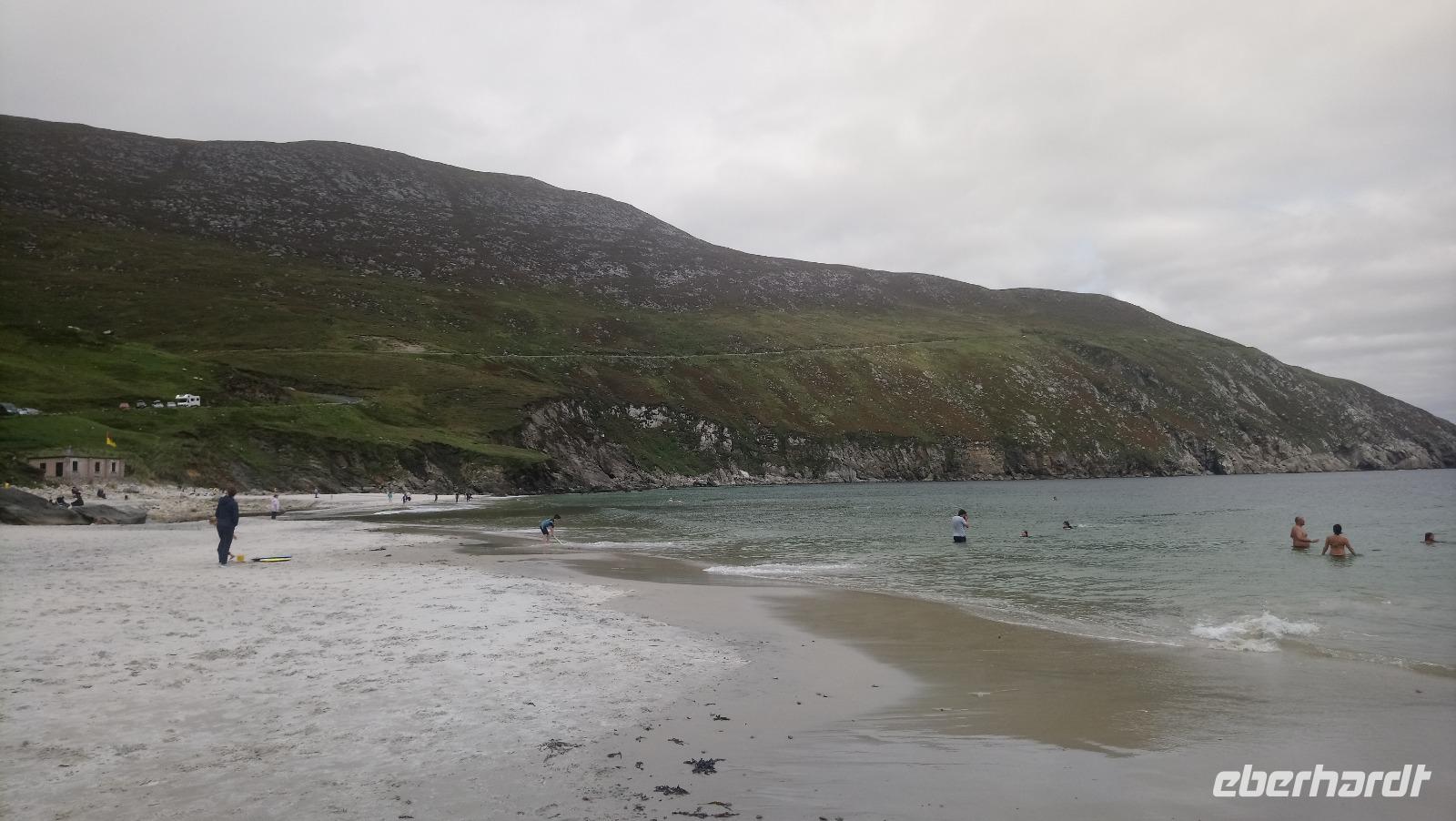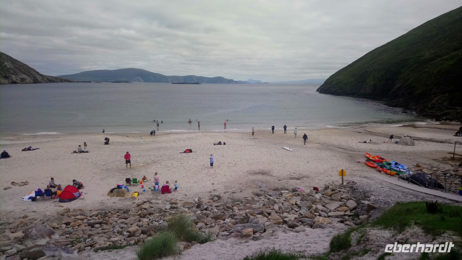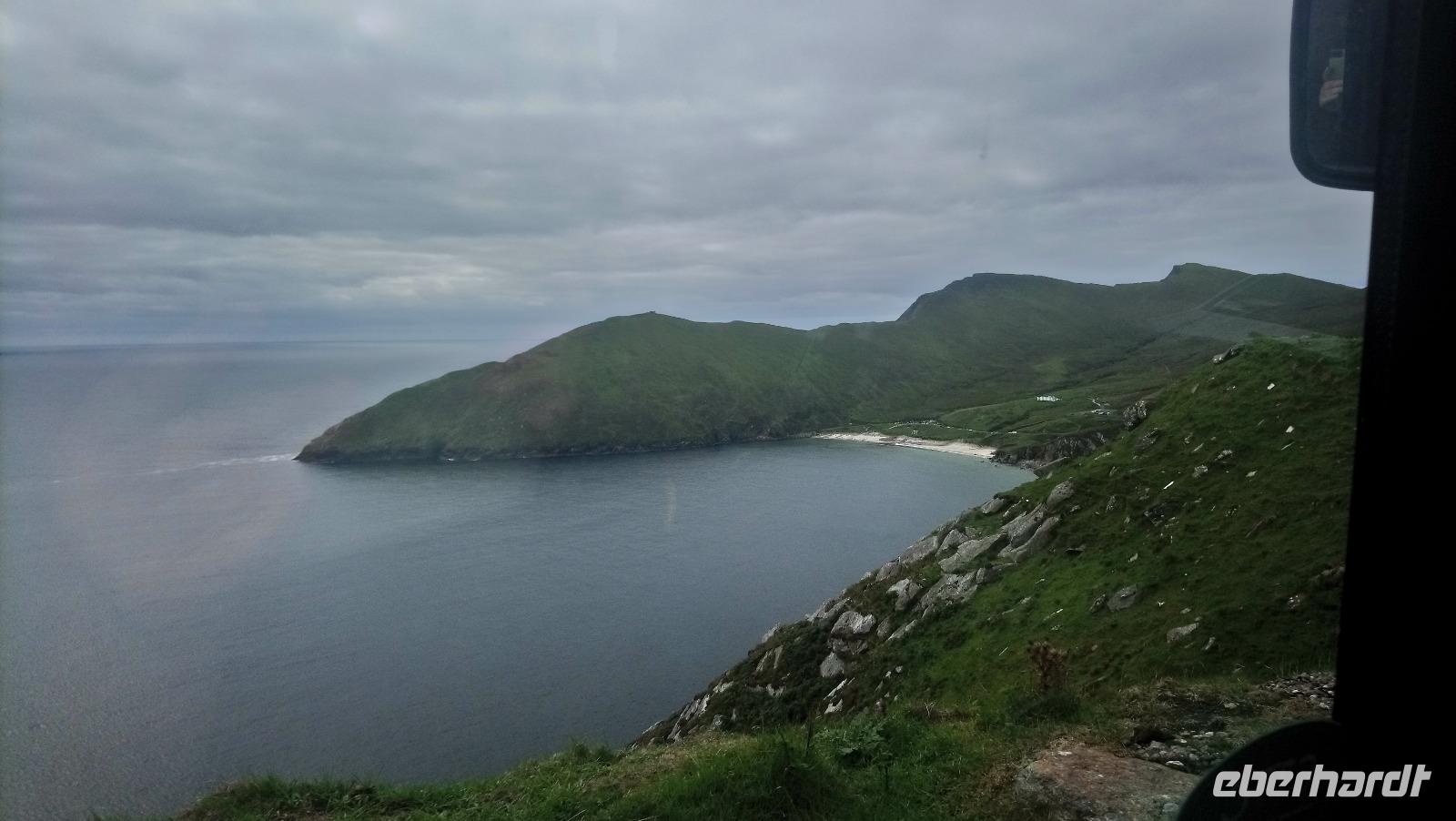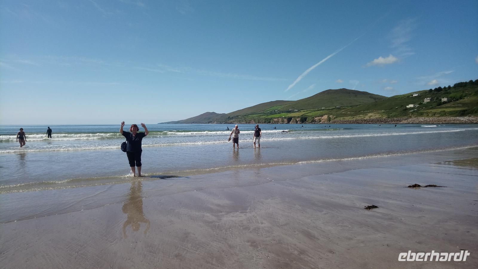 Nach dem reichhaltigen irischen Frühstück steht der Besuch von Downpatrick Head auf dem Programm. Fast verschämt schaut die Sonne hervor und garantiert klasse Fotos in einer immergrünen Landschaft. Weiter geht es mit dem Bus zu Ceide Fields. Eine informative Ausstellung gab uns einen Überblick über die bedeutenden archäologischen Fundplätze an diesem Ort. Am frühen Nachmittag treffen wir am sonnigen Keel beach auf Achill Islands ein. Hier bleibt Zeit für einen Spaziergang und Lunch. Am Keem Beach freuen wir uns über bademutige und knipsen selber nur Erinneungsfotos. das ehemalige Ferienhaus von Heinrich Böll tangieren wir bei unserer Rundfahrt auf Achill. Kurz vor unserem Hotel bewundern wir den killary harbour. Mit einem ausgezeichneten Dinner beschließen wir den Tag im Traditionshotel in Leenane.