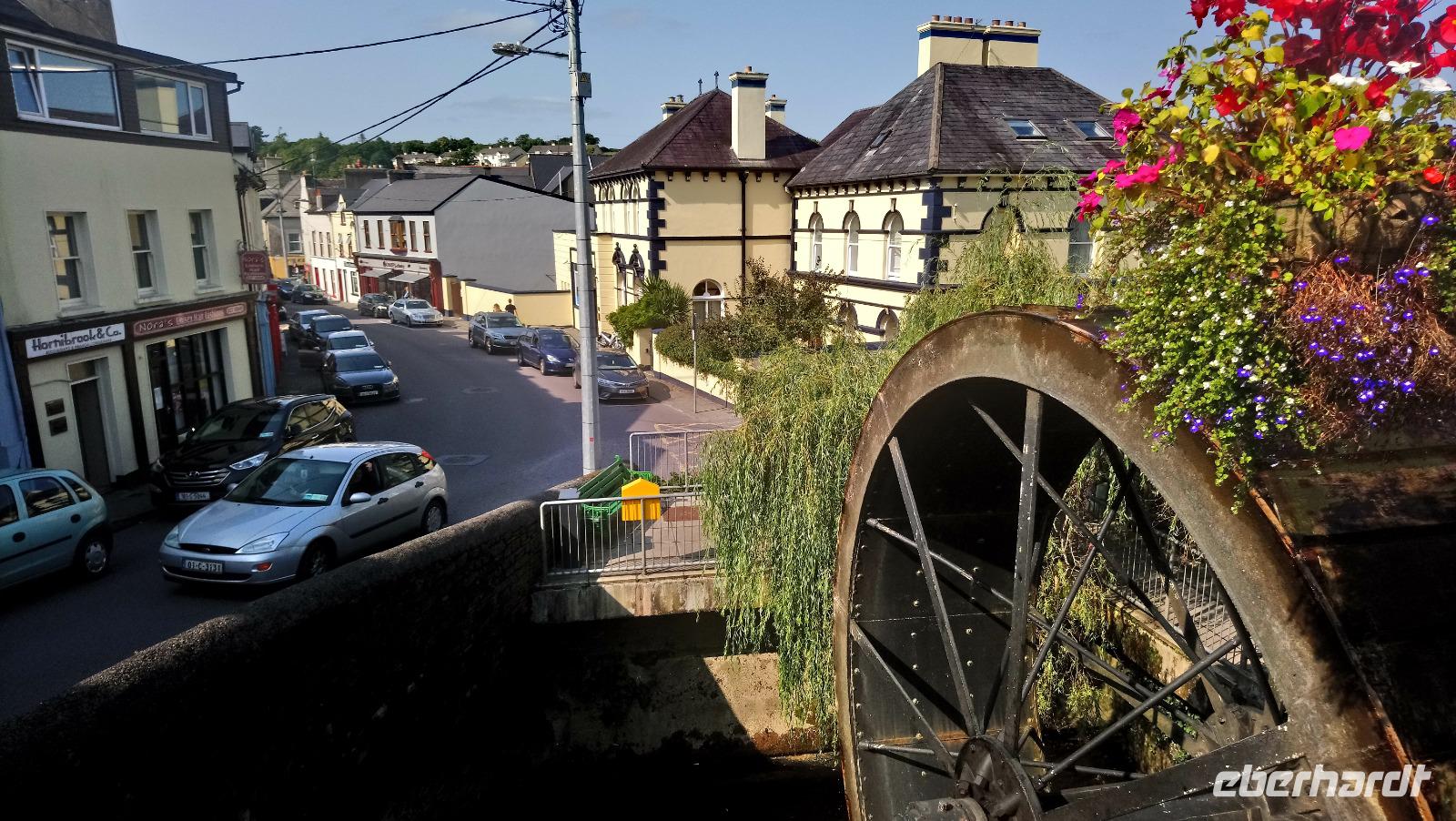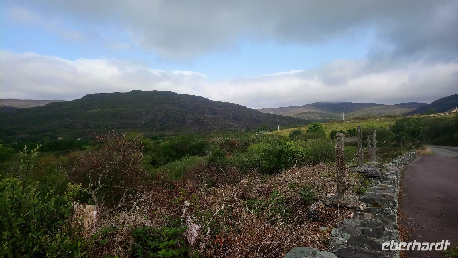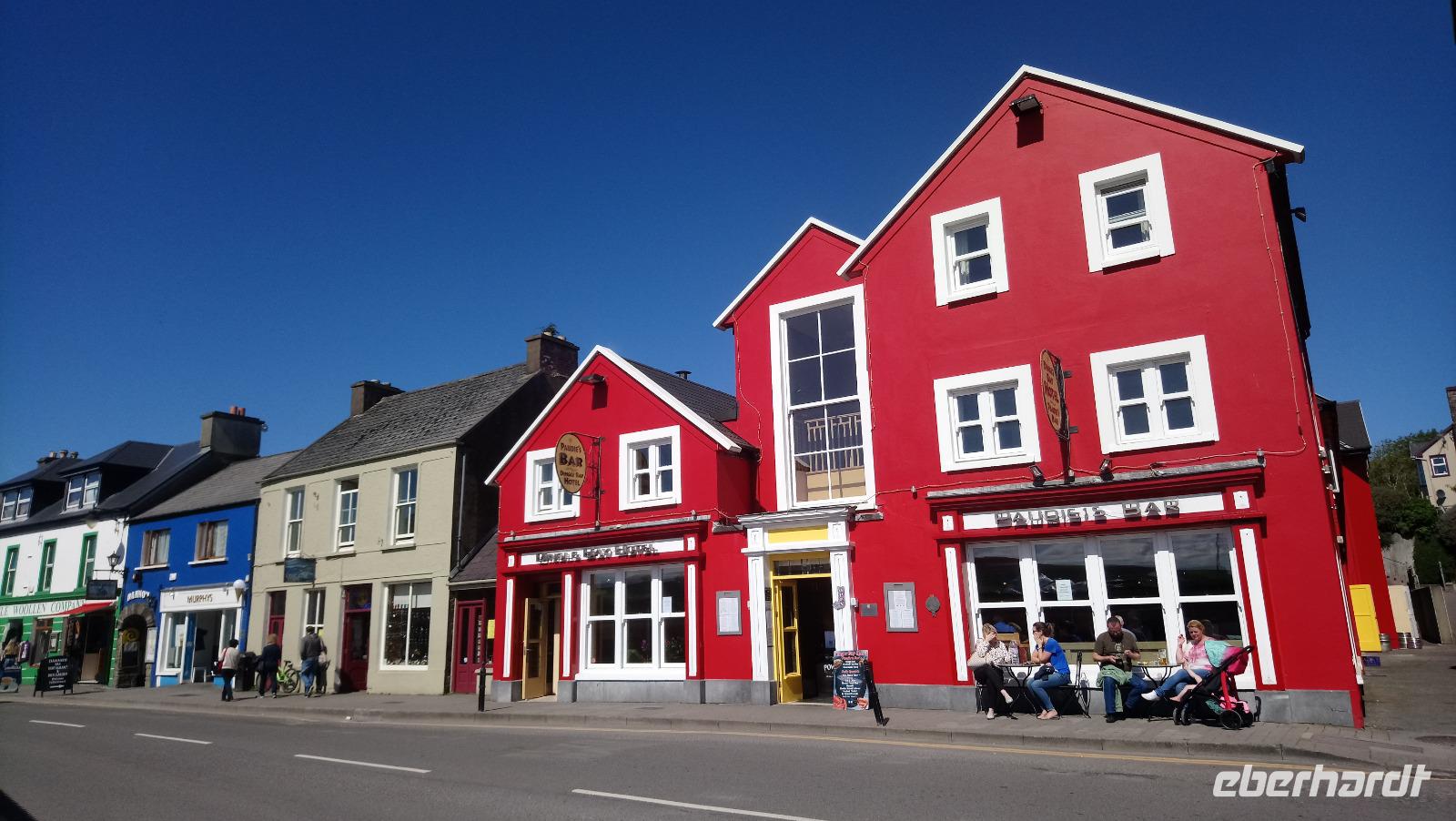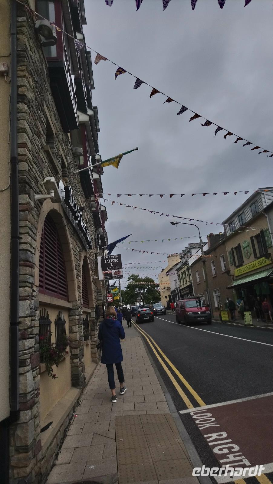 Ein Blick vom Geokaunt Mountain verschafft die perfekte Übersicht über Valentia Island. Etwas mehr Sonne würde dem Farbenspiel auf unseren Bildern sehr gut tun. Eine kleine Manufaktur „skellig chocolade" mit Blick zu den Skelligs bringt uns vom Wege ab und verleidet uns zum Schokolade Tasting. Im Übrigen mit Erfolg, verschiedene Pralinees und Schokoladen wandern in unser Reisegepäck - vielleicht auch bis nach Hause. Weiter geht es nach Waterville, dem geliebten Urlaubsziel von Charlie Chaplin. Hier konnten wir bereits am vergangenen Abend das Charlie Chaplin Festival fotografieren. In der bunten Stadt Sneems stoppen wir für einen Spaziergang in den gepflegten Park, durch die Stadt oder bis zum nächsten Pub. Vielleicht bei dem einen oder anderen Reisenden das Gefühl, welches Charles de Gault beschrieb auf - etwas zu finden in Irland, wovon man gar nicht gewusst hat, dass man es sucht. Über den Molls Gap erreichten wir die hübsche und unterhaltsame Stadt Kenmare.