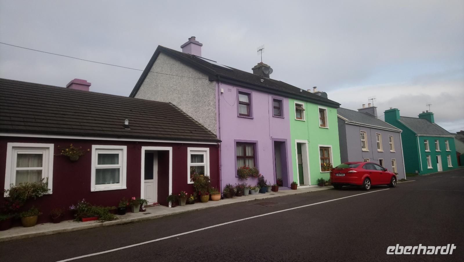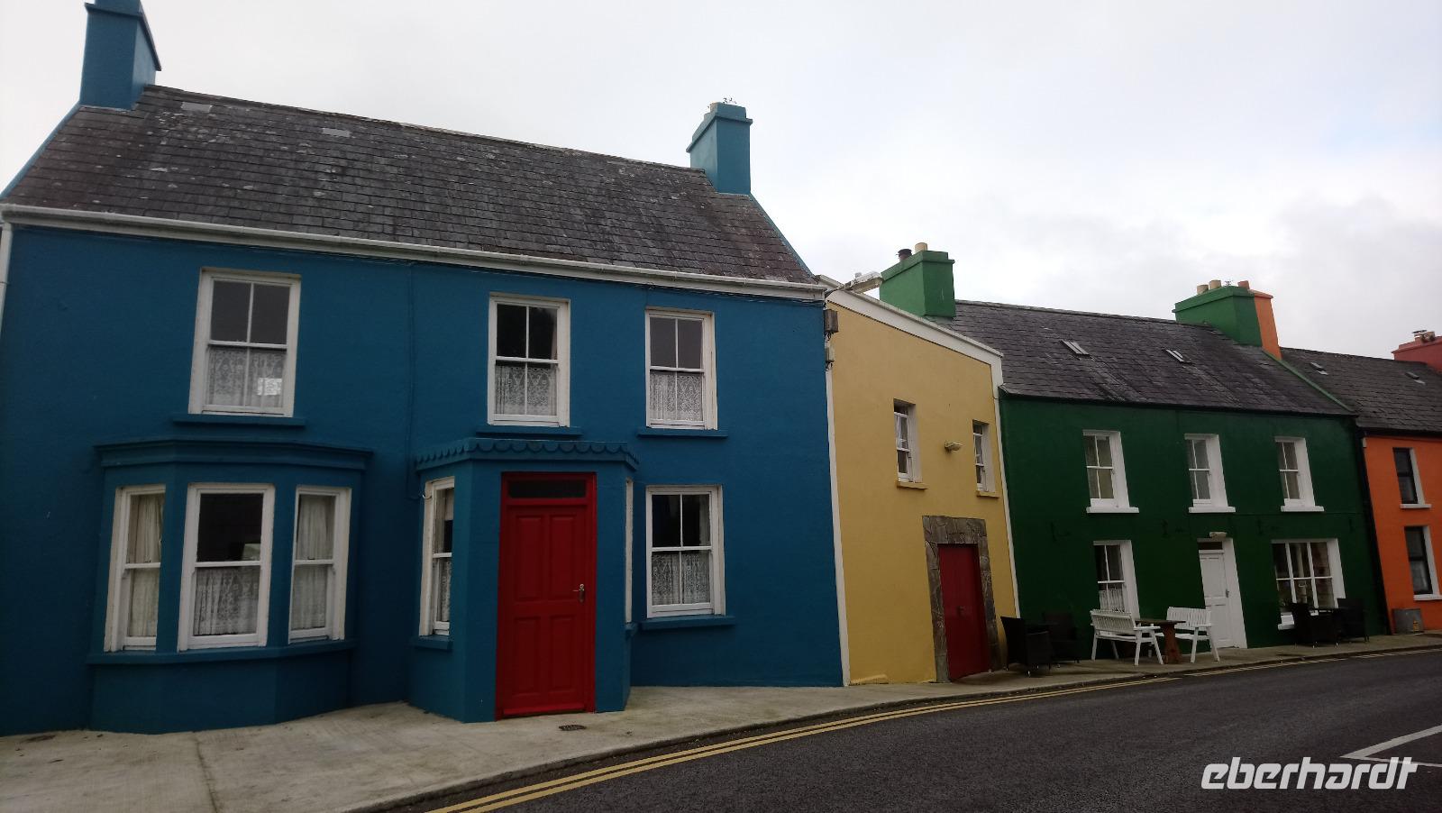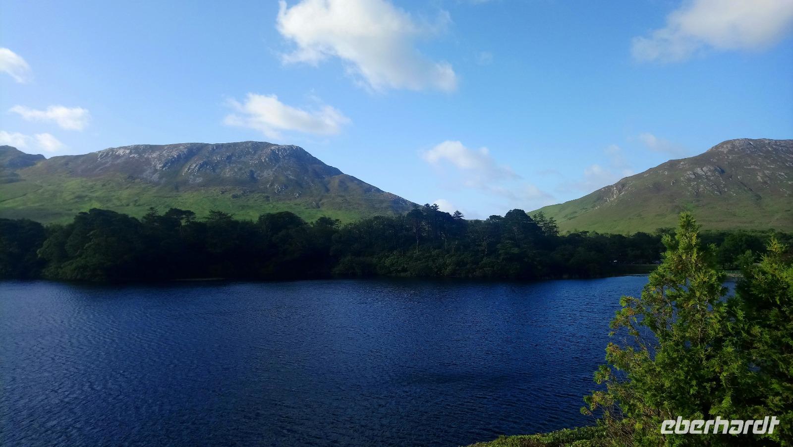 Ein Blick vom Geokaunt Mountain verschafft die perfekte Übersicht über Valentia Island. Etwas mehr Sonne würde dem Farbenspiel auf unseren Bildern sehr gut tun. Eine kleine Manufaktur „skellig chocolade" mit Blick zu den Skelligs bringt uns vom Wege ab und verleidet uns zum Schokolade Tasting. Im Übrigen mit Erfolg, verschiedene Pralinees und Schokoladen wandern in unser Reisegepäck - vielleicht auch bis nach Hause. Weiter geht es nach Waterville, dem geliebten Urlaubsziel von Charlie Chaplin. Hier konnten wir bereits am vergangenen Abend das Charlie Chaplin Festival fotografieren. In der bunten Stadt Sneems stoppen wir für einen Spaziergang in den gepflegten Park, durch die Stadt oder bis zum nächsten Pub. Vielleicht bei dem einen oder anderen Reisenden das Gefühl, welches Charles de Gault beschrieb auf - etwas zu finden in Irland, wovon man gar nicht gewusst hat, dass man es sucht. Über den Molls Gap erreichten wir die hübsche und unterhaltsame Stadt Kenmare.