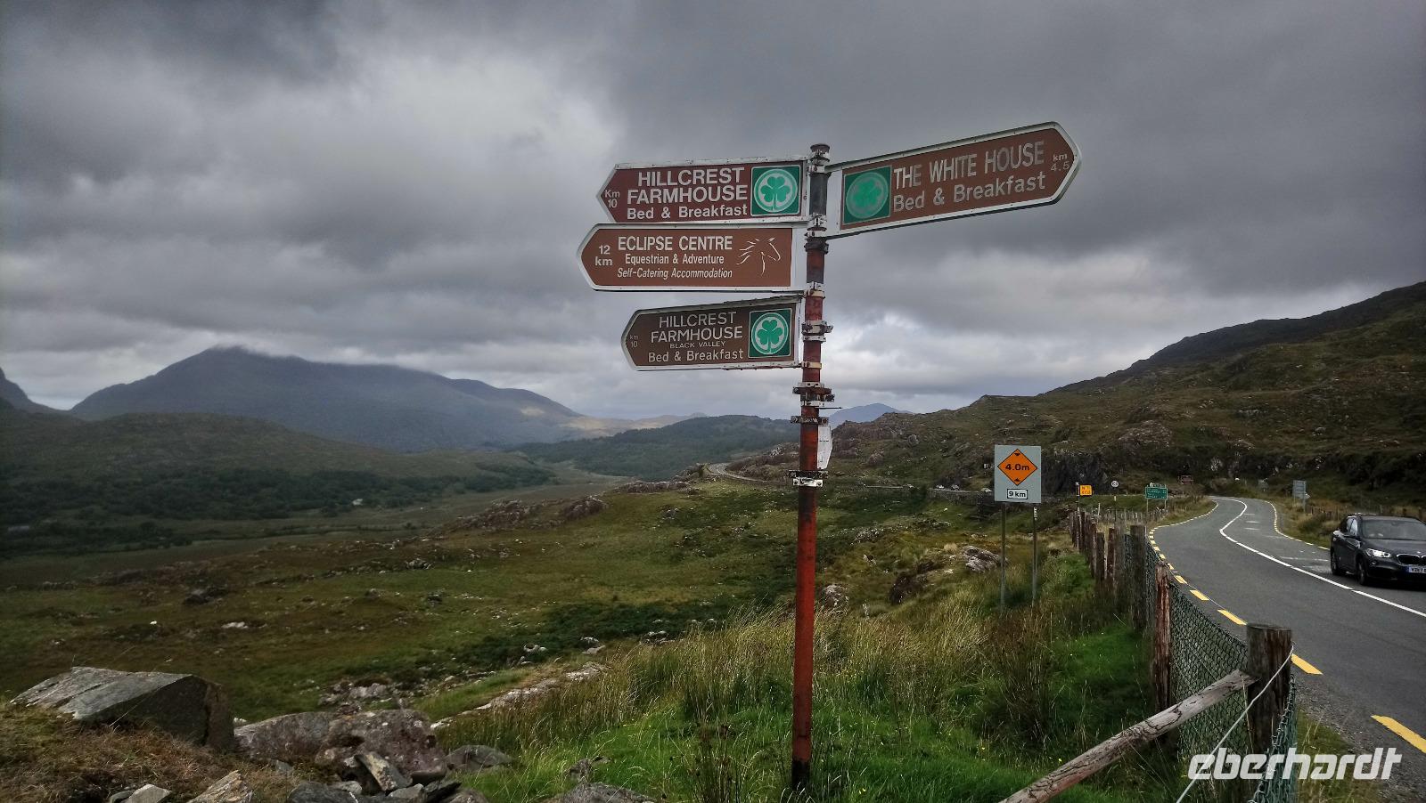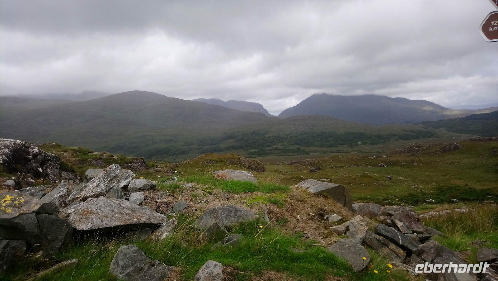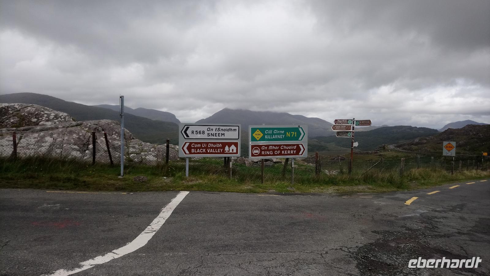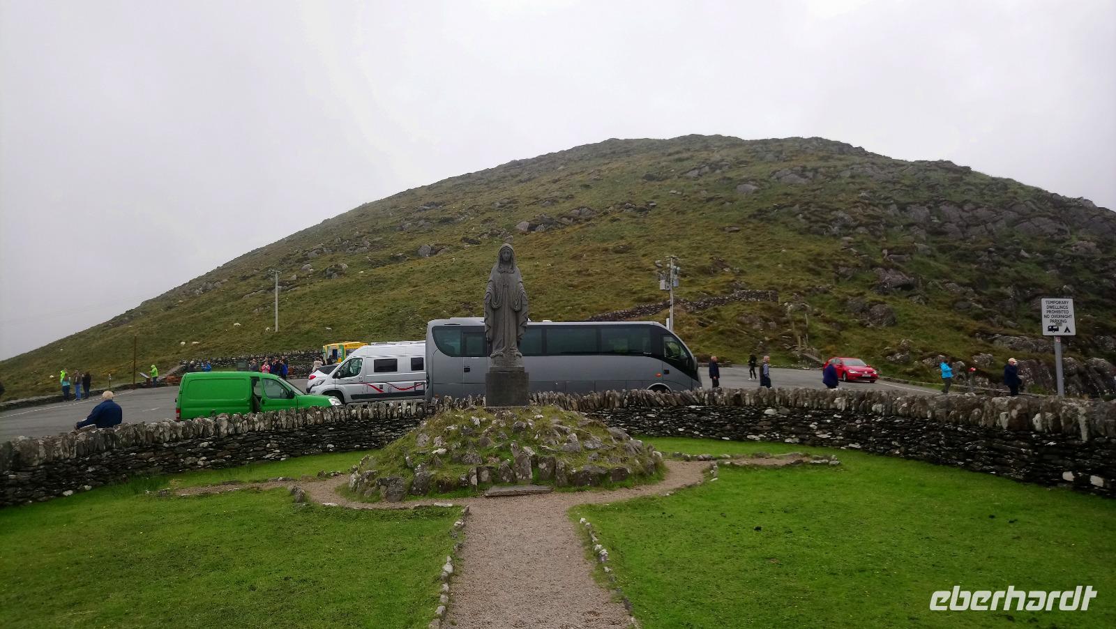 Ein Blick vom Geokaunt Mountain verschafft die perfekte Übersicht über Valentia Island. Etwas mehr Sonne würde dem Farbenspiel auf unseren Bildern sehr gut tun. Eine kleine Manufaktur „skellig chocolade" mit Blick zu den Skelligs bringt uns vom Wege ab und verleidet uns zum Schokolade Tasting. Im Übrigen mit Erfolg, verschiedene Pralinees und Schokoladen wandern in unser Reisegepäck - vielleicht auch bis nach Hause. Weiter geht es nach Waterville, dem geliebten Urlaubsziel von Charlie Chaplin. Hier konnten wir bereits am vergangenen Abend das Charlie Chaplin Festival fotografieren. In der bunten Stadt Sneems stoppen wir für einen Spaziergang in den gepflegten Park, durch die Stadt oder bis zum nächsten Pub. Vielleicht bei dem einen oder anderen Reisenden das Gefühl, welches Charles de Gault beschrieb auf - etwas zu finden in Irland, wovon man gar nicht gewusst hat, dass man es sucht. Über den Molls Gap erreichten wir die hübsche und unterhaltsame Stadt Kenmare.