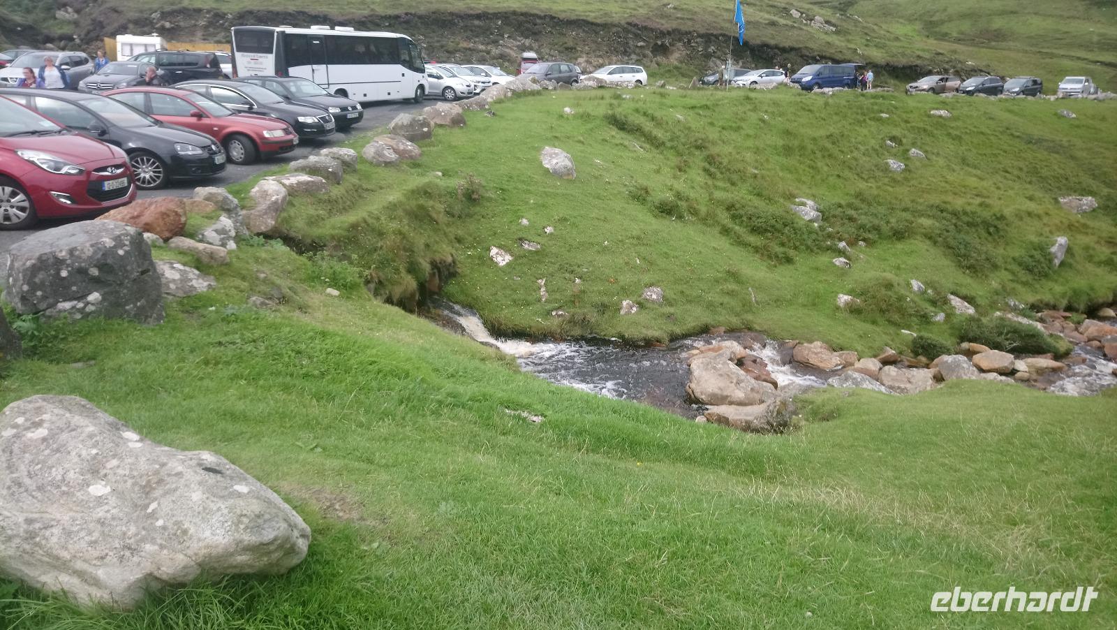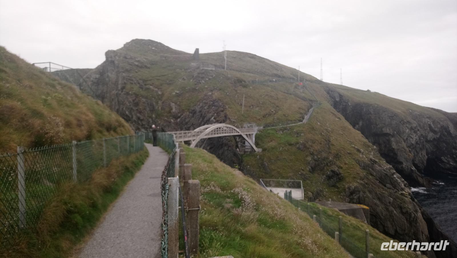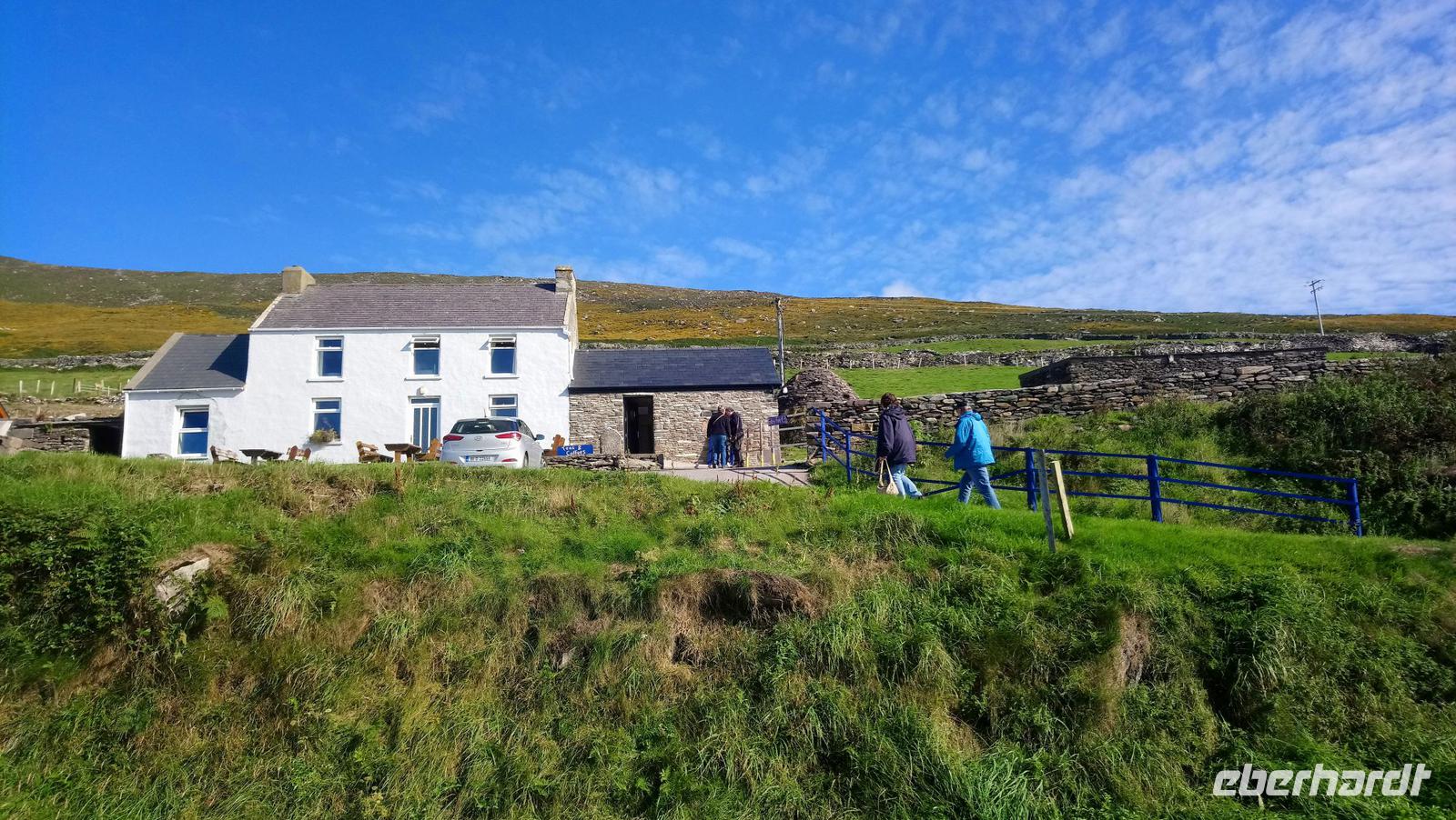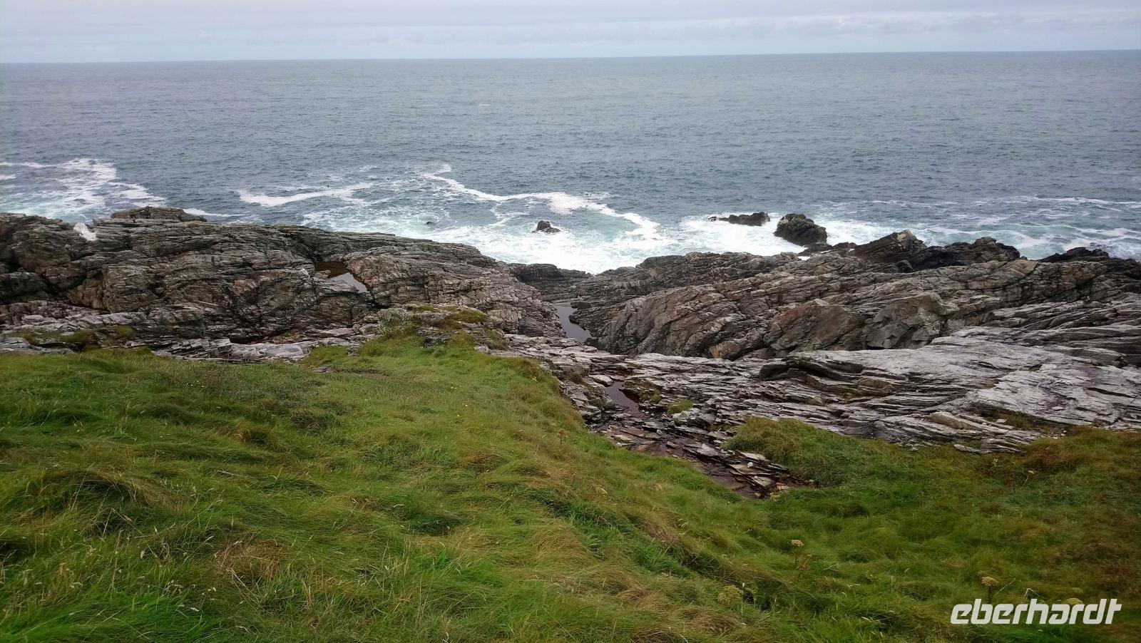 Bei angenehmen Temperaturen spazieren wir zum kraftvollen Glenevin Wasserfall und atmen die frische irische Luft ein. Das Schauspiel ist grandios, da es die Tage vorher stark geregnet hat. Nach nur einer Fahrstunde erreichen wir Doagh Famine Village. Ein Freilichtmuseum, welches uns mit der Geschichte der großen Hungersnot in Irland vertraut macht. Im dazugehörigen Cafe werden wir mit Tee und Scones überrascht.Malin Head, der nördlichste Punkt Irlands empfängt uns sanft - kein tosen, kein Sturm. Der Weg zum Höllentor ist ein wunderbares Erlebnis und viele Erinnerungsfotos werden geschossen. Auch auf dem Steinfort Griannan of Aileach bläst kaum ein Lüftchen. Der Ausblick ist dafür echt spektakulär, auch wenn wir uns den Platz mit anderen Reisenden teilen müssen.
