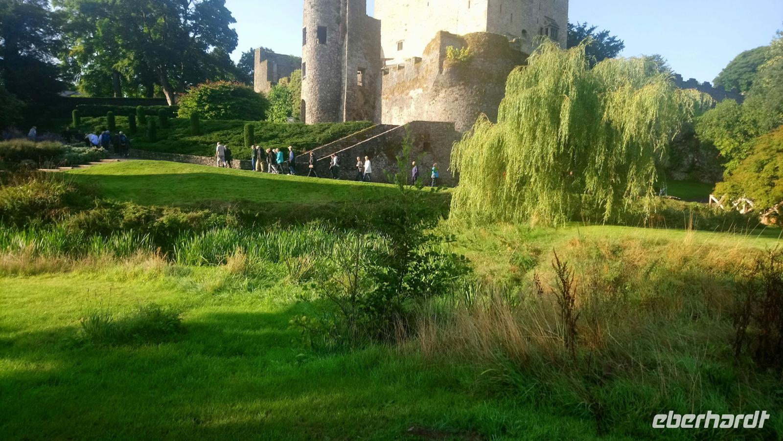 Nach dem Frühstück spzieren wir zum nahe gelegenen Castle und garden Blarney. Bei strahlendem Sonnenschein erscheinen die Farben der Pflanzen in dem Garten noch intensiver. Neben Wunschtreppen und Steinkreisen gilt es auch einen giftgarten zu entdecken. Einige Gäste nutzen die Möglichkeit mit dem berühmten „Kussstein" von Blarney Bekanntschaft zu schließen.