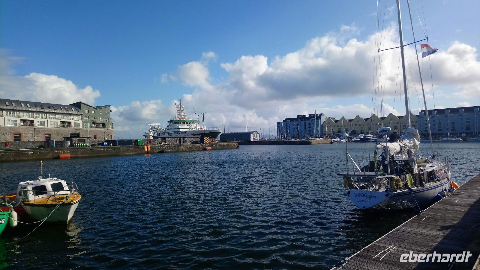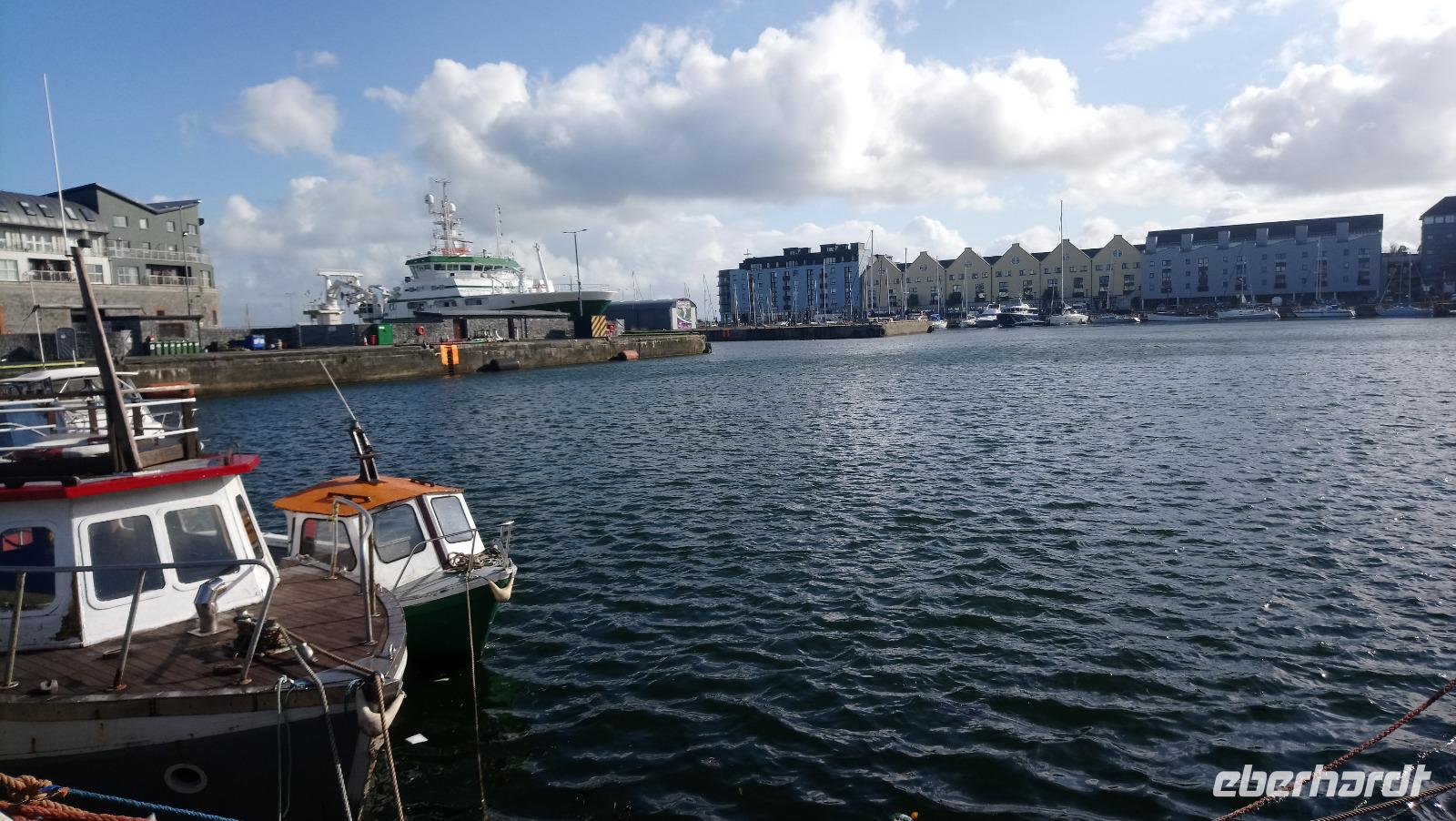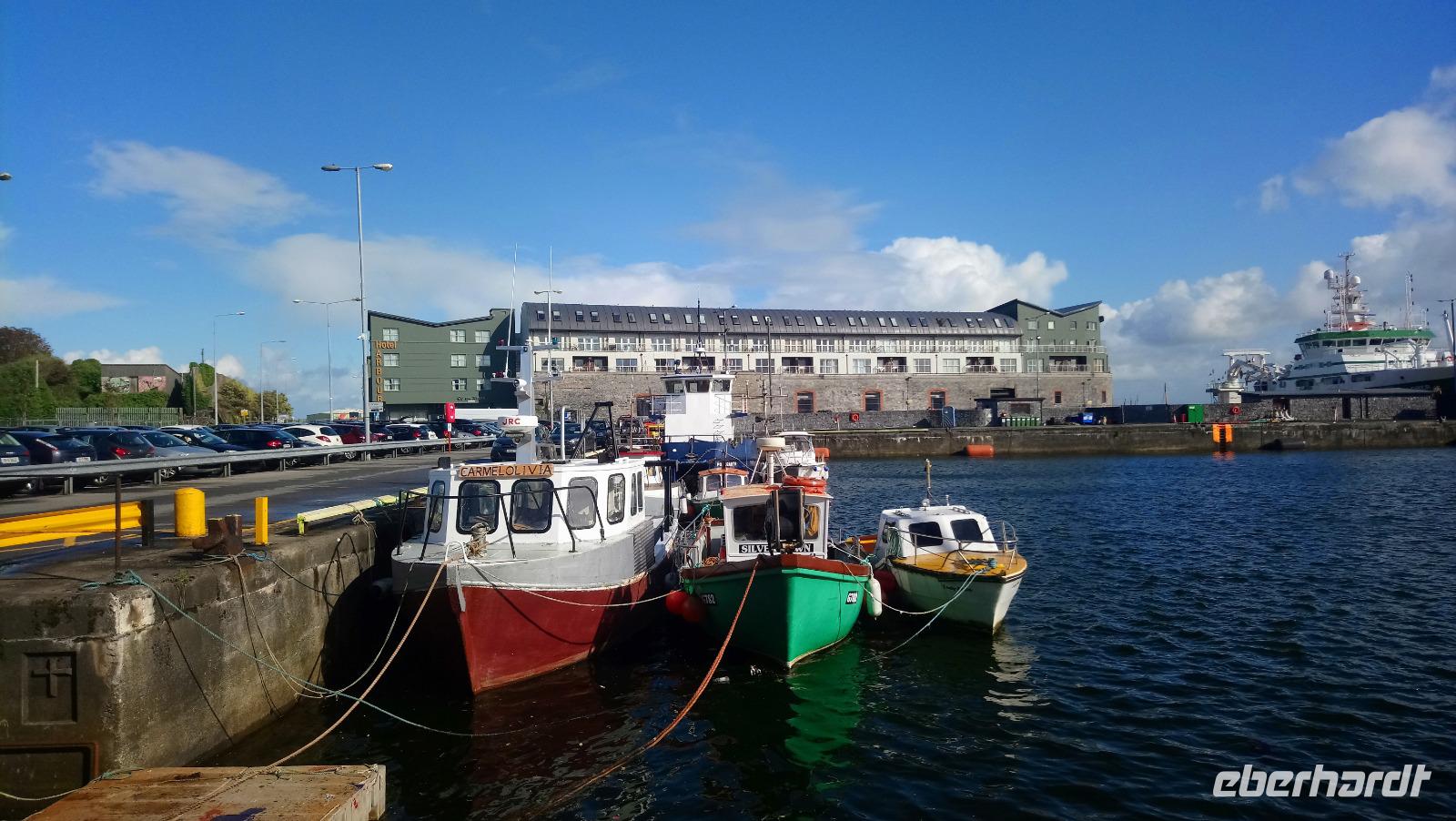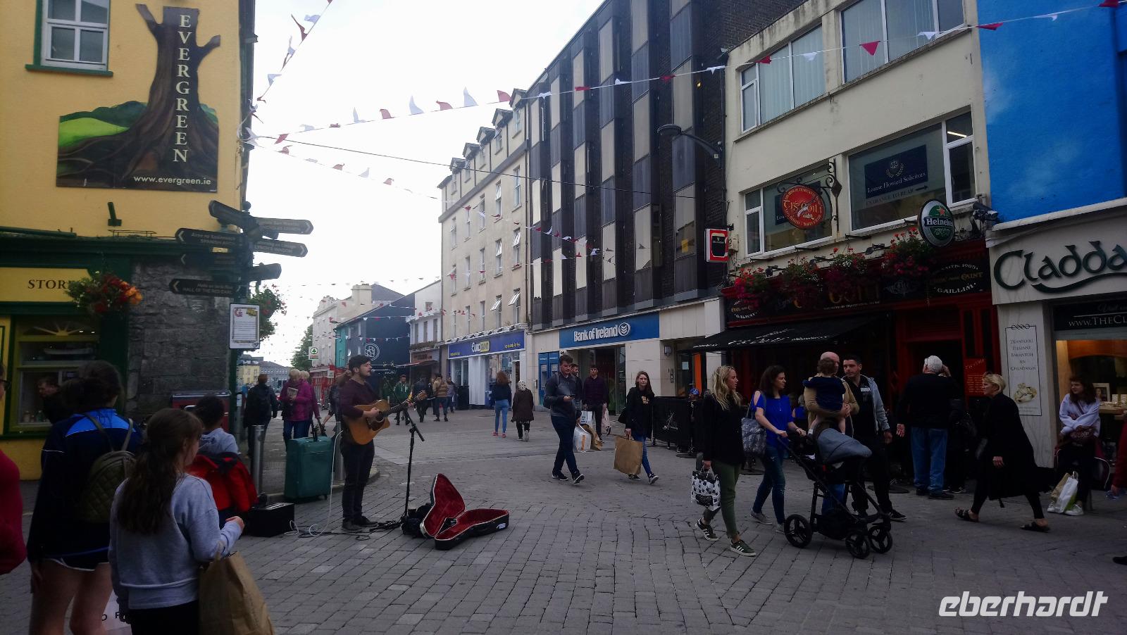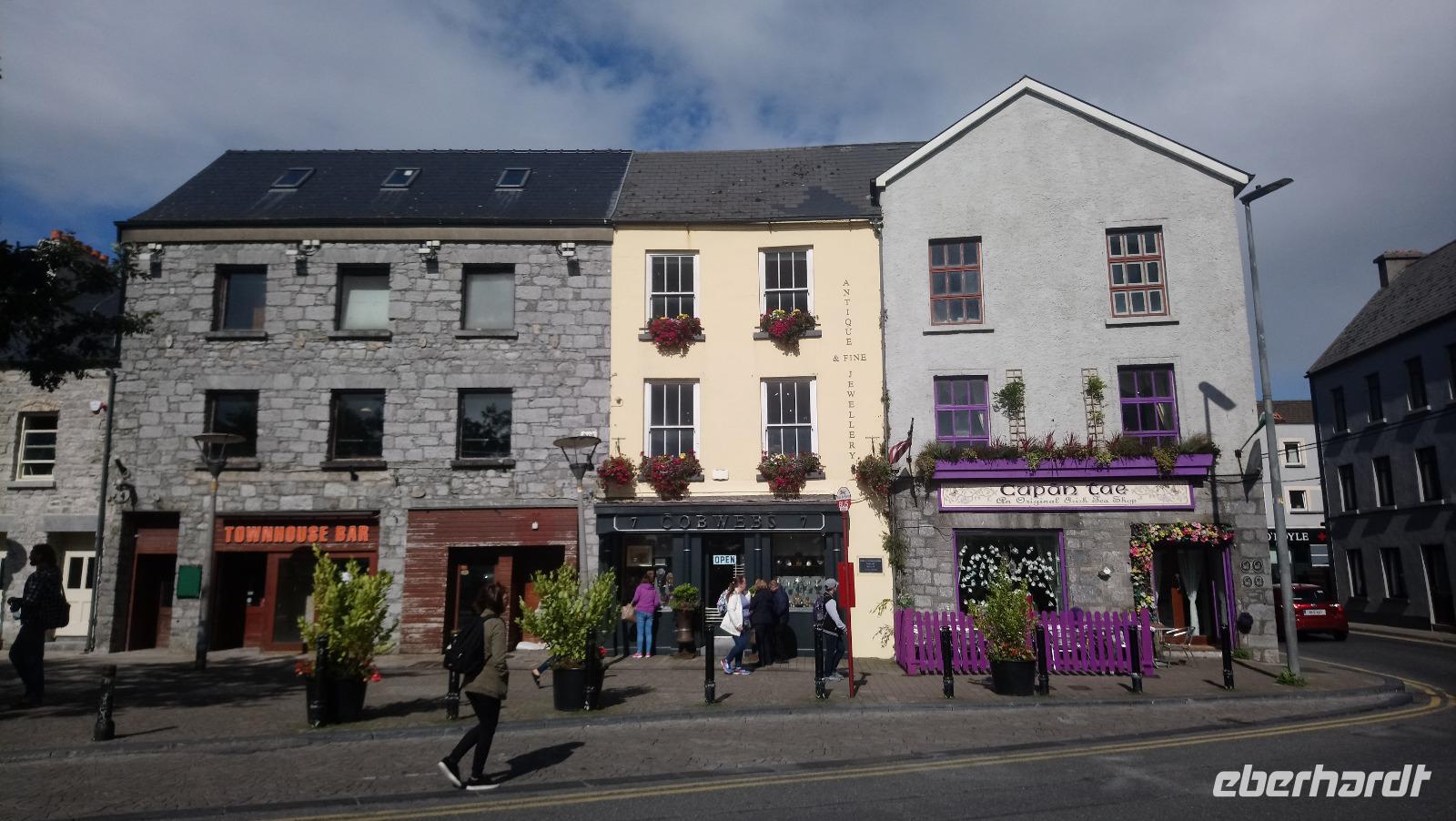 Die fröhliche Universitätsstadt Galway - geschäftig und bunt geht es in der Fußgängerzone zu - ist der grasse Gegensatz zur Weite der Connemara Landschaft. Irisches wetter begleitet unseren Stadtspaziergang. Unser modernes Hotel für die Nacht befindet sich an den neuen Docks. Nach dem guten Abendmenü bleibt Zeit für einen Pub Bummel.