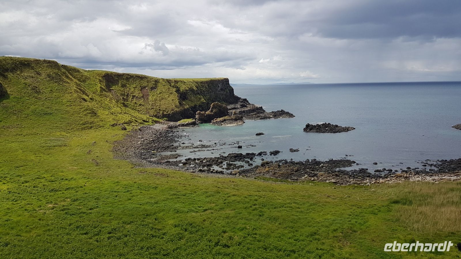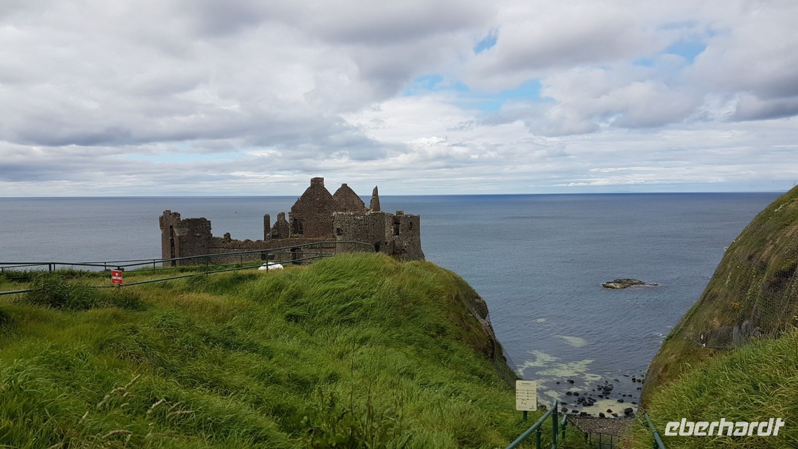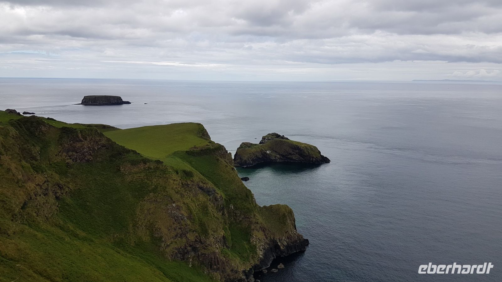 Am Morgen verließen wir Belfast und schon nach kurzer Fahrt stoppte unser Bus für ein paar schöne Fotos vom Castle in Carrickfergus, das sich an einem kleinen Hafen befindet. Danach begann unsere herrliche Fahrt entlang der Antrim Coast Road. Das ist eine Küstenstraße, die uns an Sandstränden, Klippen und vom Meer umtosten Felsen entlang führt. Immer wieder hielten wir an und fotografierten die beeindruckende Szenerie. Von einem Aussichtspunkt über den Klippen sahen wir die Carrick-a-Rede Seilbrücke, Rathlin Island und in der Ferne die ersten Ausläufer Schottlands.