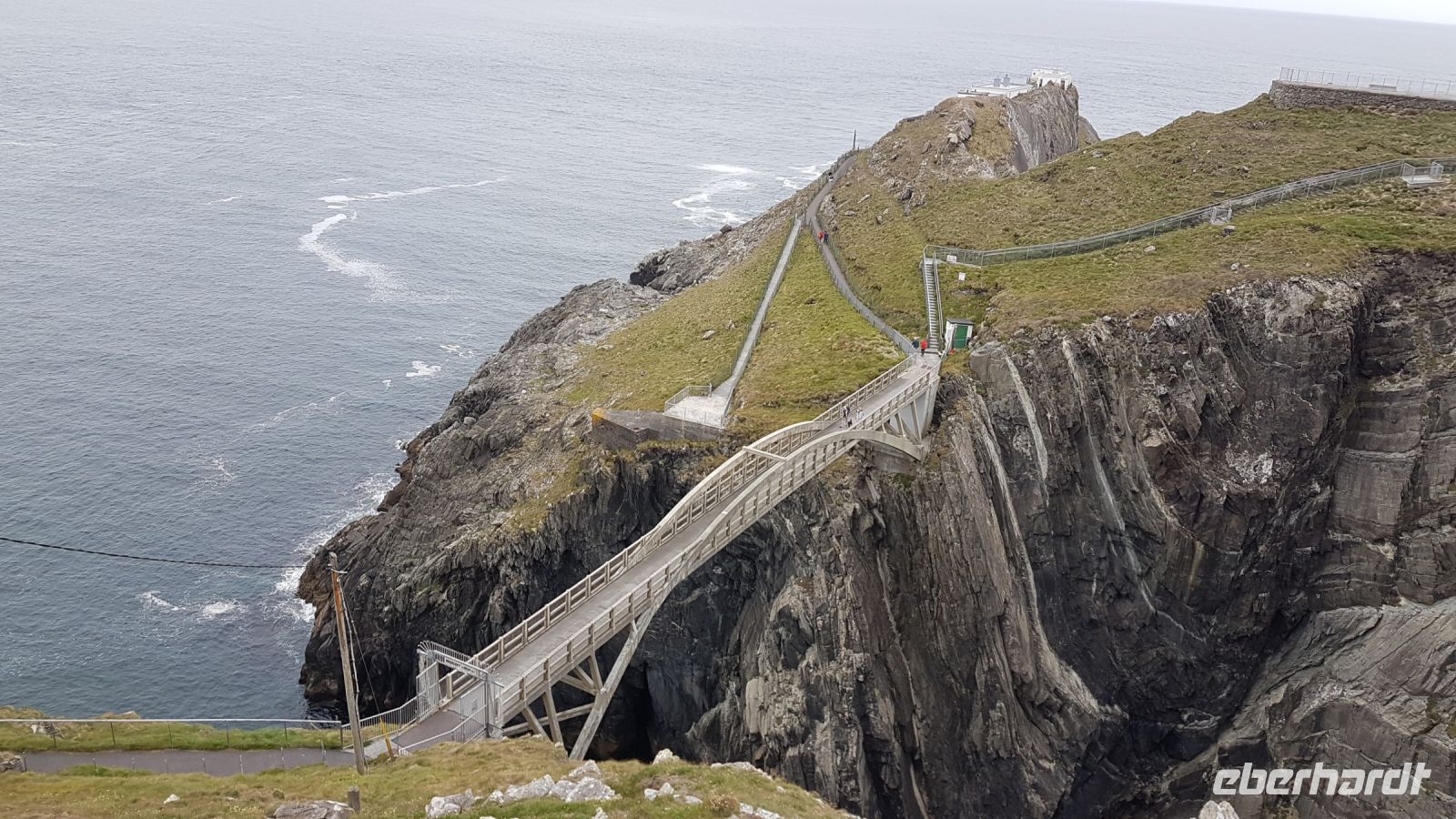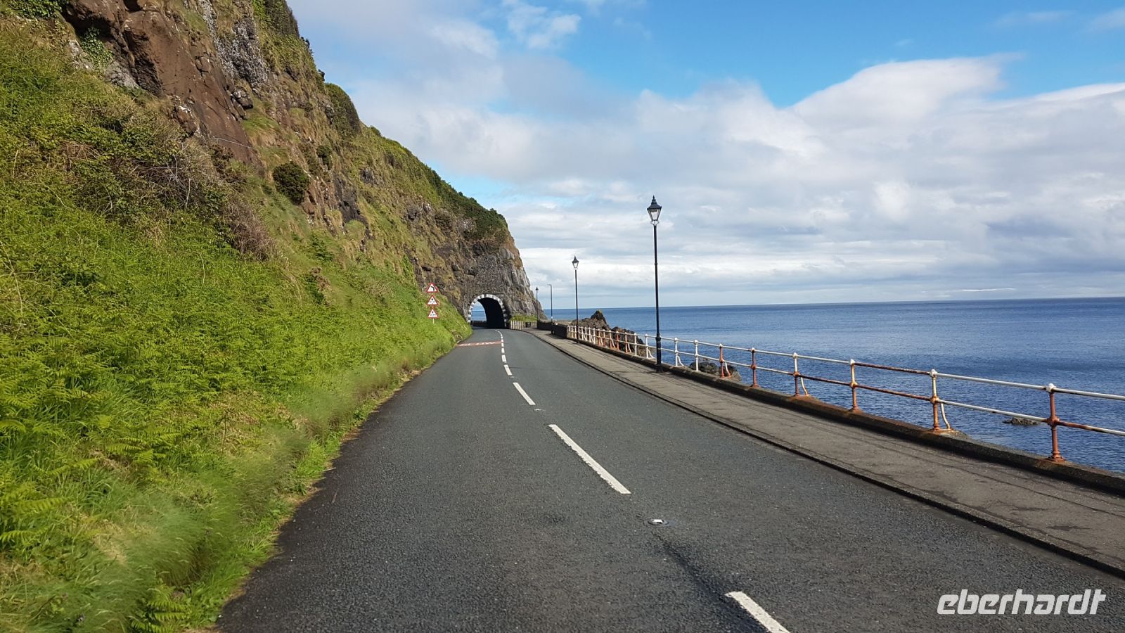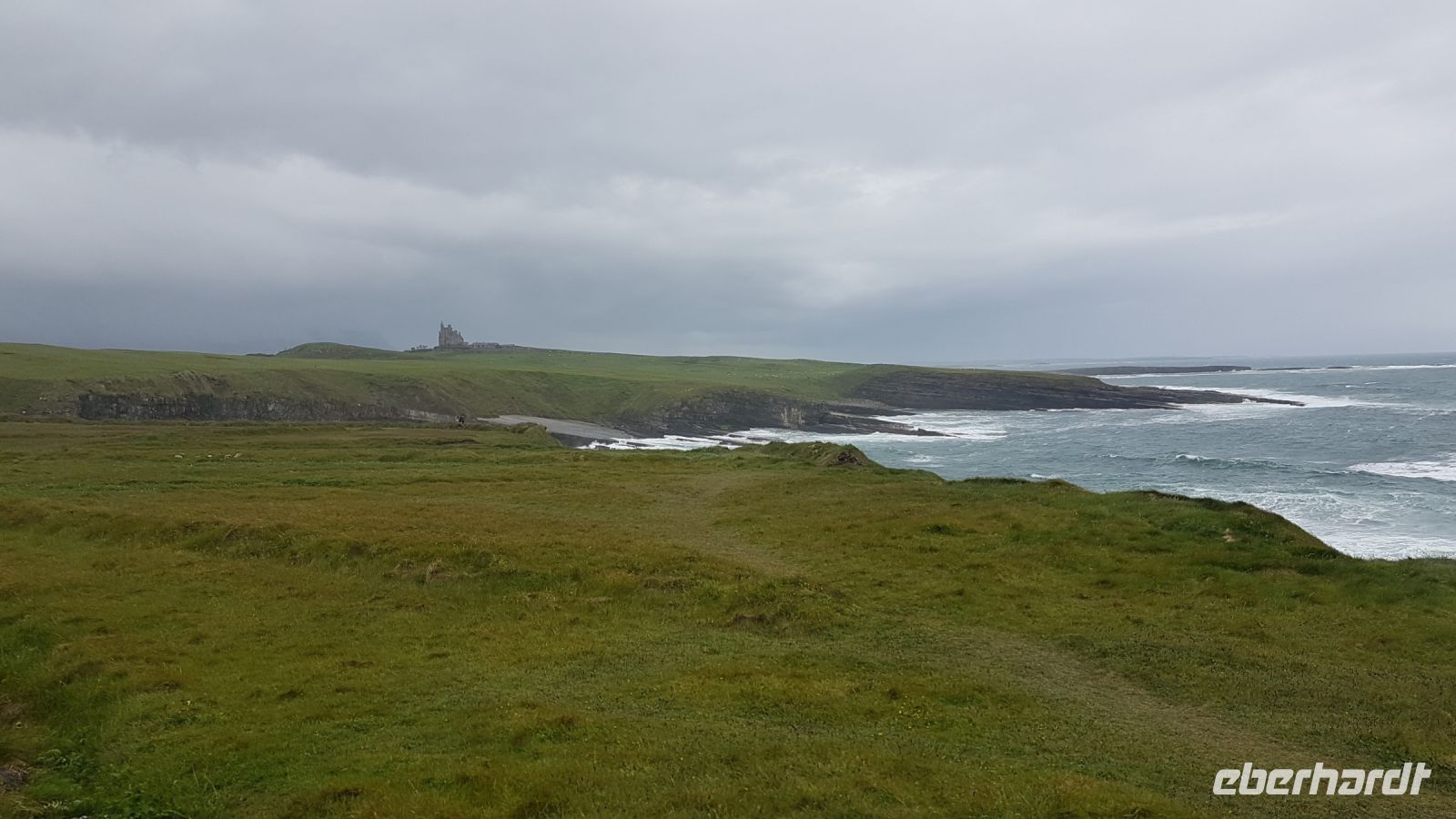 Am Morgen verließen wir Belfast und schon nach kurzer Fahrt stoppte unser Bus für ein paar schöne Fotos vom Castle in Carrickfergus, das sich an einem kleinen Hafen befindet. Danach begann unsere herrliche Fahrt entlang der Antrim Coast Road. Das ist eine Küstenstraße, die uns an Sandstränden, Klippen und vom Meer umtosten Felsen entlang führt. Immer wieder hielten wir an und fotografierten die beeindruckende Szenerie. Von einem Aussichtspunkt über den Klippen sahen wir die Carrick-a-Rede Seilbrücke, Rathlin Island und in der Ferne die ersten Ausläufer Schottlands.