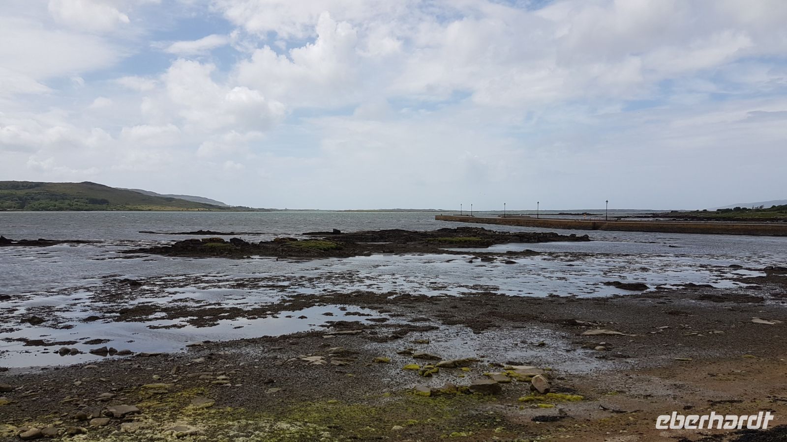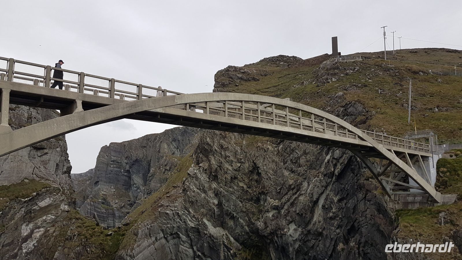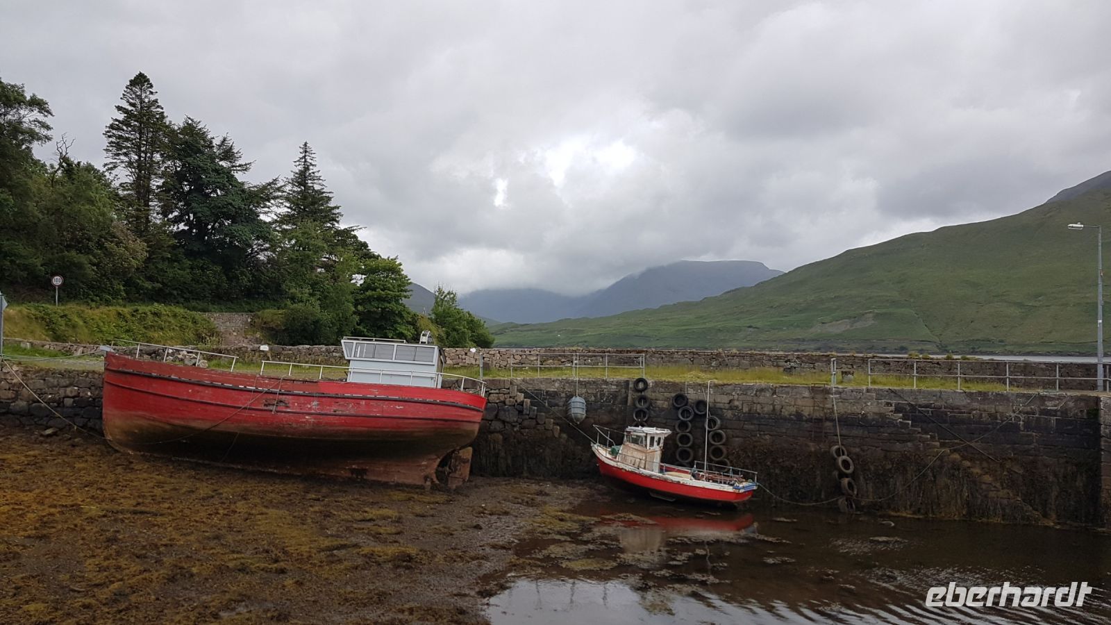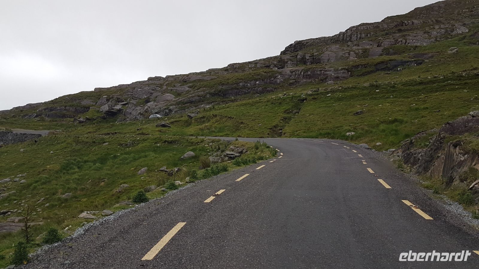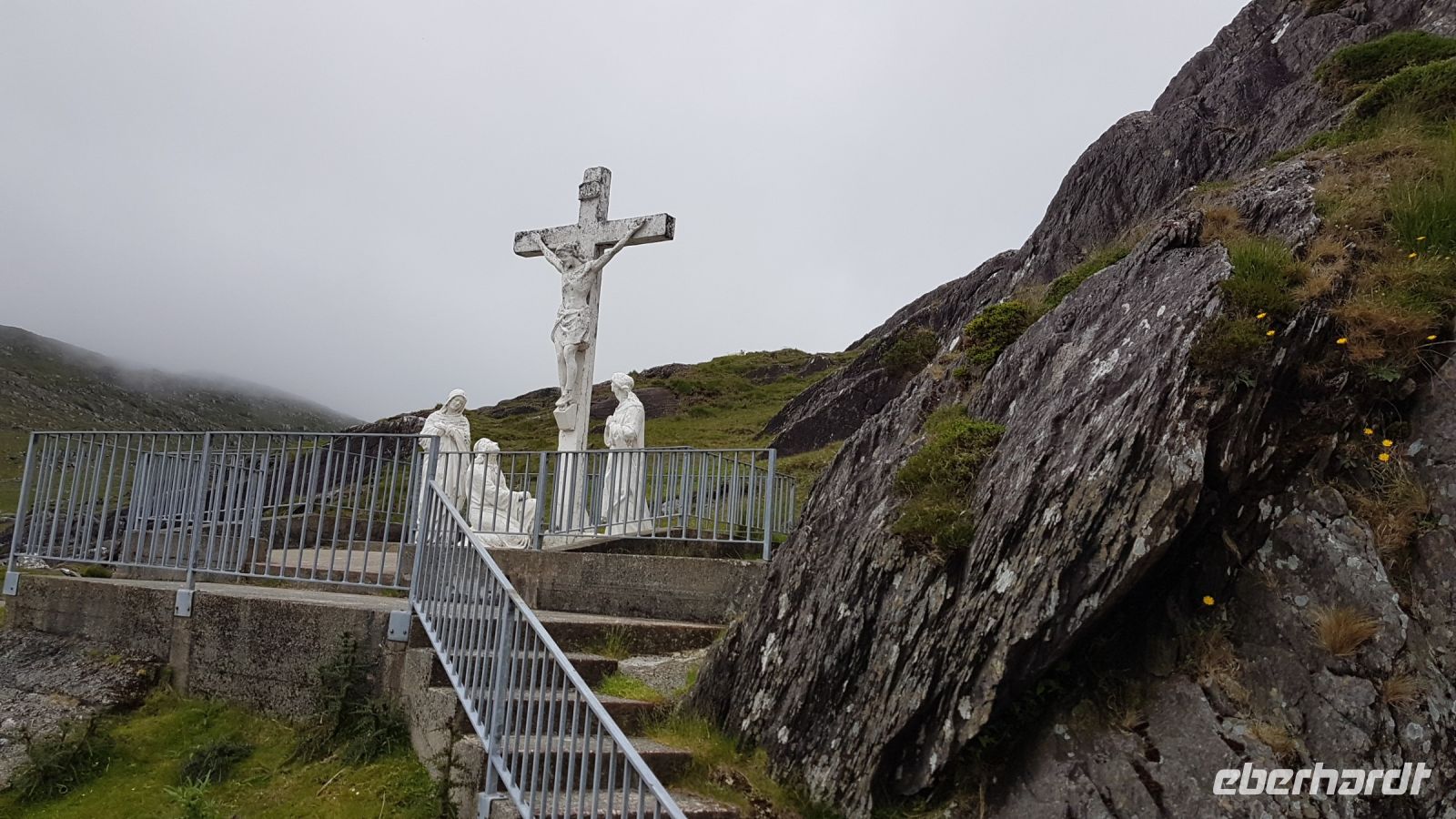 Nach kurzer Fahrt erreichten wir den höchsten Berg im County Donegal, den Mount Errigal mit 572 m Höhe. An seinem Fuß hielt unser Bus an und wir fotografierten einen idyllisch unter uns liegenden See mit kleiner Kirchenruine an seinem Ausläufer. Am Bunbeg Beach hielten wir wieder an und spazierten bei heftigem Wind – aber mit Sonnenschein - über den breiten Sandstrand zu einem alten Schiffswrack namens Bad Eddy, es entstanden beeindruckende Fotos.