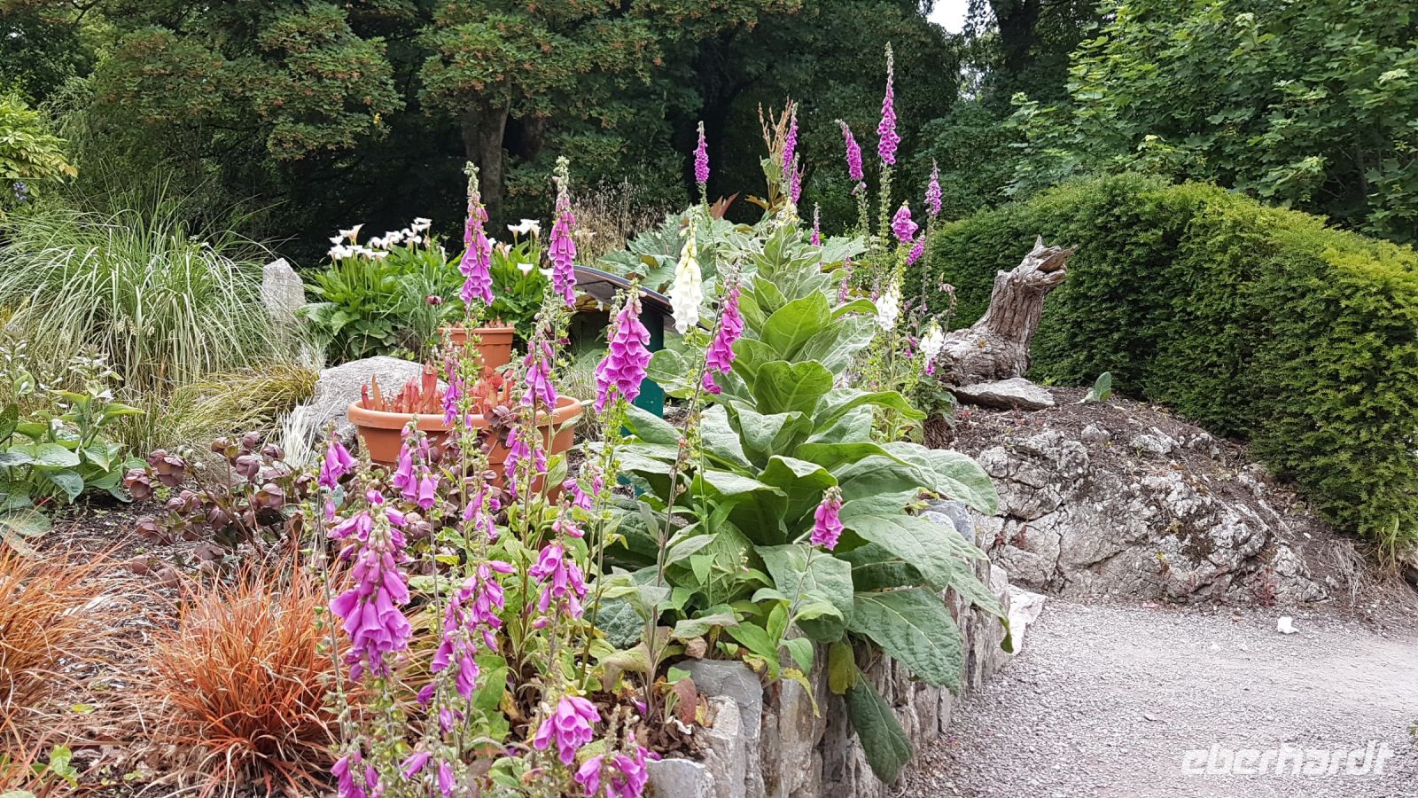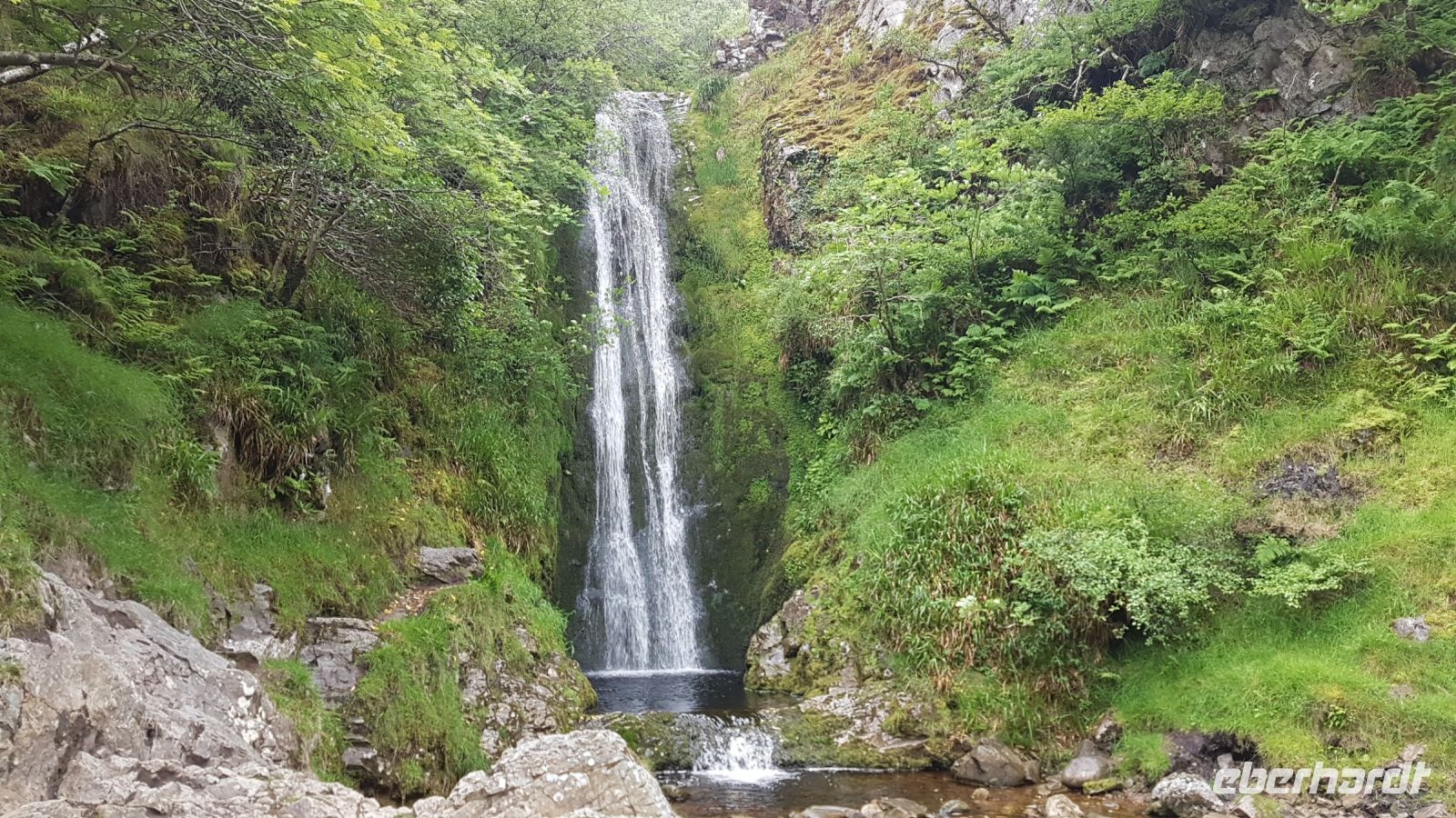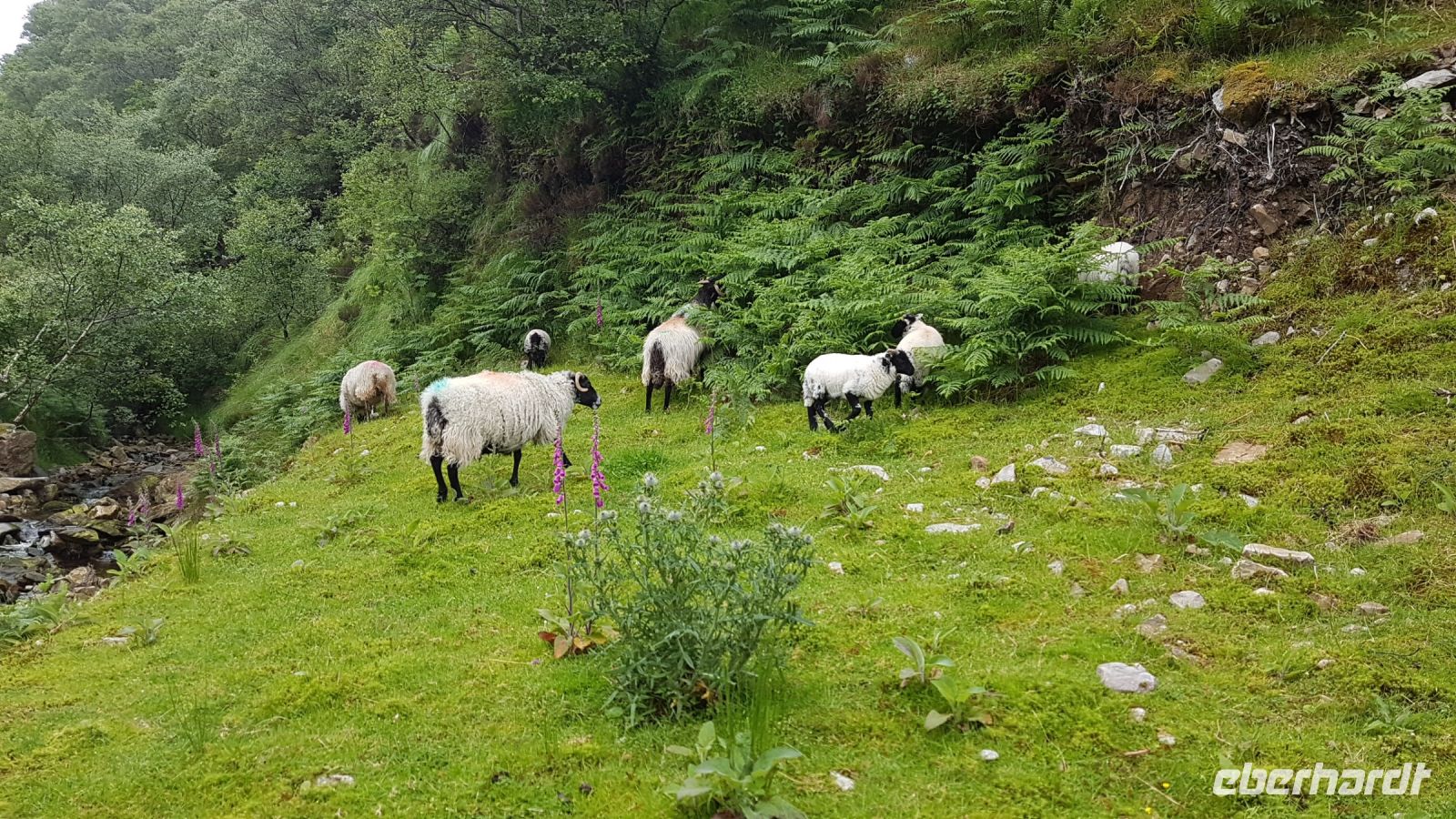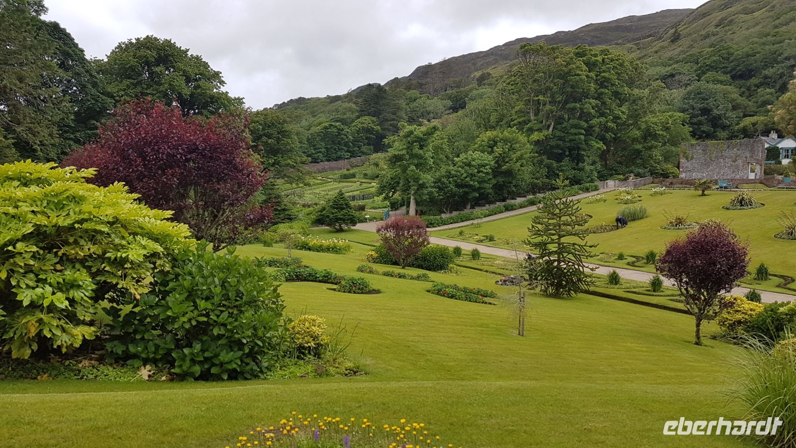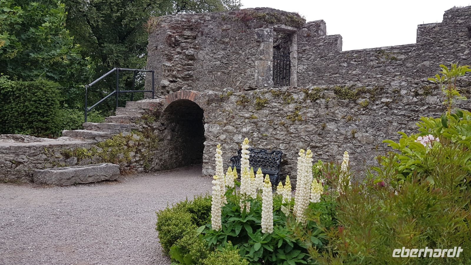 Dort angekommen, machten wir schöne Fotos bei herrlicher Sicht vom See und dem Castle aus der Ferne, das sich inmitten von rauher und karger Berglandschaft am idyllischen Ufer des Veagh Sees befindet. Es ist ein im Stil der schottischen Aristokratie errichtetes Schloss, es diente einst als Jagdschloss. Als Extra zu unserem Reiseprogramm wurden wir eingeladen, mit einem Shuttle-Bus zum Castle fahren. Wir spazierten durch herrlich angelegte Gärten, staunten über üppig blühenden Rhododendron und genossen den wunderbaren Blick über den See, der sich umrahmt von imposanten und nahezu kahlen Bergen zu Füßen des kleinen Schlosses erstreckt.