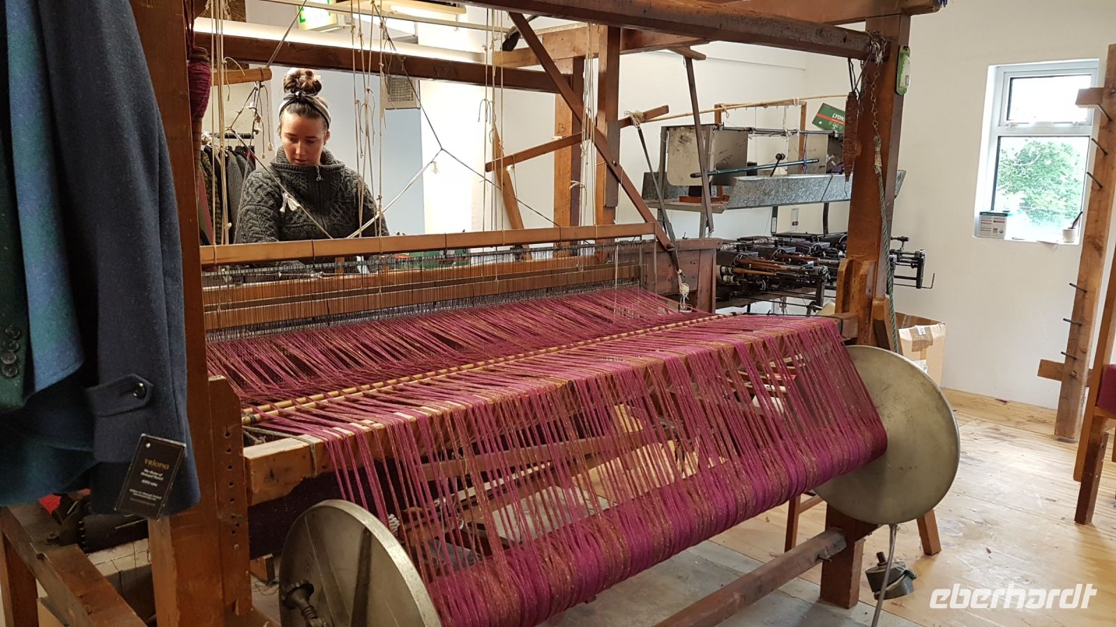In Dungloe hielten wir erneut, ein hübsches Städtchen mit bunten Geschäften, kleinen Cafés, Restaurants sowie einer schönen Bucht mit Pier. Weiter ging unsere Fahrt entlang des Wild Atlantic Ways mit malerischen Buchten, Stränden und felsigen Küstenabschnitten. Am Portnoo Beach nutzten wir die Gelegenheit für einen Spaziergang am breiten Sandstrand, Wind, Sonne und Wolken wechselten sich hier ab, wie am gesamten Tag. In Ardara besuchten wir eine alt eingesessene Tweed-Weberei, wo wir uns mit diesem traditionellen Handwerk vertraut machen konnten.