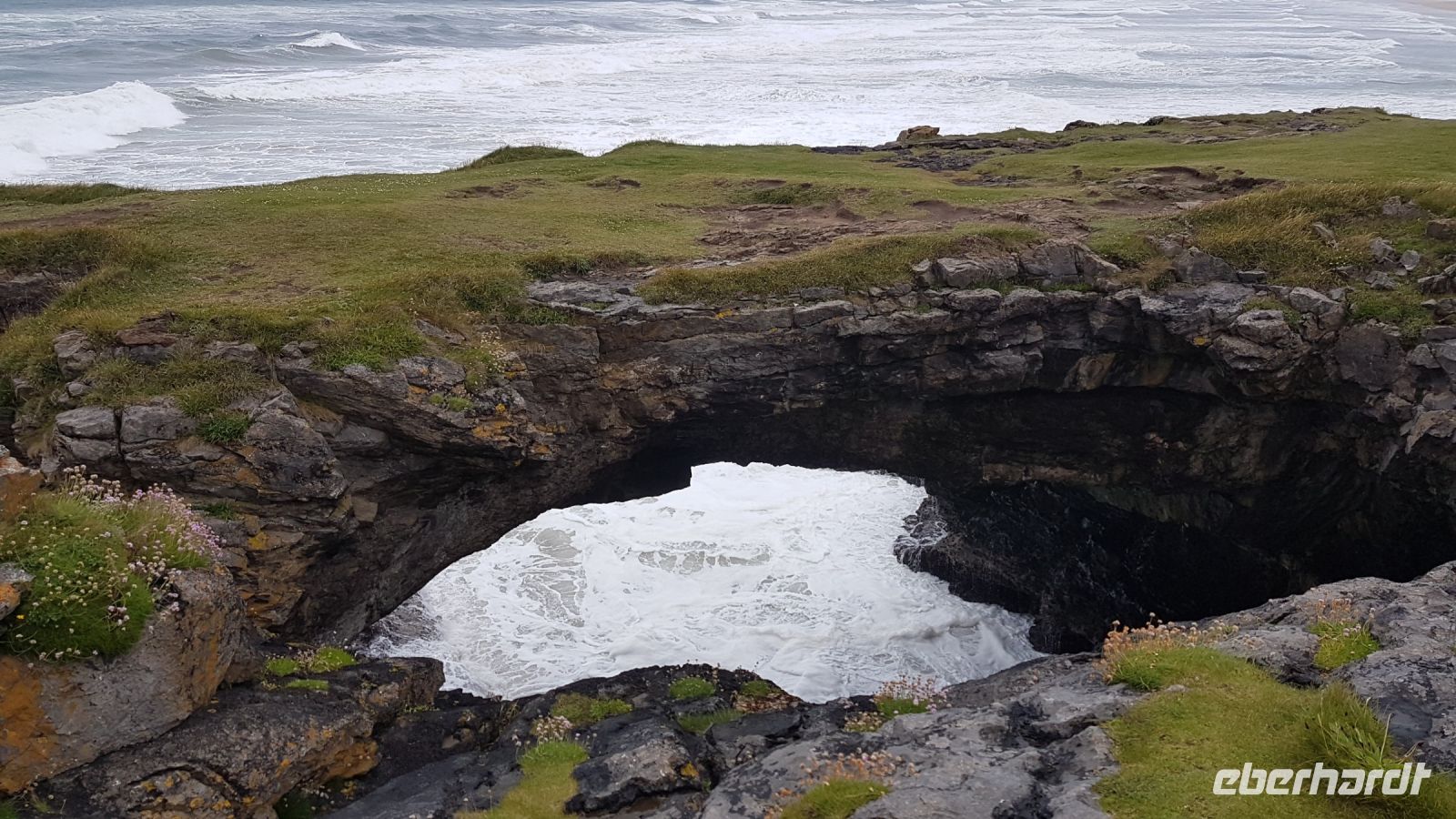 Im Anschluss daran stand nun der nördlichste Punkt Irlands auf dem Programm. Malin Head ist schon weithin sichtbar, ein alter Wachtturm steht oben und ist eine Landmarke. Wir genossen bei Wind und Sonnenschein einen herrlichen Spaziergang bis zum Hells Hole, eine Felsspalte mit Blick in den tosenden Atlantik.