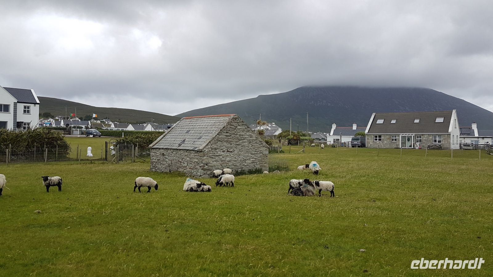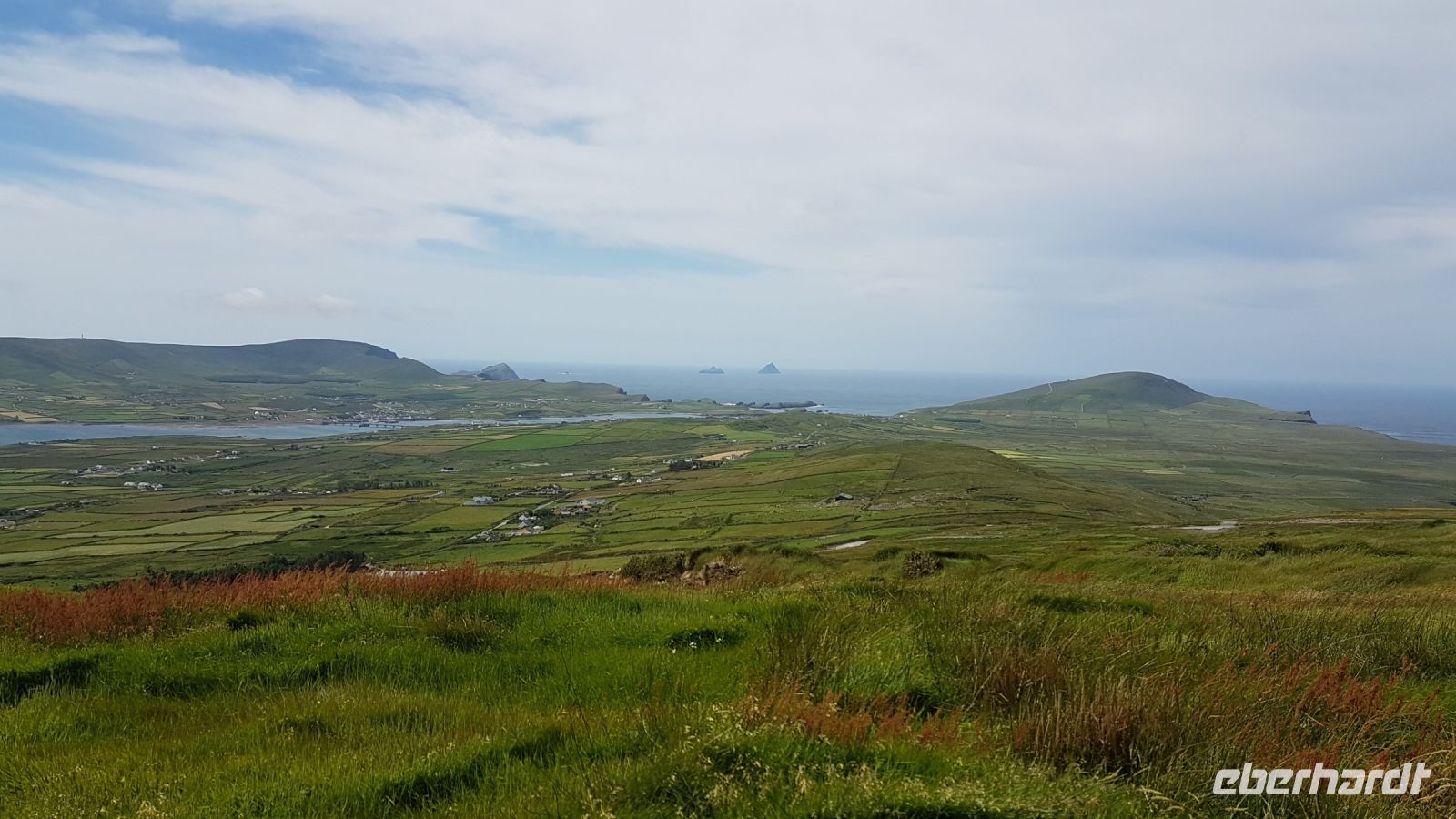 Nicht lange nach unserem Frühstück in Tralee trafen wir uns wieder in unserem Bus. An der Blennerville Windmühle legten wir den ersten Stopp dieses Tages ein für Fotos bei herrlichstem Sonnenschein. Den weiteren Tag verbrachten wir auf einer vergnüglichen Rundreise über die Dingle Halbinsel, sahen sogenannte Bienenkorbhütten, das sind frühchristliche Behausungen der Bauern in dieser Gegend. Auch wunderbare Ausblicke boten sich uns vom Slea Head Drive aus, das ist eine Küstenstraße, von der wir die Blasket-Inseln sehen konnten. Am Dunquin Harbour spazierten wir hinunter zum Anleger, ein Postkartenmotiv hier. Im hübschen Städtchen Dingle verbrachten wir unsere Mittagspause, einige probierten Fish & Chips oder leckere Eiscreme. Unser letzter Halt auf der Halbinsel war am Strand von Inch Beach, wo einige Badegäste im Wasser zu sehen waren. Wir spazierten über den breiten Sandstrand und genossen eine kleine Weile das Meer. Den Abend verbrachten wir wieder im The Ashe Hotel in Tralee. Die meisten Gäste hatten sich angemeldet für eine Irische Tanzschow, die den heutigen Abschluss des Tages bilden sollte.