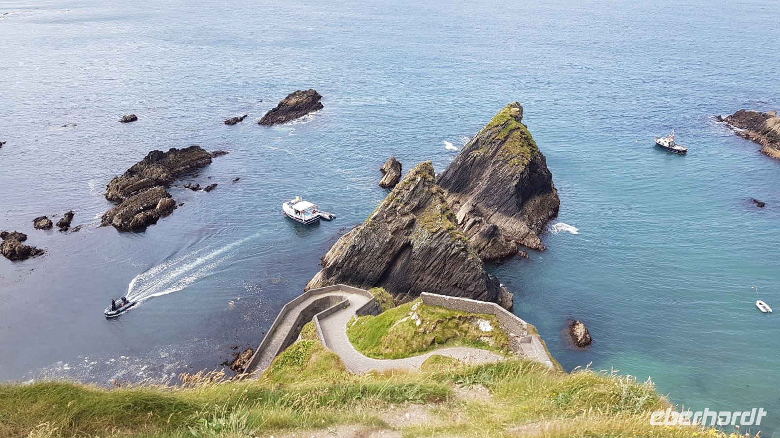 Kommen Sie mit auf eine Reise zu den spektakulärsten Gegenden Irlands: eine Küste voller Überraschungen mit grünen Wiesen über steilen Felsen, Klippen, herrlichen Sandstränden und Schafen, so weit das