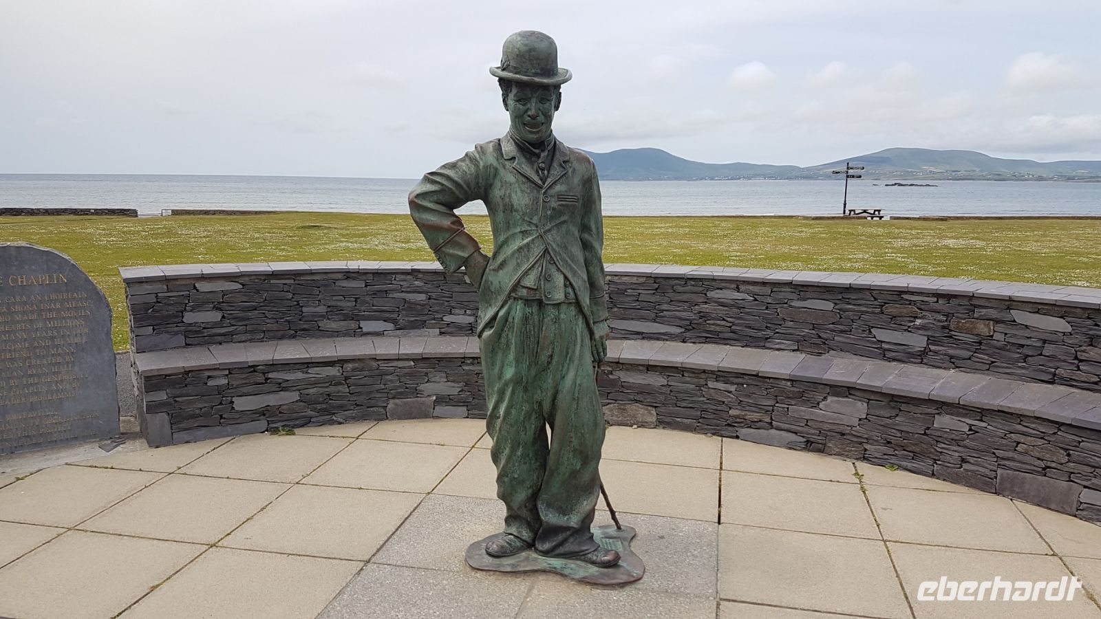 Heute stand der berühmte Ring of Kerry auf unserem Programm. Zunächst jedoch erkundeten wir Valentia Island bei Sonnenschein. Wir fuhren auf den höchsten Punkt der Insel: Geocaun Montain, der eine Höhe von 268 m hat. Auf der Spitze des Berges bot sich uns ein atemberaubender Blick auf die Insel Valentia und die Skellig Islands. Immer wieder hielt unser Bus an, damit wir Fotos von der herrlichen Landschaft machen konnten. Der weitere Tag war dem berühmten Ring of Kerry gewidmet. Bei schönem Wetter konnten wir diese traumhafte Küstenstraße genießen, sahen atemberaubende Landschaften. Von Gletschern geformte Berge lösen sich mit Tälern, Seen, malerischen Buchten, Klippen und dem Blick auf den Atlantik ab. Gegen Mittag statteten wir dem berühmten Charlie Chaplin einen Besuch ab. In Waterville steht seine Statue, mit der wir uns gern fotografieren ließen. Er ist hier in guter Erinnerung, oft verbrachte er in Waterville erholsame Tage.