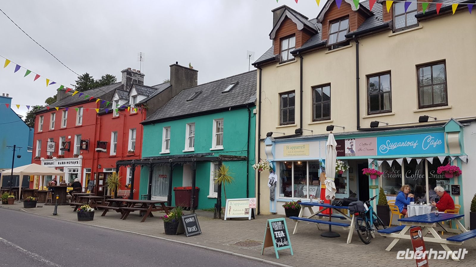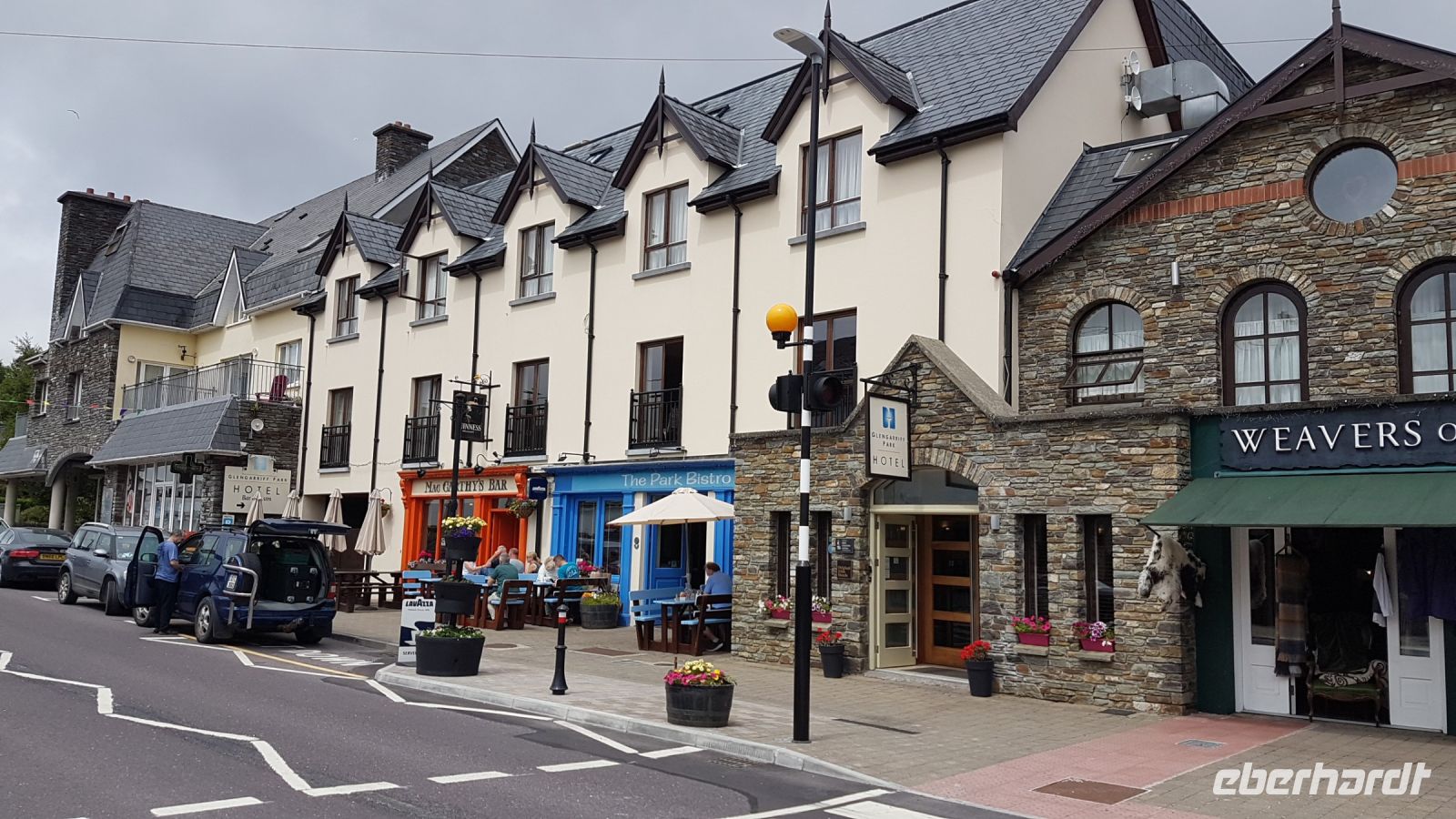 Auf unserem weiteren Weg genossen wir den ein oder anderen wunderbaren Blick über eine Bucht im Atlantik. In Sneem spazierten wir über eine alte Steinbrücke, unter der ein Fluss über tief eingeschnittene Felsblöcke strömt und sprudelt. Wir probierten ein Eis oder stöberten in den hübschen Geschäften nach Souvenirs.