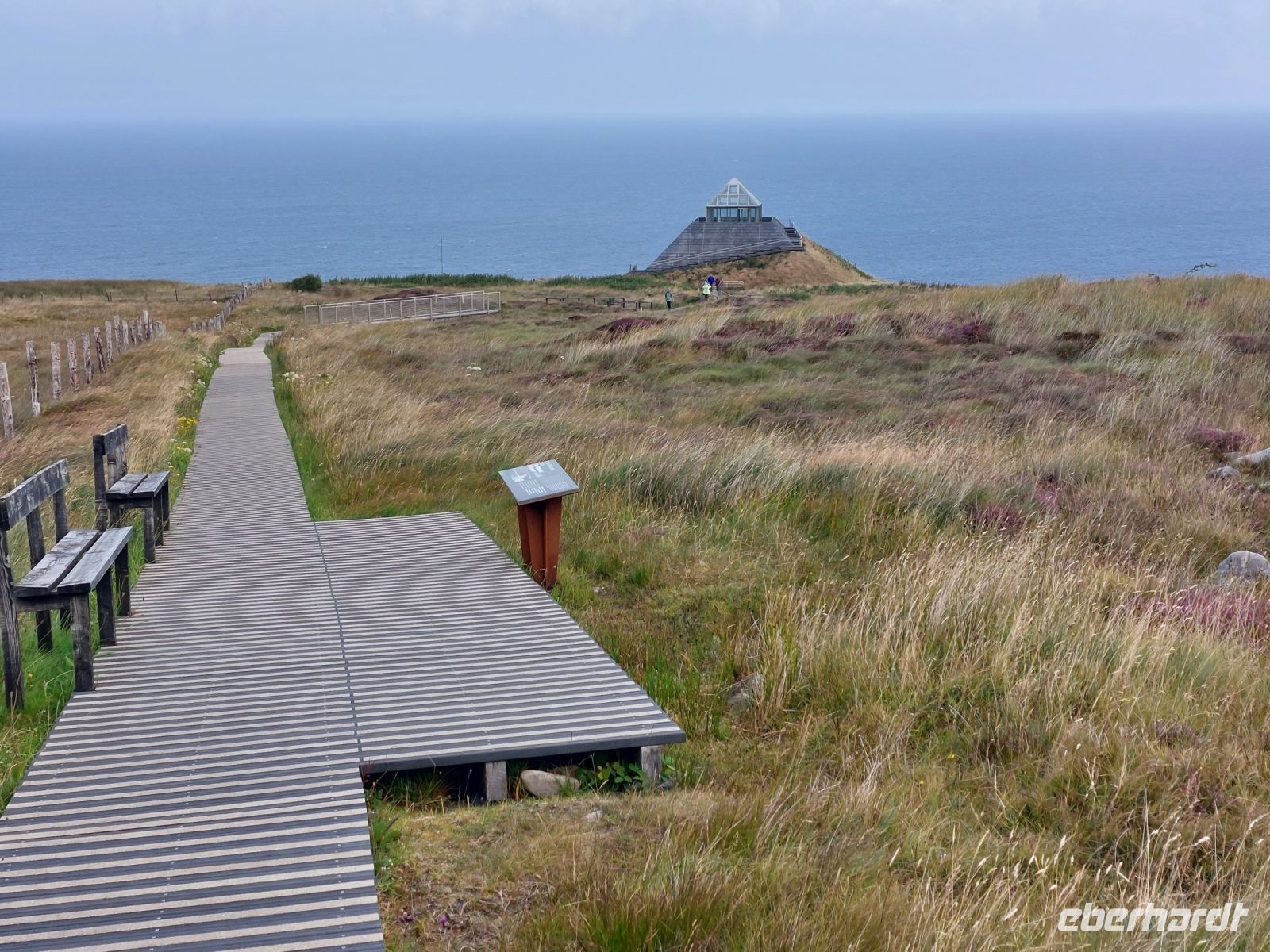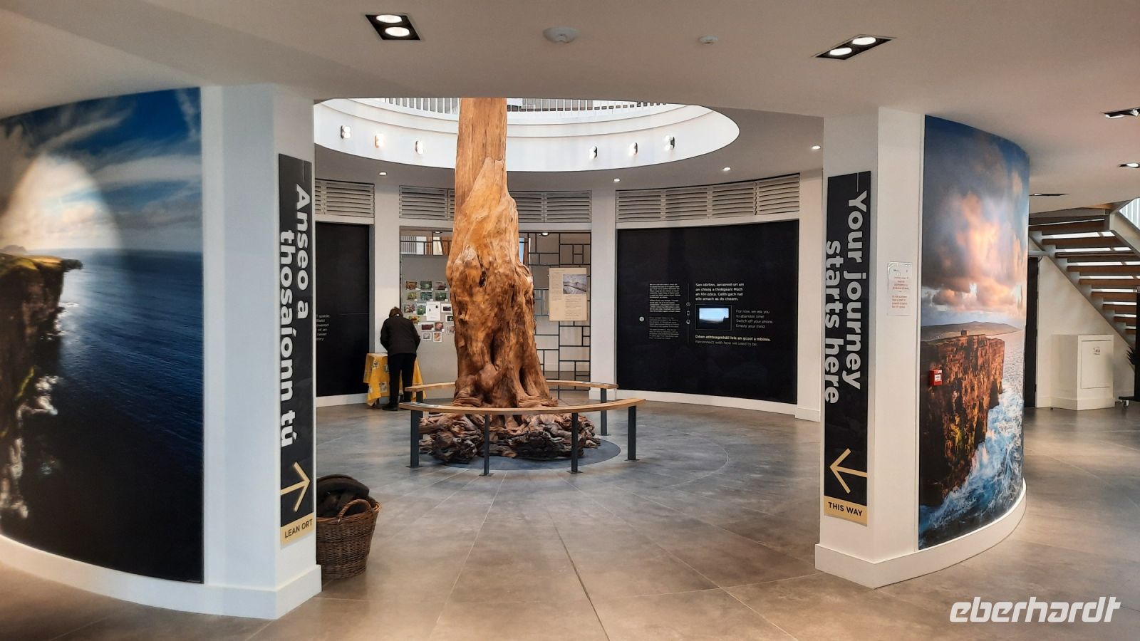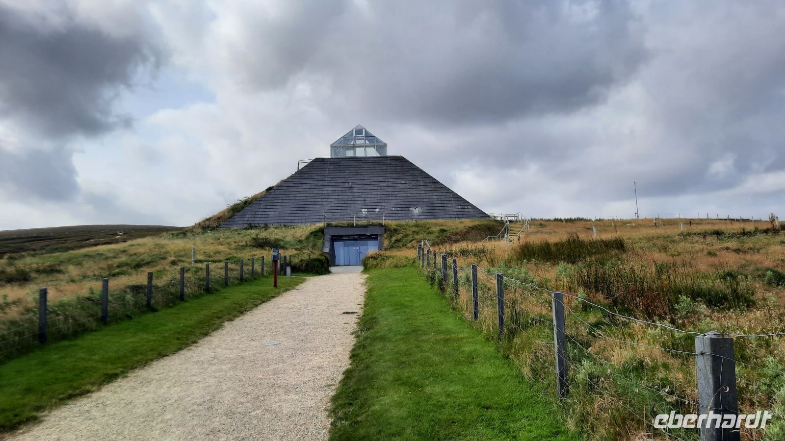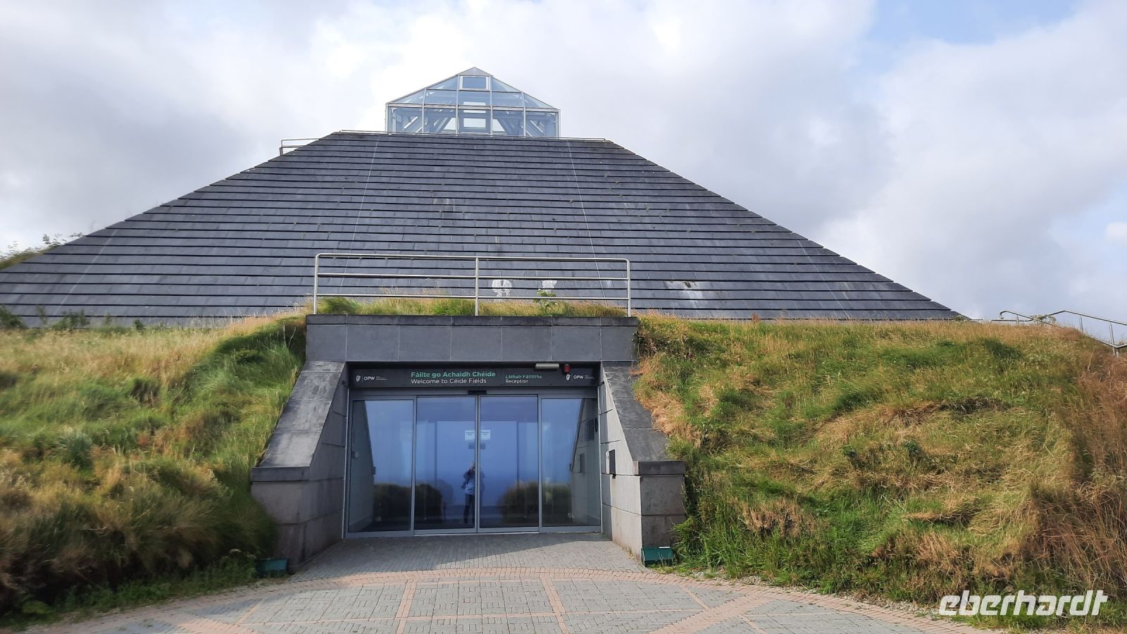 Wir beobachten zunächst das Wetter, denn es ist es eher regnerisch bzw. bewölkt. Also beginnen wir mit dem Besuch der Anlage von Cèide Fields und deren plötzlich in der freien Landschaft auftauchenden, pyramienförgigen Glaskuppel des Besucherzentrums.