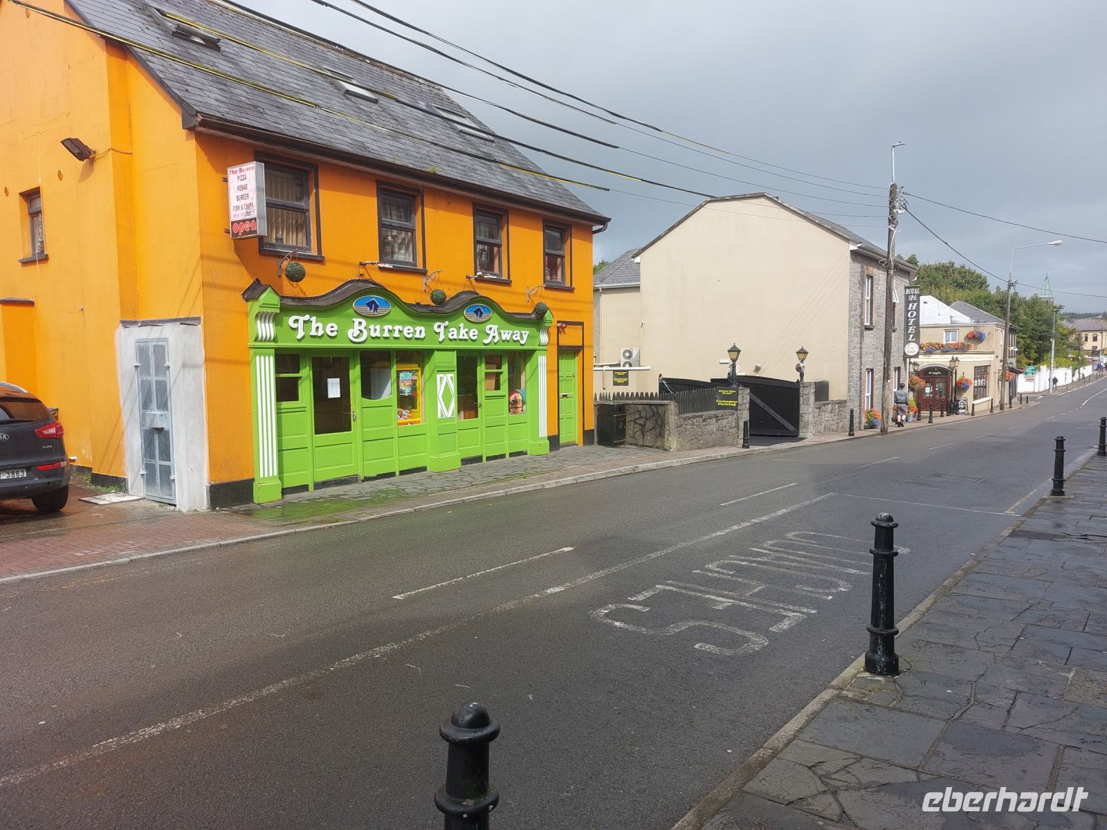 Im irischen Musikerörtchen Lisdoonvarna machen wir einen kurzen Kaffeestopp, während wir ansonsten die ganze Zeit über mitten durch die riesige Karstlandschaft „The Burren“, im County Clare fahren.