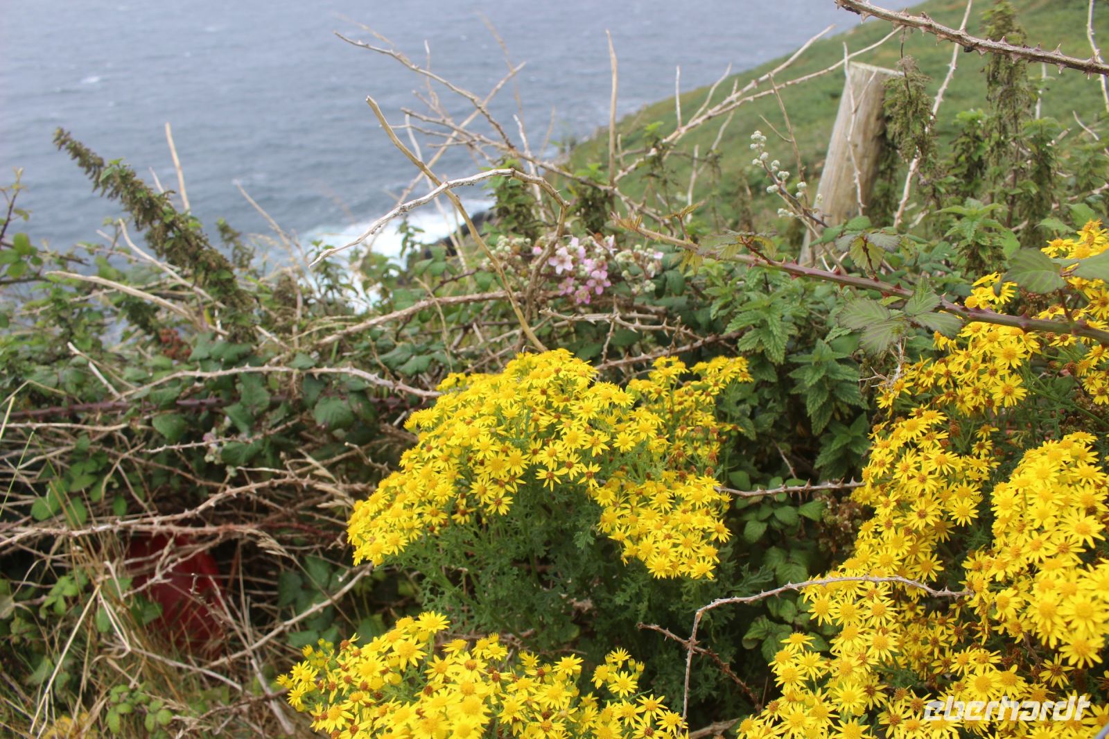 Hier unten, im Süden der Insel, herrscht ein wunderbares Klima, das sich auch im üppigen Wachstum der Pflanzen zeigt. So ist die Anreise dorthin ein wahres Erlebnis, insbesondere, wenn die Sonne immer wieder durchblitzt und ein besonderes Licht für das Meer, das wechselnde Grün der Wiesen überall und die dort wachsenden Blumen erzeugt.