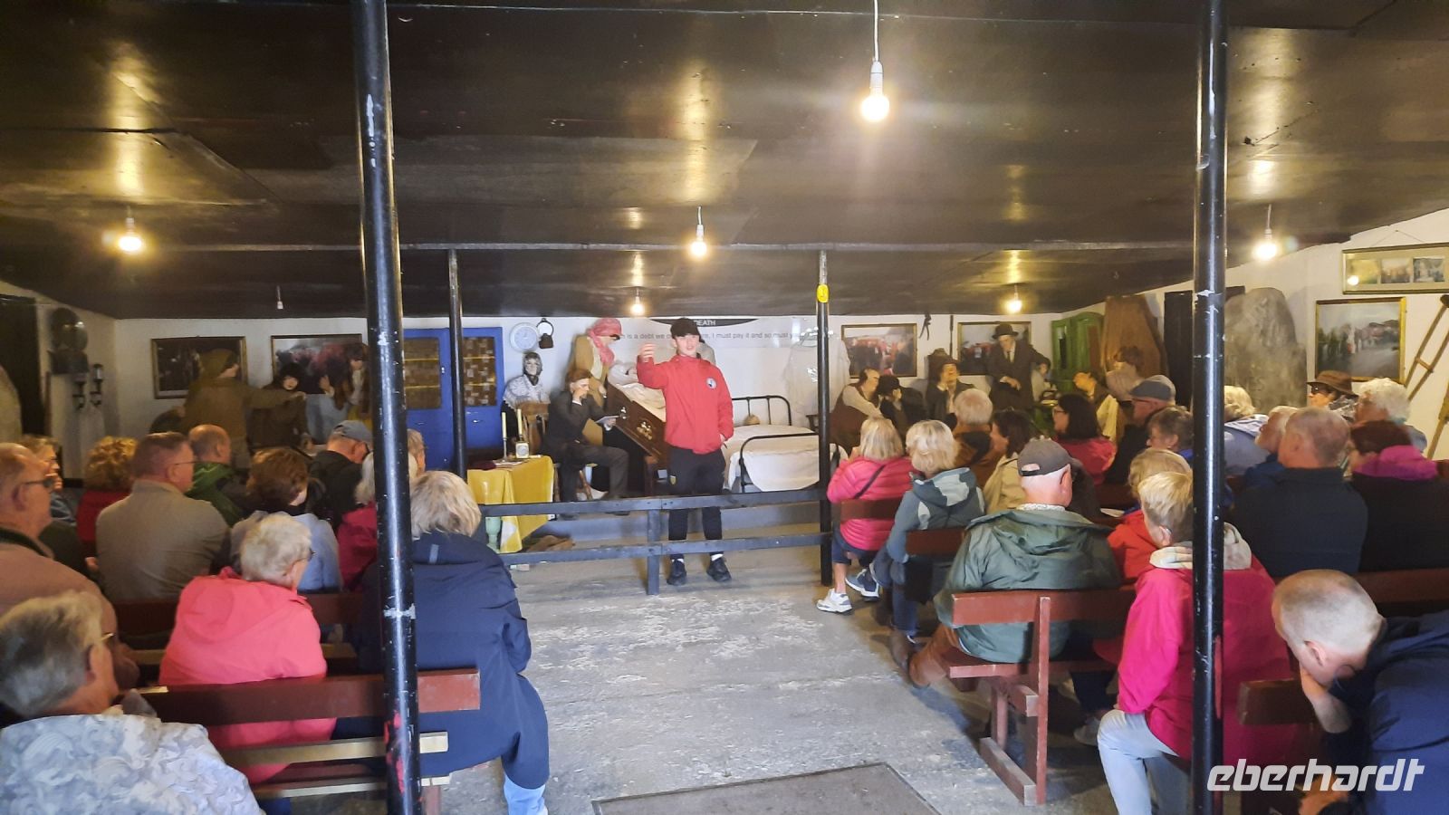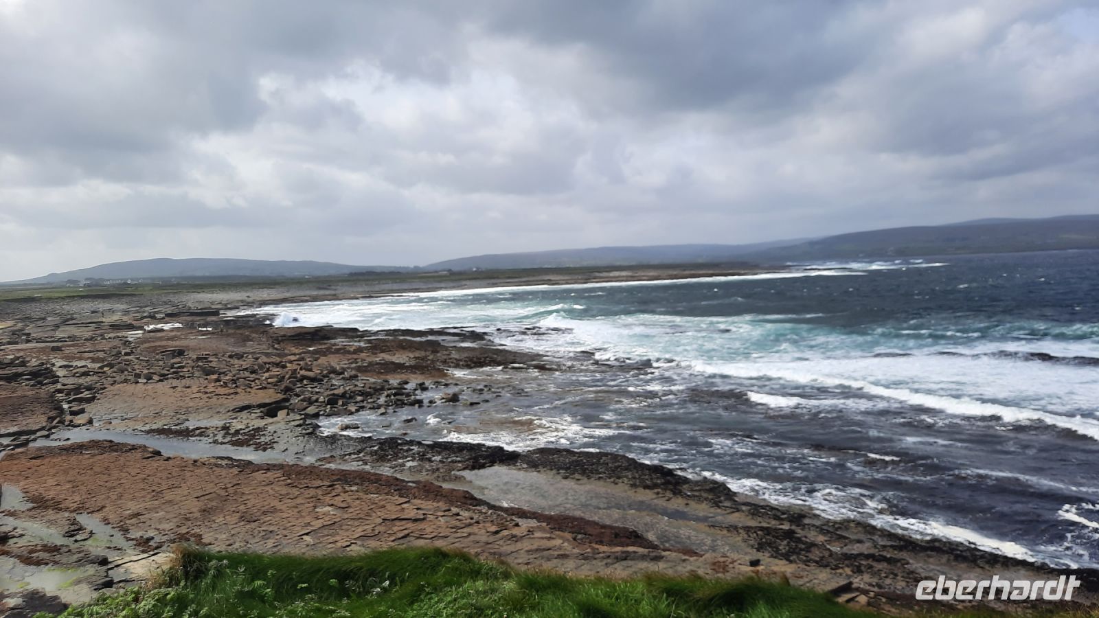 Die dort im Jahr 1930 entdeckten Mauerreste einer jungsteinzeitlichen Besiedelung und einer Megalithanlage sind immer noch nicht gänzlich erforscht und wir erhalten einen guten Einblick in diese schön aufbereitete Anlage. Auch wenn wir etwas früh dort eintreffen, erleben wir auch hier wieder einmal die stets gewinnend freundliche Art der irischen Bevölkerung.