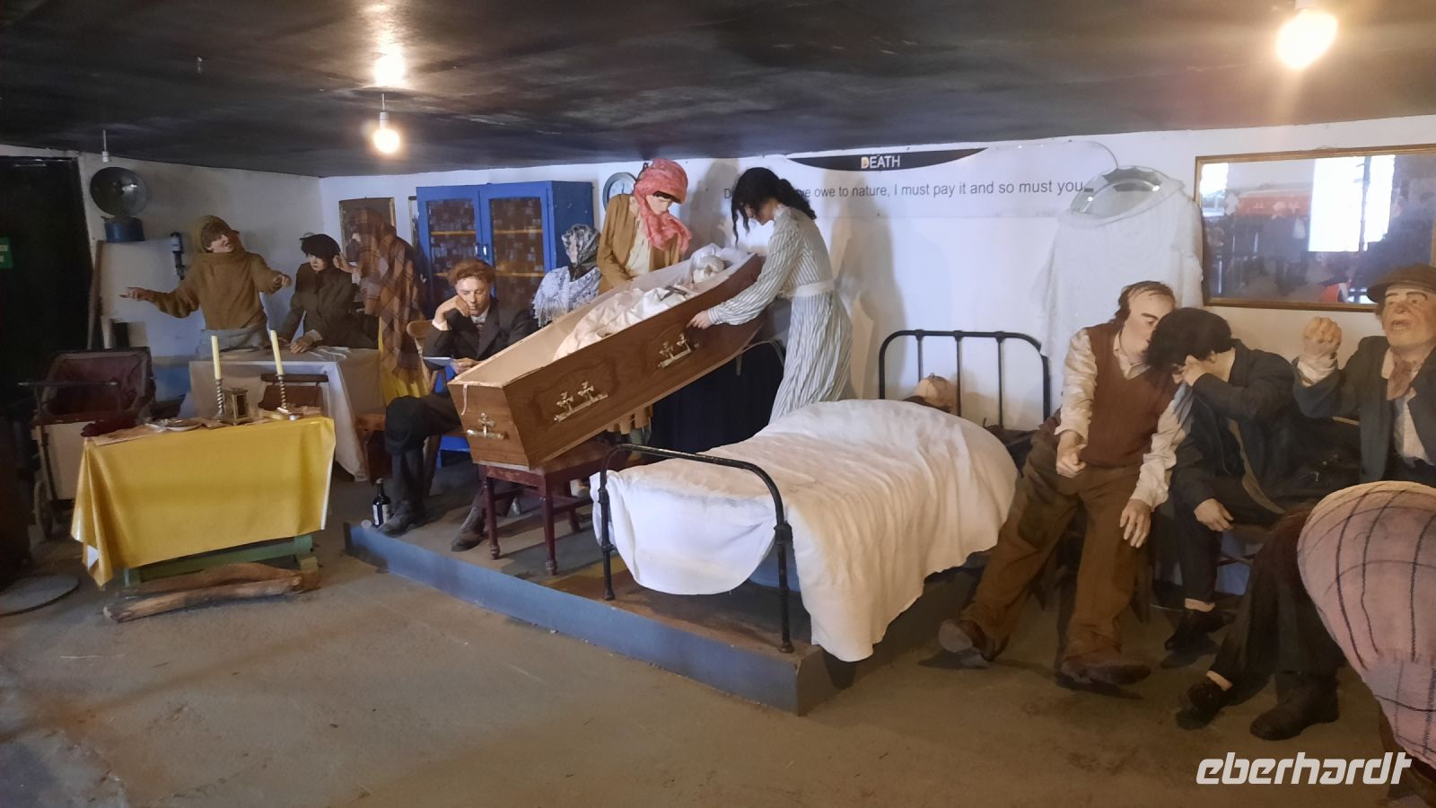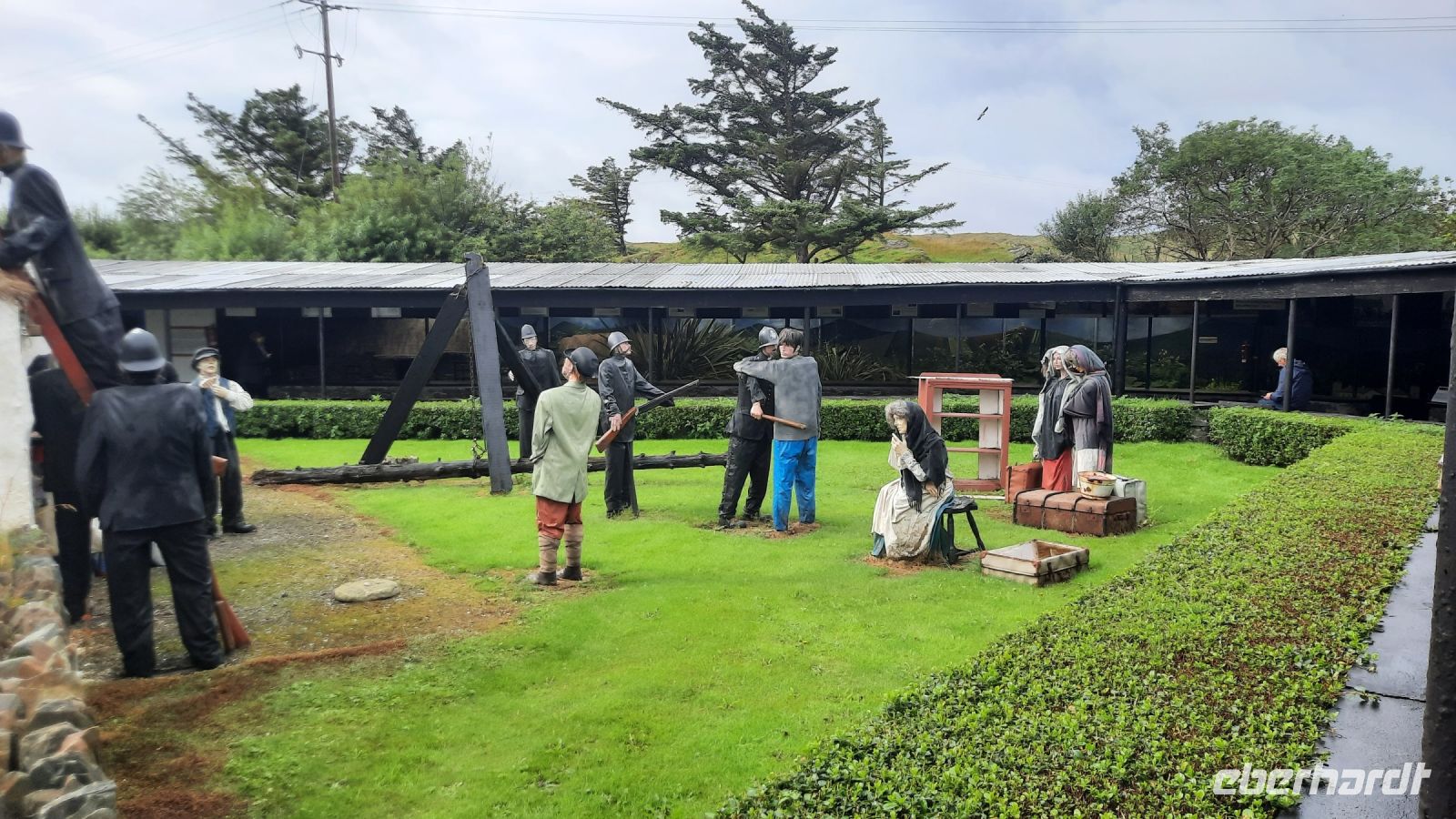 Trotz der erkennbar schönen Natur wollen wir wetterbedingt nicht unbedingt anhalten und fahren daher zunächst einmal in das entlegene “Doagh Famine Village”.