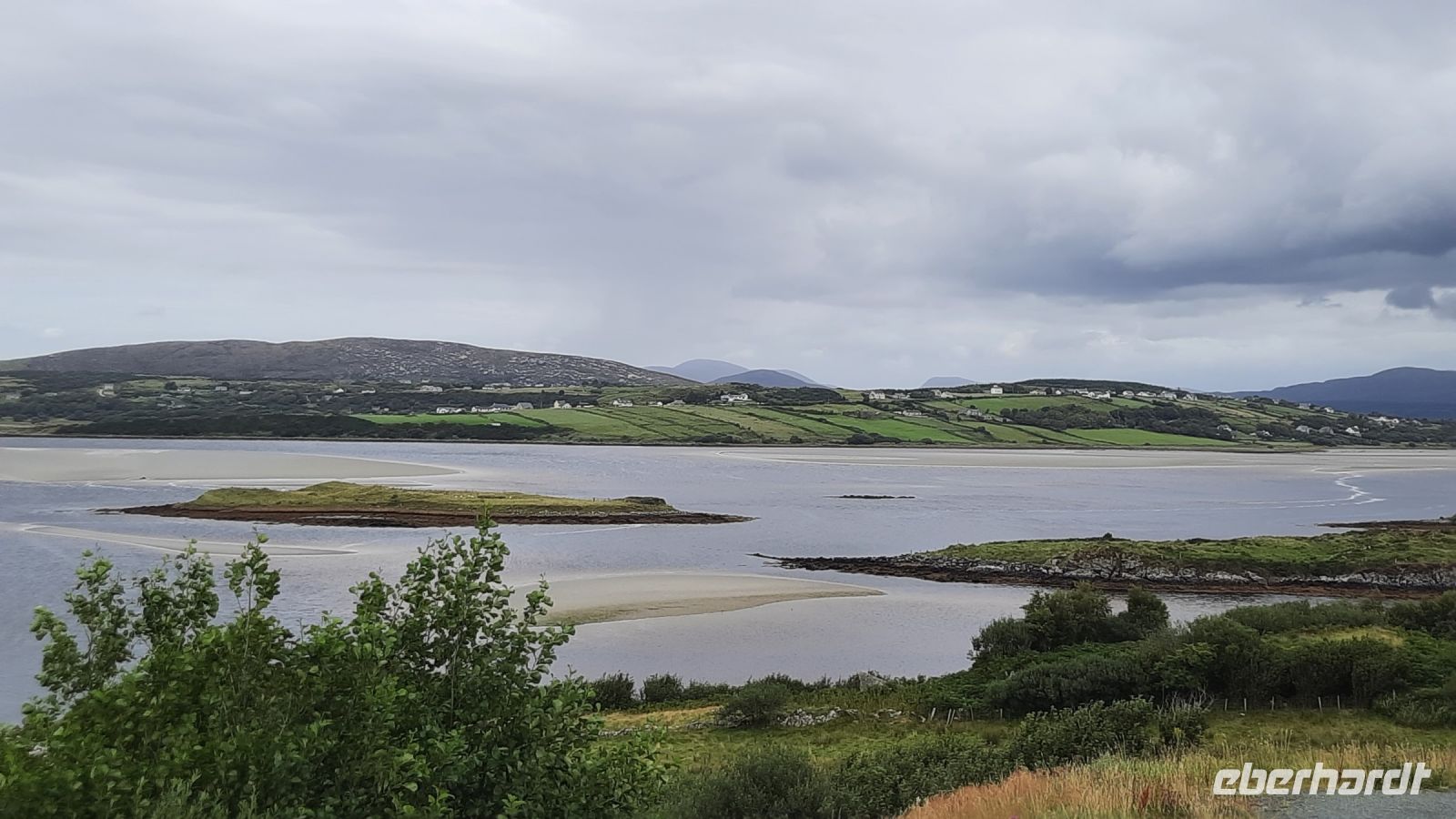 Von dort aus weiter und auch immer nahe der Küste geht es vorbei an Burtonport zur Kleinstadt Dungloe. Wetterbedingt verlegen wir unseren Stopp aber doch lieber zum nahegelegenen “Portnoo Beach” und beobachten dort in unserer ausgiebigen Mittagspause das irische Strandleben mit Surfern bei gutem Wetter, aber steifer Brise.