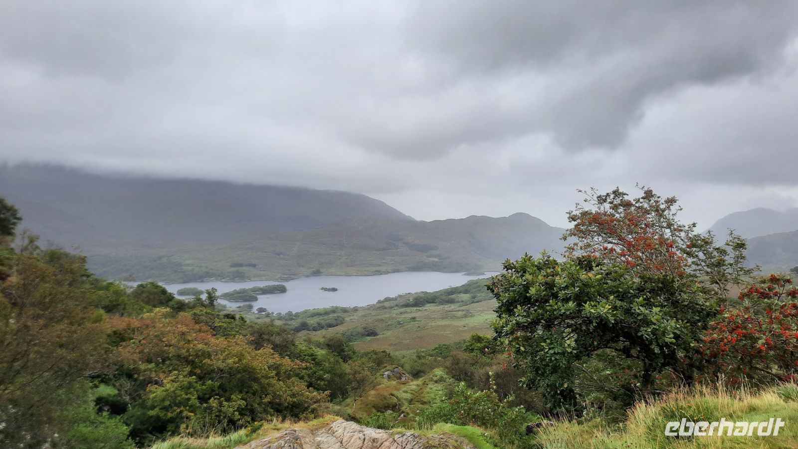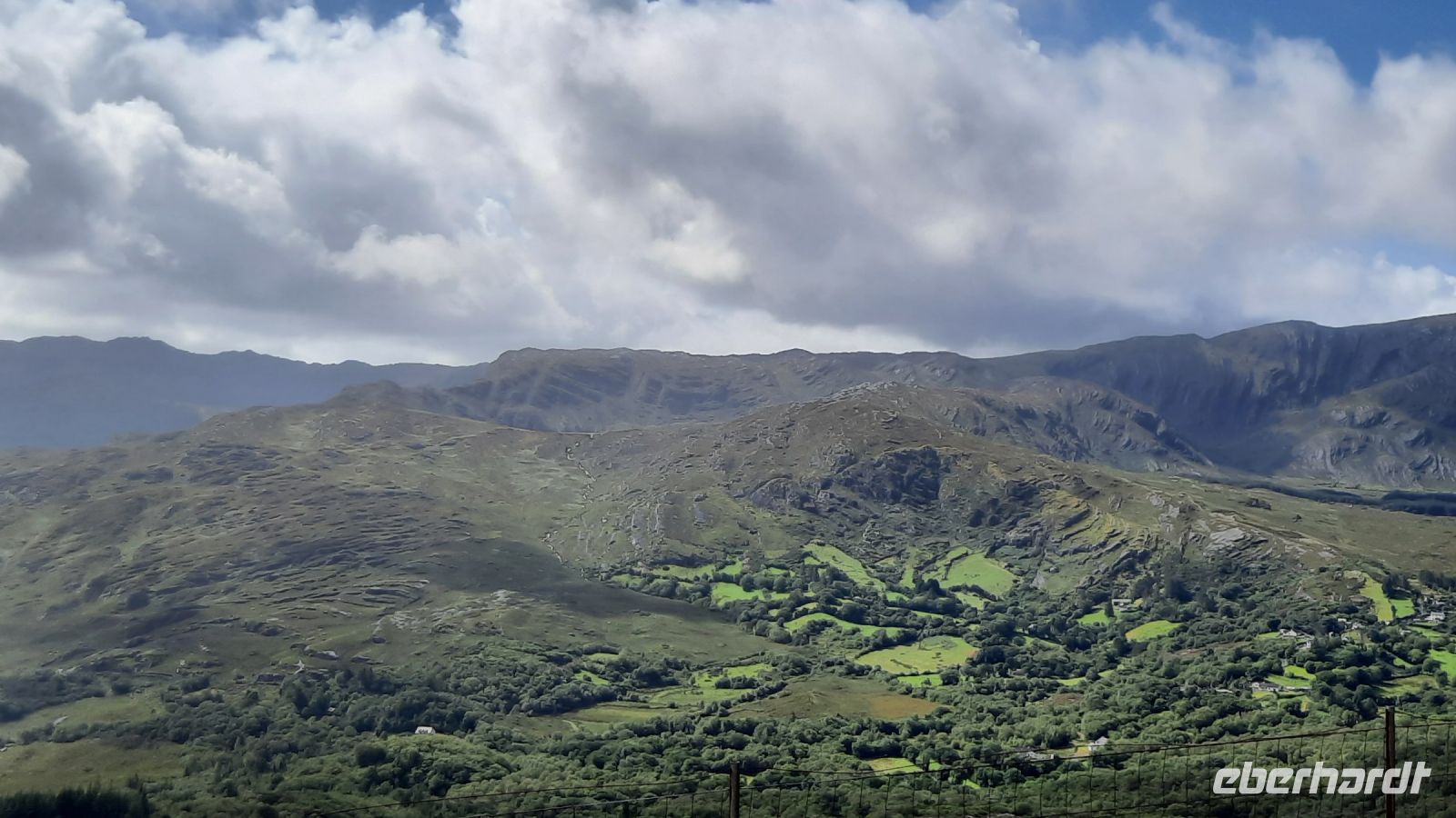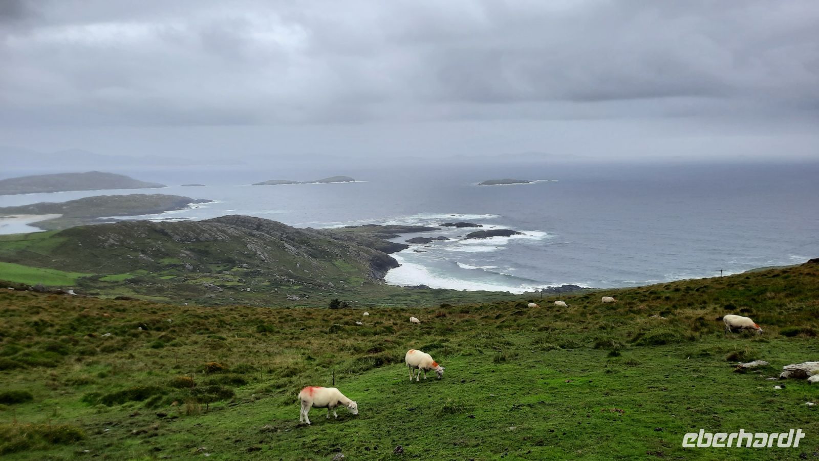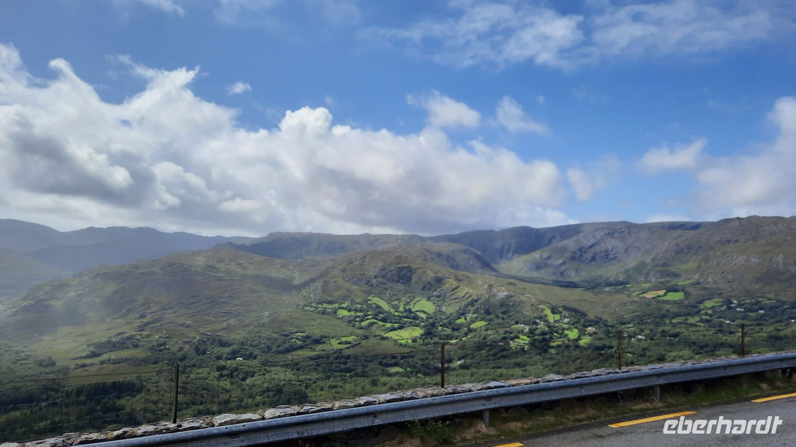 Wir erleben diese Landschaft bei wechselnd schaurig-schönem Wetter, typisch irisch eben, aber letztlich gelingt es uns doch wieder einmal, einen trockenen Stopp mit schöner Aussicht zu finden.