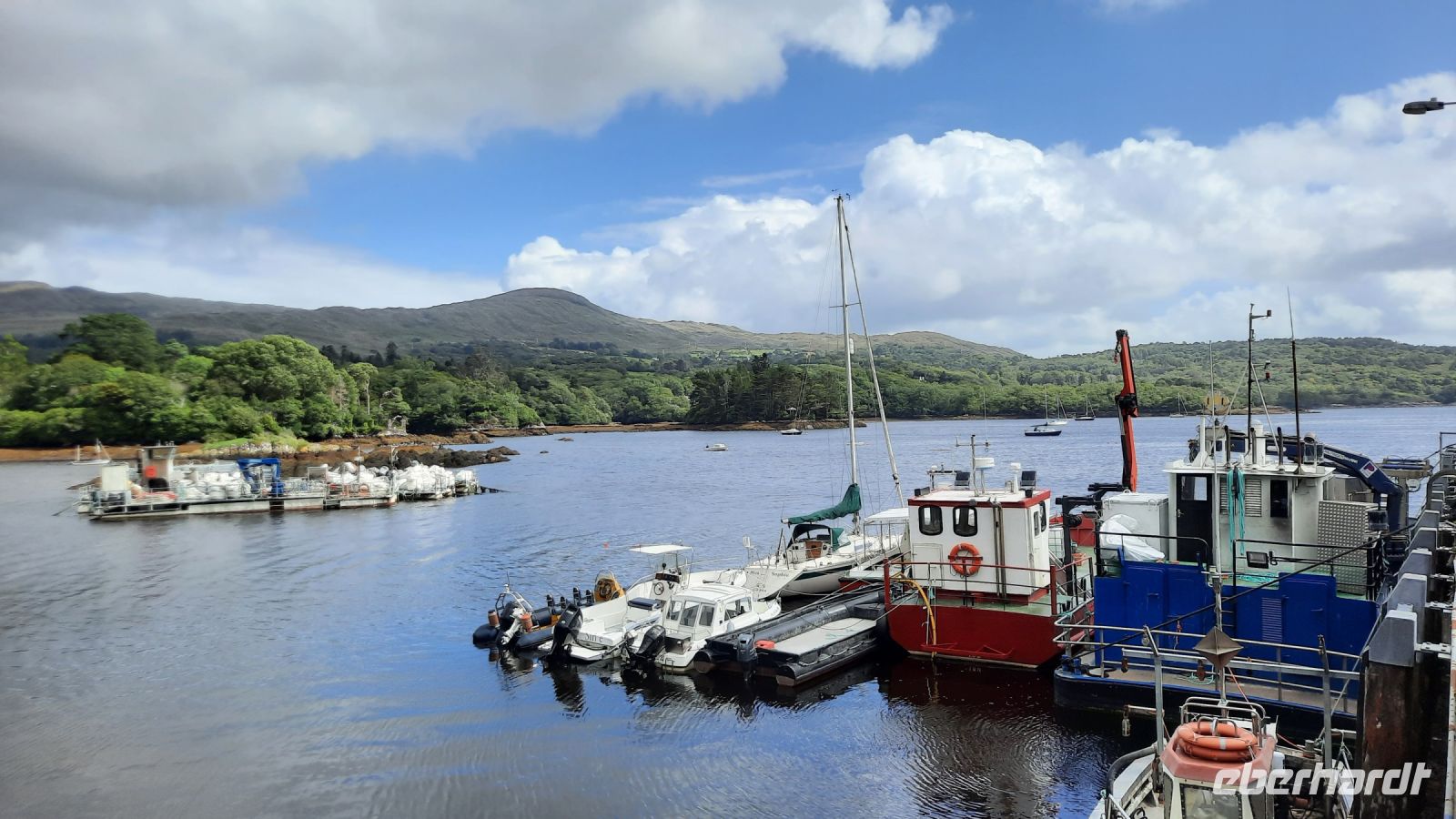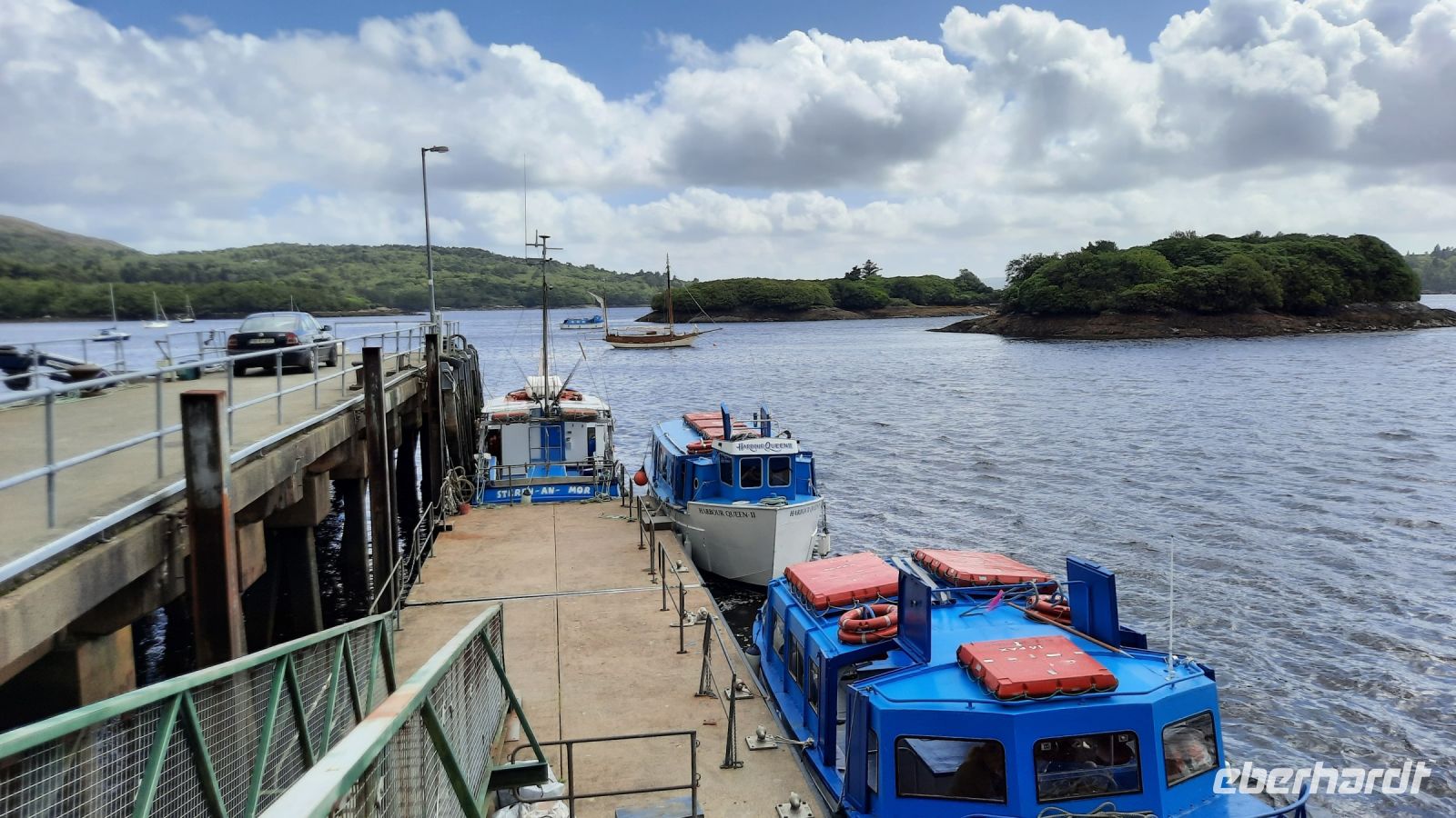 Am kleinen Hafen von Glengarriff wartet schon unsere schnuckelige Personenfähre namens „Harbour Queen“, die uns in kurzer Fahrt allesamt hinüberbringt zur Blumeninsel „Garnish Island“.
