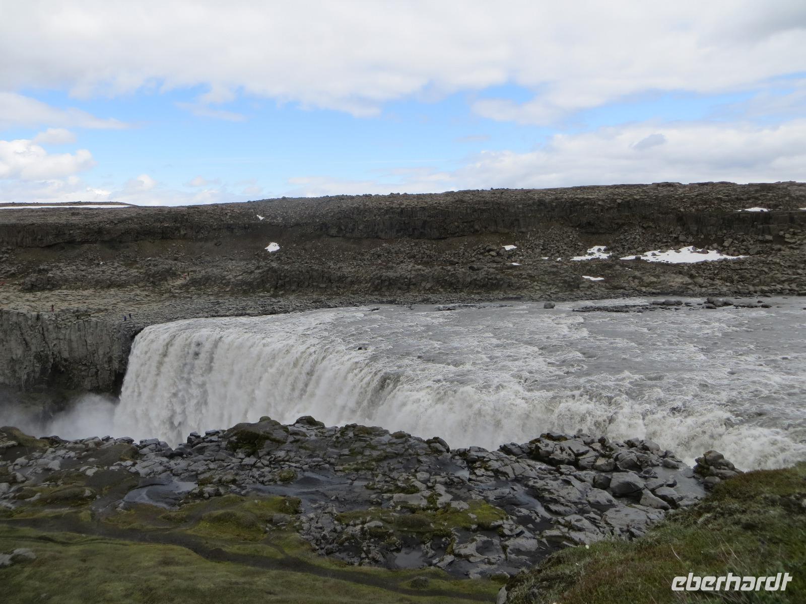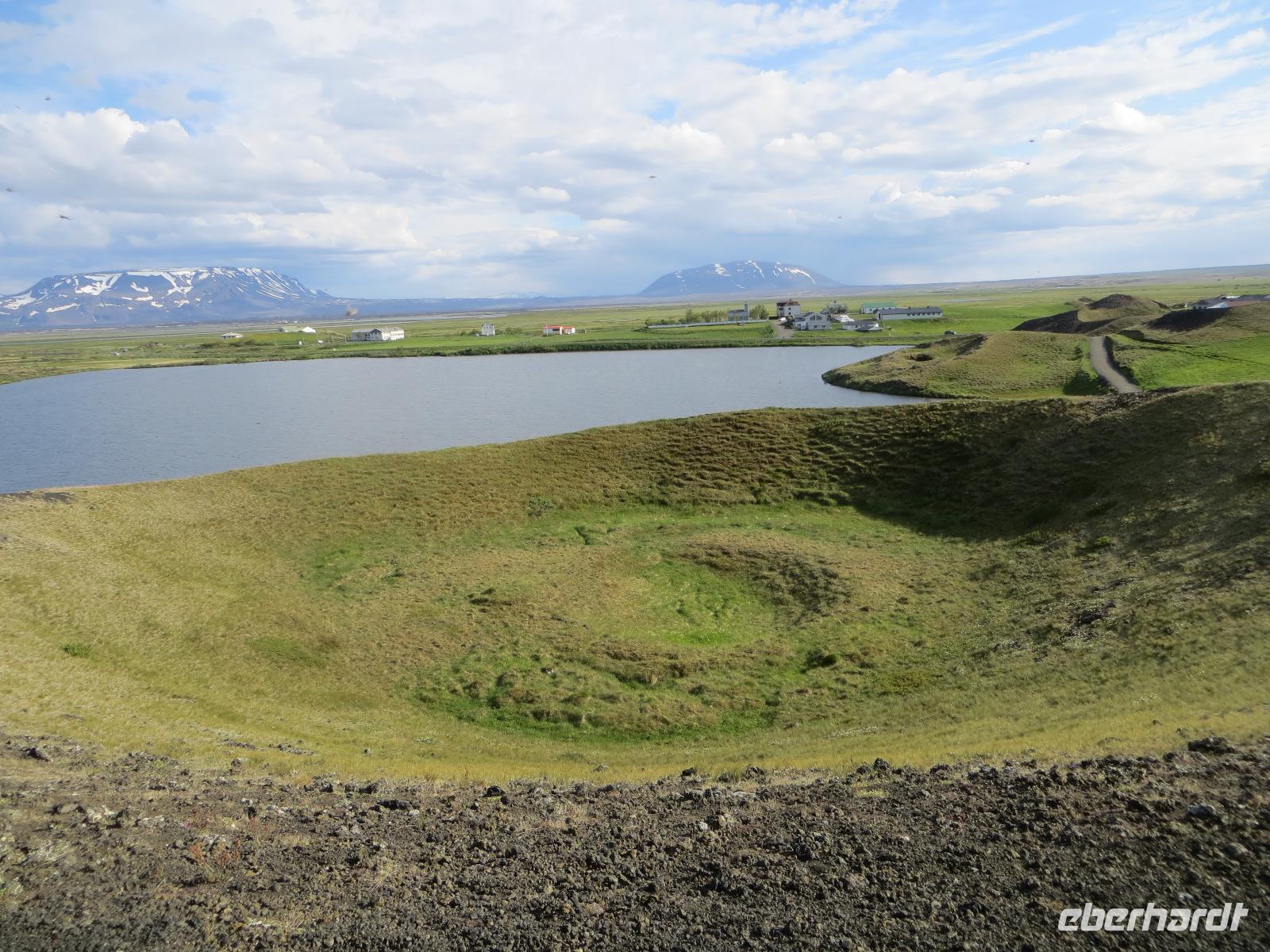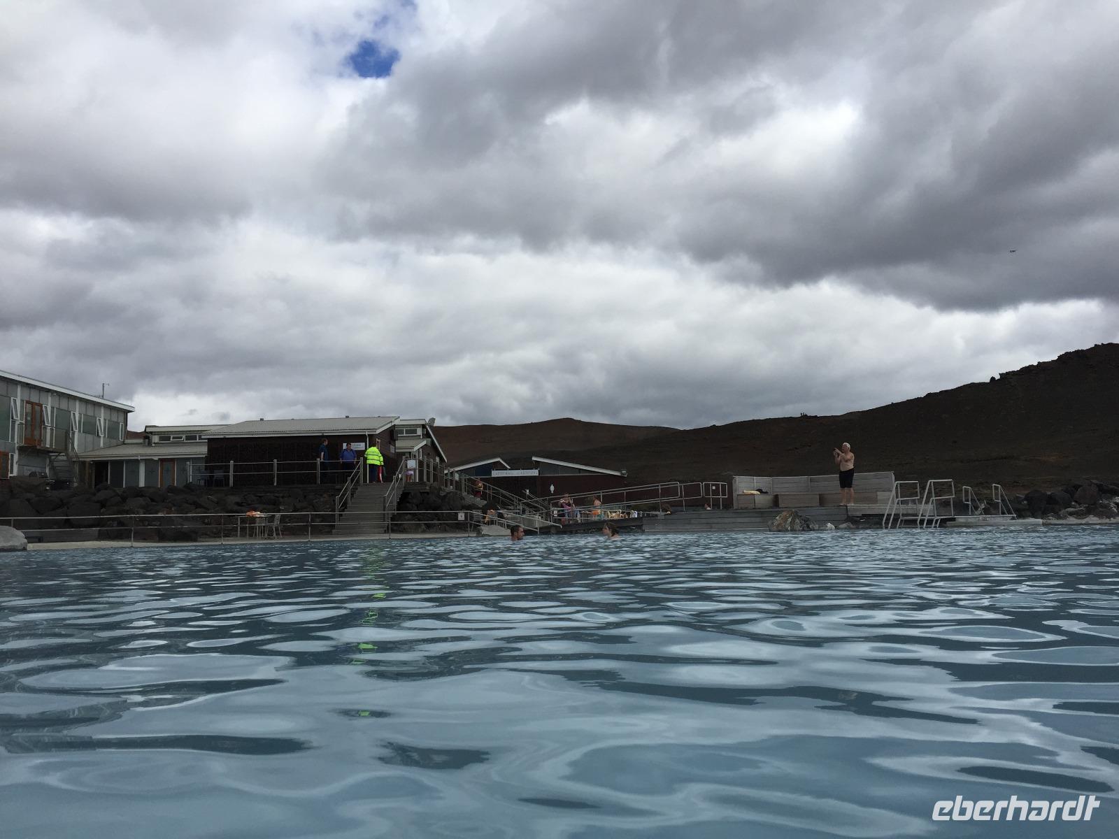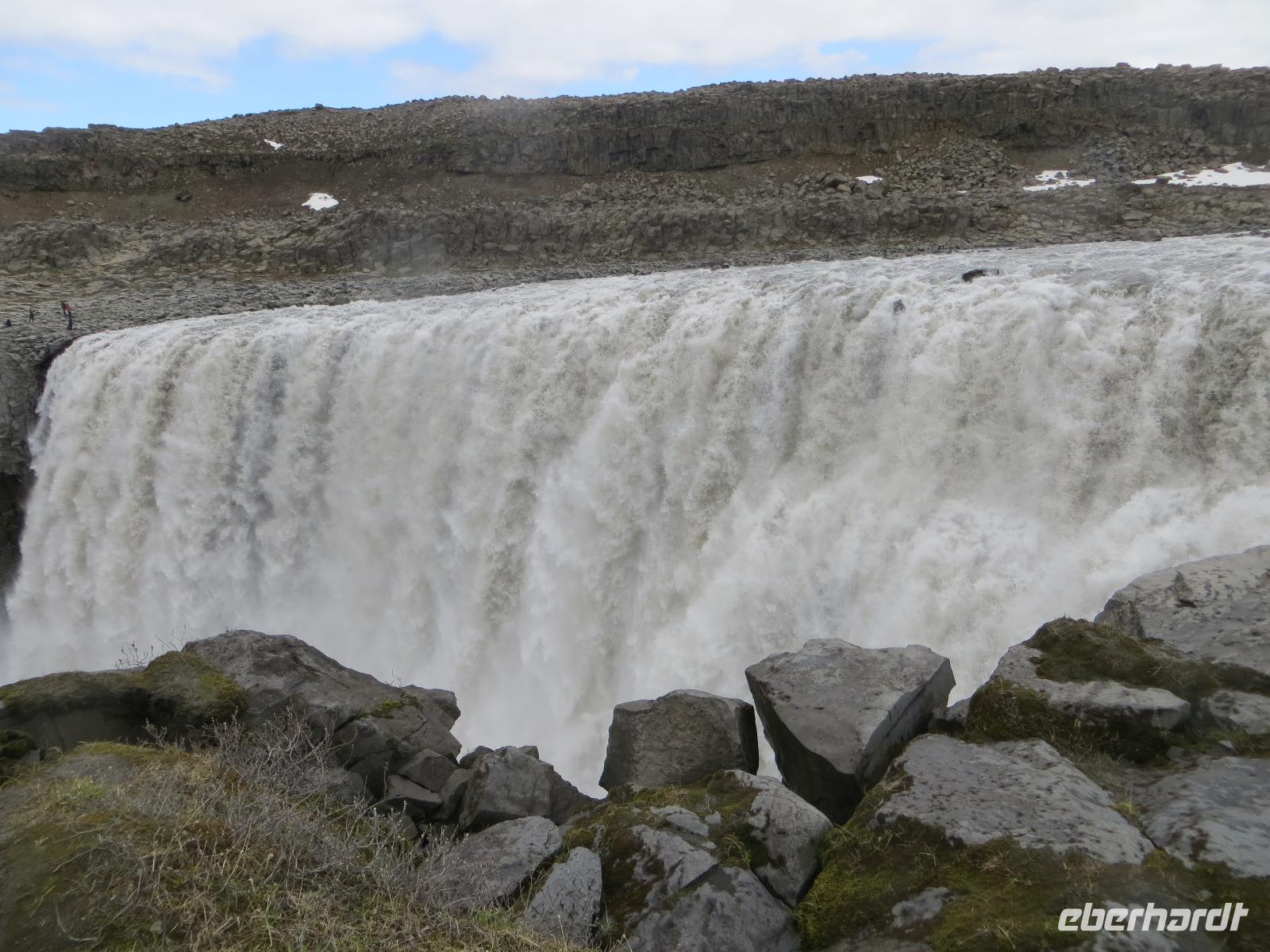 Heute verlassen wir bereits 08:00 Uhr unser Hotel, denn inzwischen hat ein AIDA-Kreuzfahrschiff angelegt und wir möchten die heutigen Programmpunkte ohne die vielen Kreuzfahrtbusse erleben. Wir blicken von der anderen Fjordseite noch einmal auf Akureyri zurück und fahren immer bergauf durch eine Postkartenidylle mit Gletschern, Wasserfällen, Flüssen und strahlend blauen Himmel. Wir haben bisher riesiges Glück mit dem Wetter, nur Sonnenschein. Unser erstes Ziel für heute ist der Godafoss, dem Götterwasserfall. Hier kommen wir wieder mit der endlosen Sagenwelt der Isländer hautnah in Berührung, denn einst sollen hier, als man das Christentums als Staatsreligion übernommen hatte, die letzten heidnischen Götterbilder hinabgestürzt worden sein. So entstand der Name für den imposanten Wasserfall. Unser nächster Stopp ist die Heimat der 13 isländischen Weihnachtsmänner - Dimmuborgir. Wir spazieren auf gut ausgebauten Wegen durch die skurille Felslandschaft. Die Weihnachtsmänner treffen wir leider nicht, amüsieren uns aber sehr über Haralds Geschichten zu Löffellecker, Türentreter und Fensterglotzer. Dann fahren wir zur Grjotagja-Spalte, einer kleinen Höhle mit See, die einst zum Baden genutzt wurde, bis das Wasser zu heiß wurde. Bekannt ist sie Liebhabern von der zur Zeit populären Serie „Game of Thrones", da diese (wie auch viele andere Orte Islands) als Drehort diente. Nachdem wir nacheinander die kleine Höhle besichtigt haben, geht es weiter zu einem ganz besonderen Erlebnis: in der Badelandschaft Jardbödin entspannen wir in den heißen Quellen bei 12°C Außentemperatur und schneebedeckten Gipfeln im Hintergrund. Wir genießen es sehr! So entspannt fahren wir zum Dettifoss, dem energiereichsten Wasserfall Europas. Nach einem kurzen Spaziergang erreichen wir diesen und lassen uns den Sprühregen nicht nur ins Gesicht wehen. Über eine Breite von ca. 100m stürzen die Wassermassen 45 tief herab, ein beeindruckendes Schauspiel. Auf dem Rückweg sehen wir von Weitem den Herdubreid - den Berg namens „Breite Schultern" - wir lieben die Isländer für Ihre Namensgebungen jedes Mal aufs Neue. Dann gelangen wir zum aktiven Solfatarenfeld Hverarönd (oder Namaskard), eine endlose, sich immer verändernde, Weite mit blubbernden Schlammtümpeln und dampfenden Quellen. Schwefelgeruch und tolle Farbspiele erwarten uns hier. Wir übernachten heute am Myvatn, den Mückensee, zum Glück heute ohne eine einzige dieser Tierchen. Am Seeufer entlang spazieren wir zu den Pseudokratern von Skutustadagigar, bevor wir mit einem Abendessen den Tag beenden.