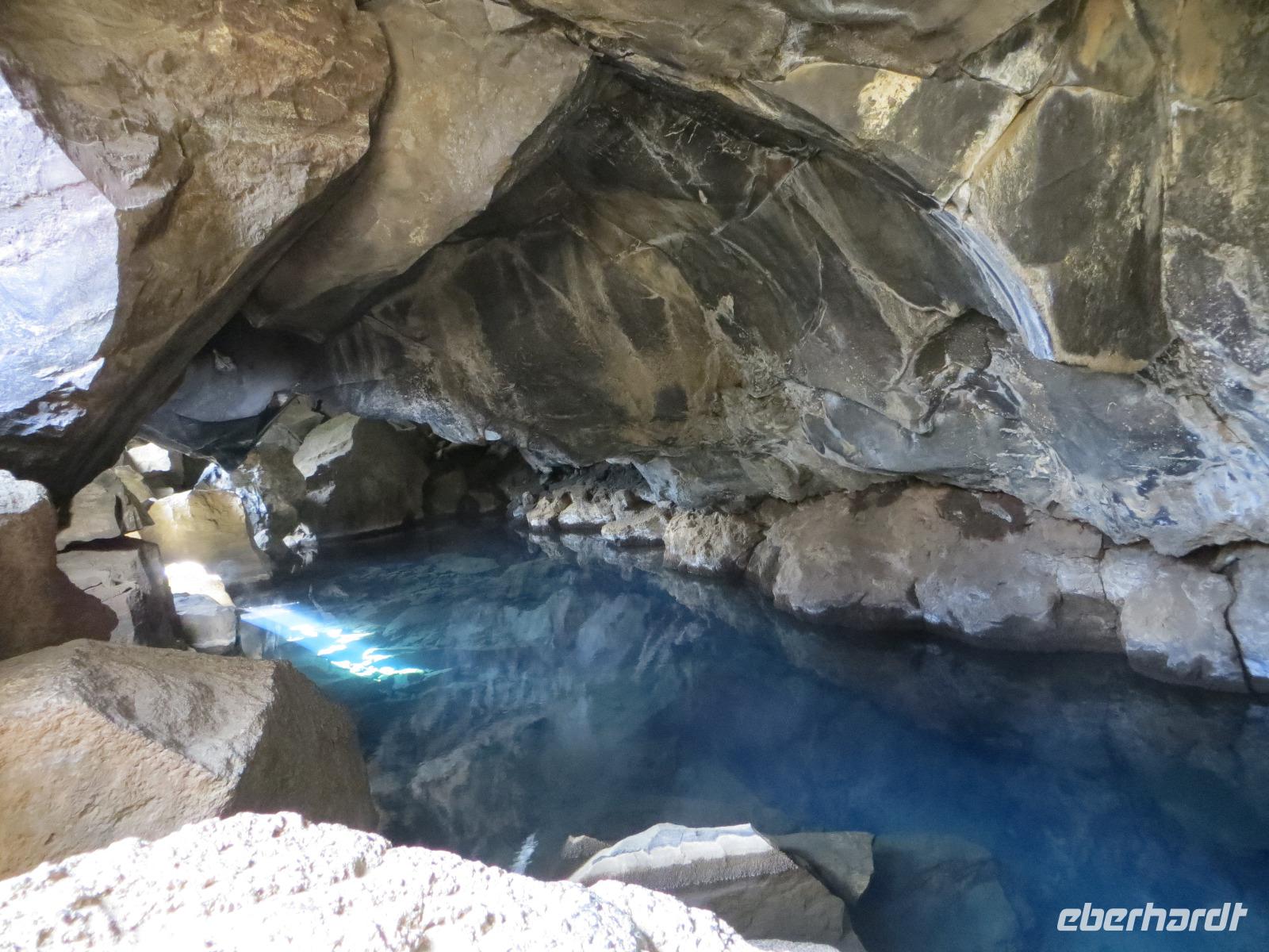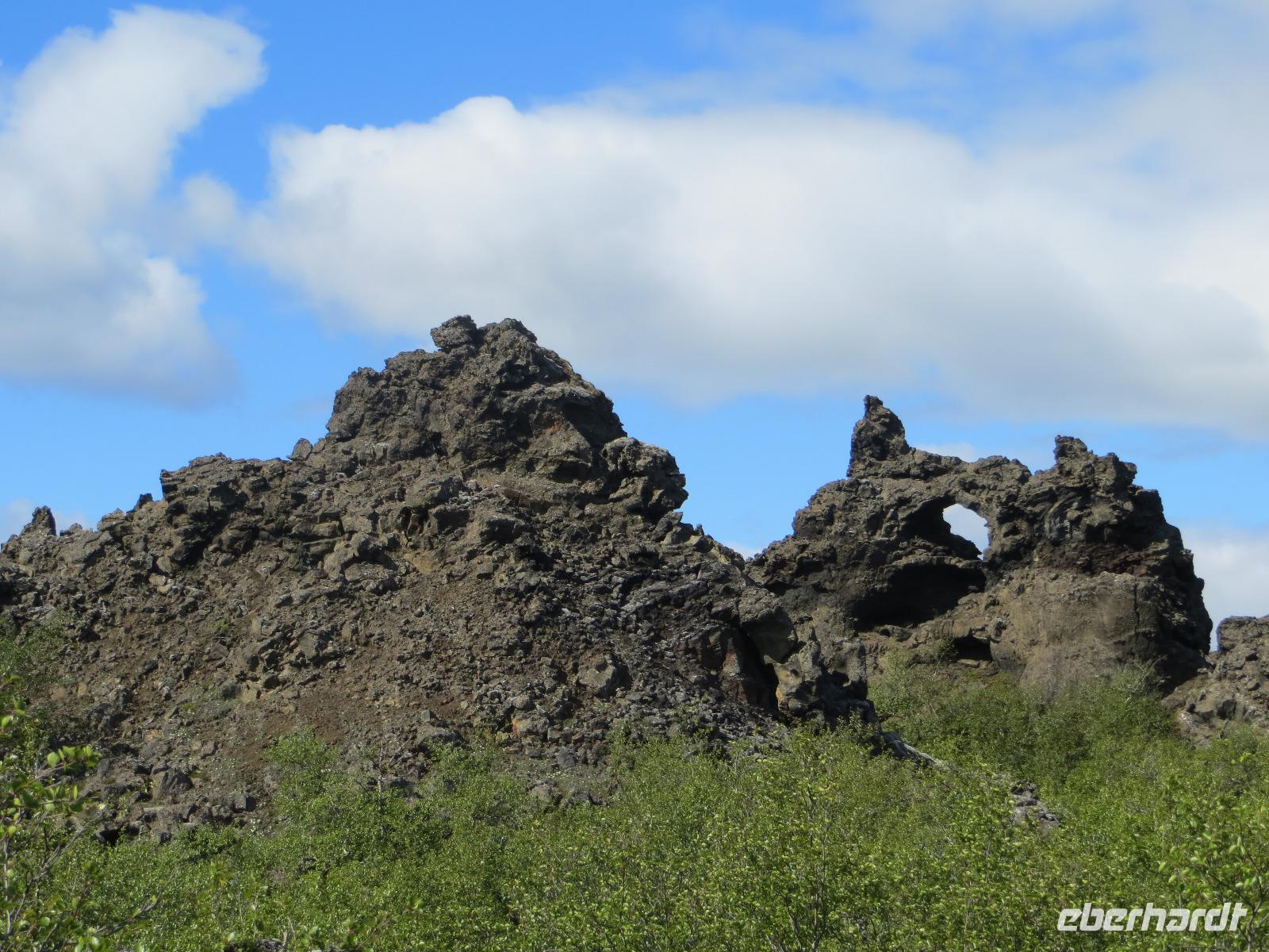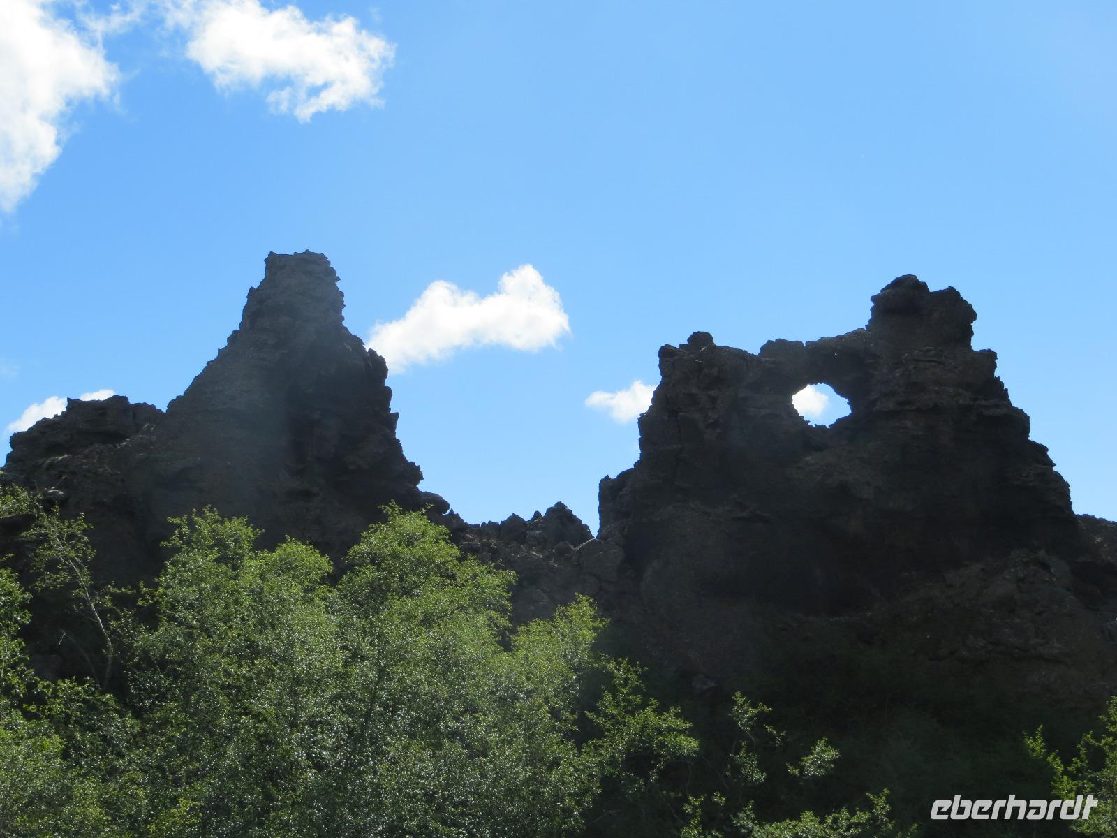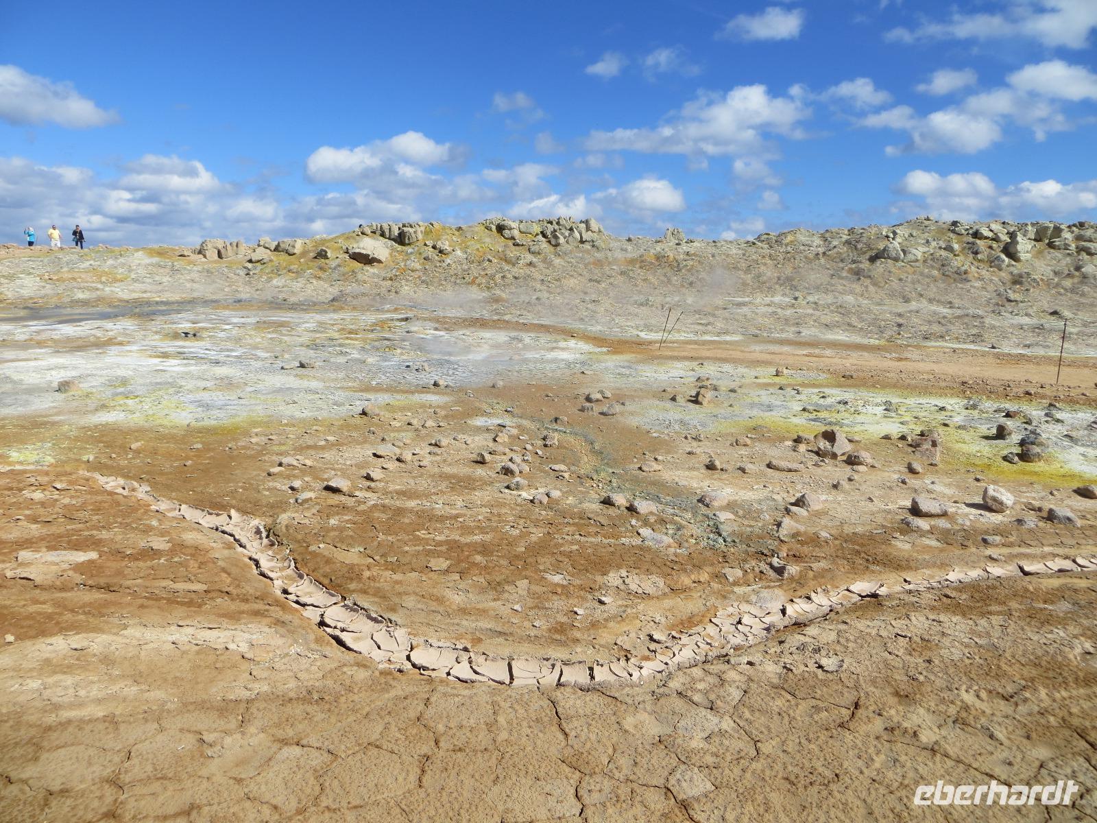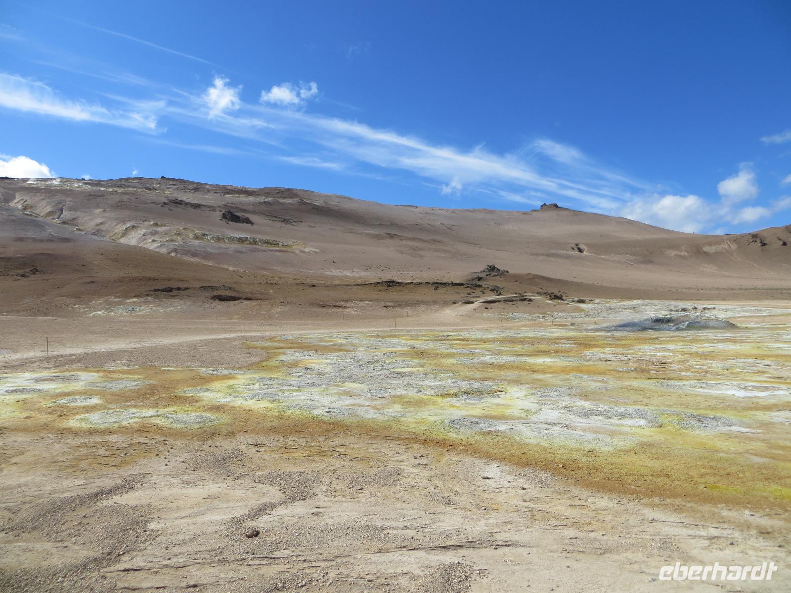 Heute verlassen wir bereits 08:00 Uhr unser Hotel, denn inzwischen hat ein AIDA-Kreuzfahrschiff angelegt und wir möchten die heutigen Programmpunkte ohne die vielen Kreuzfahrtbusse erleben. Wir blicken von der anderen Fjordseite noch einmal auf Akureyri zurück und fahren immer bergauf durch eine Postkartenidylle mit Gletschern, Wasserfällen, Flüssen und strahlend blauen Himmel. Wir haben bisher riesiges Glück mit dem Wetter, nur Sonnenschein. Unser erstes Ziel für heute ist der Godafoss, dem Götterwasserfall. Hier kommen wir wieder mit der endlosen Sagenwelt der Isländer hautnah in Berührung, denn einst sollen hier, als man das Christentums als Staatsreligion übernommen hatte, die letzten heidnischen Götterbilder hinabgestürzt worden sein. So entstand der Name für den imposanten Wasserfall. Unser nächster Stopp ist die Heimat der 13 isländischen Weihnachtsmänner - Dimmuborgir. Wir spazieren auf gut ausgebauten Wegen durch die skurille Felslandschaft. Die Weihnachtsmänner treffen wir leider nicht, amüsieren uns aber sehr über Haralds Geschichten zu Löffellecker, Türentreter und Fensterglotzer. Dann fahren wir zur Grjotagja-Spalte, einer kleinen Höhle mit See, die einst zum Baden genutzt wurde, bis das Wasser zu heiß wurde. Bekannt ist sie Liebhabern von der zur Zeit populären Serie „Game of Thrones", da diese (wie auch viele andere Orte Islands) als Drehort diente. Nachdem wir nacheinander die kleine Höhle besichtigt haben, geht es weiter zu einem ganz besonderen Erlebnis: in der Badelandschaft Jardbödin entspannen wir in den heißen Quellen bei 12°C Außentemperatur und schneebedeckten Gipfeln im Hintergrund. Wir genießen es sehr! So entspannt fahren wir zum Dettifoss, dem energiereichsten Wasserfall Europas. Nach einem kurzen Spaziergang erreichen wir diesen und lassen uns den Sprühregen nicht nur ins Gesicht wehen. Über eine Breite von ca. 100m stürzen die Wassermassen 45 tief herab, ein beeindruckendes Schauspiel. Auf dem Rückweg sehen wir von Weitem den Herdubreid - den Berg namens „Breite Schultern" - wir lieben die Isländer für Ihre Namensgebungen jedes Mal aufs Neue. Dann gelangen wir zum aktiven Solfatarenfeld Hverarönd (oder Namaskard), eine endlose, sich immer verändernde, Weite mit blubbernden Schlammtümpeln und dampfenden Quellen. Schwefelgeruch und tolle Farbspiele erwarten uns hier. Wir übernachten heute am Myvatn, den Mückensee, zum Glück heute ohne eine einzige dieser Tierchen. Am Seeufer entlang spazieren wir zu den Pseudokratern von Skutustadagigar, bevor wir mit einem Abendessen den Tag beenden.